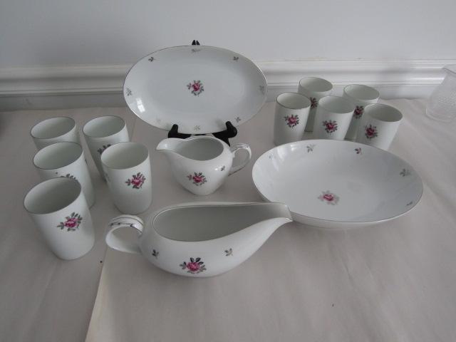 Fukagawa 'Arita' Pattern No. 920 China Assorted Pieces. 10 Cups (3 3/4"), Small Platter (9 3/4"), Oval Veggie Bowl (10 1/4"), Creamer, and Gravy Boat.