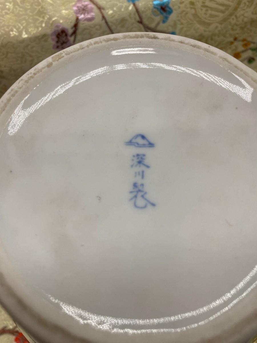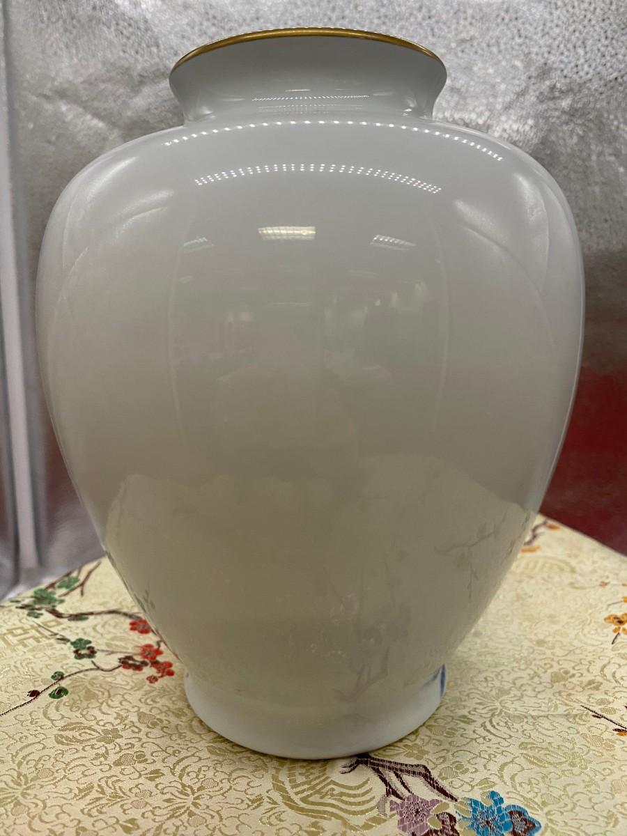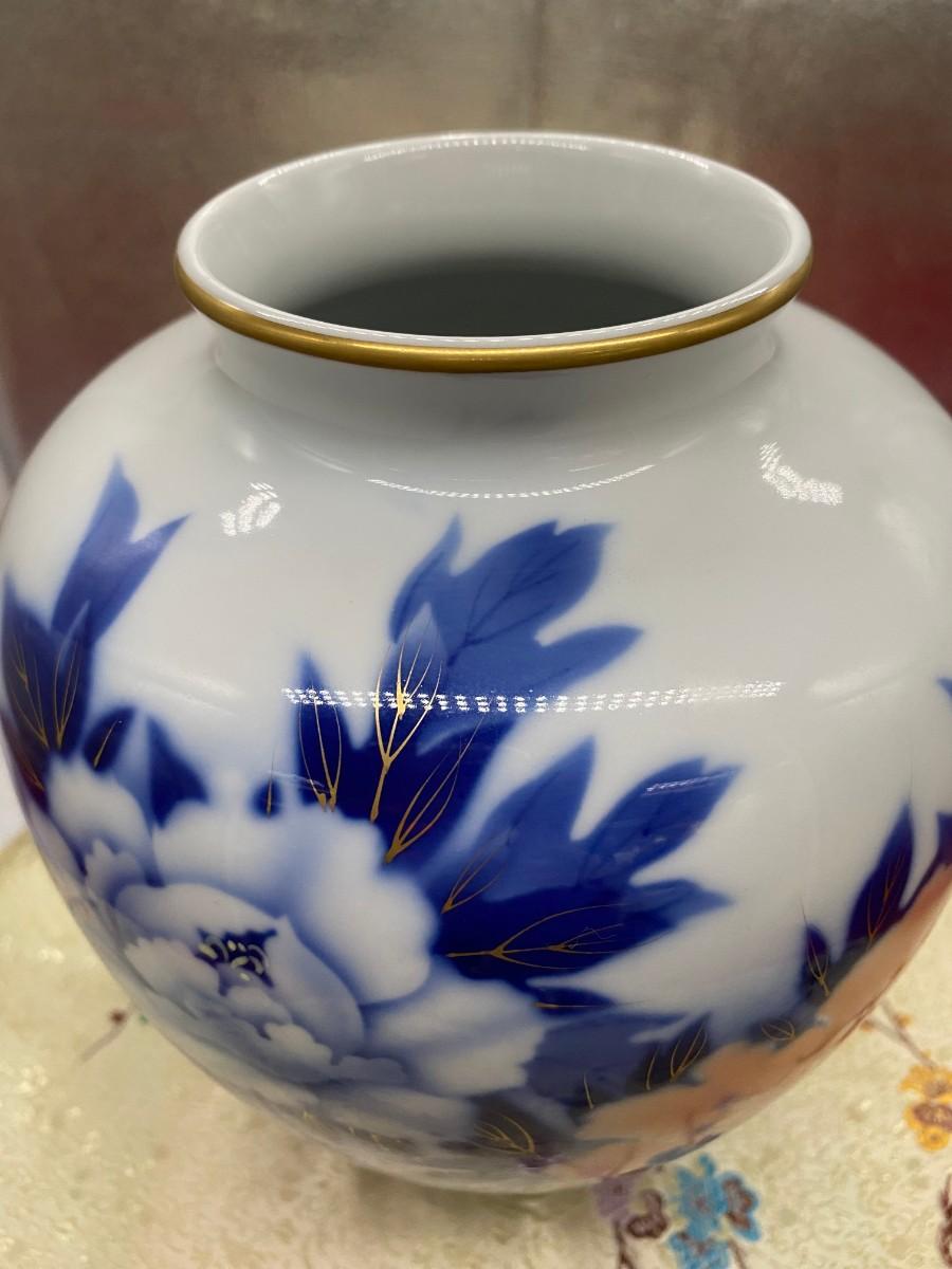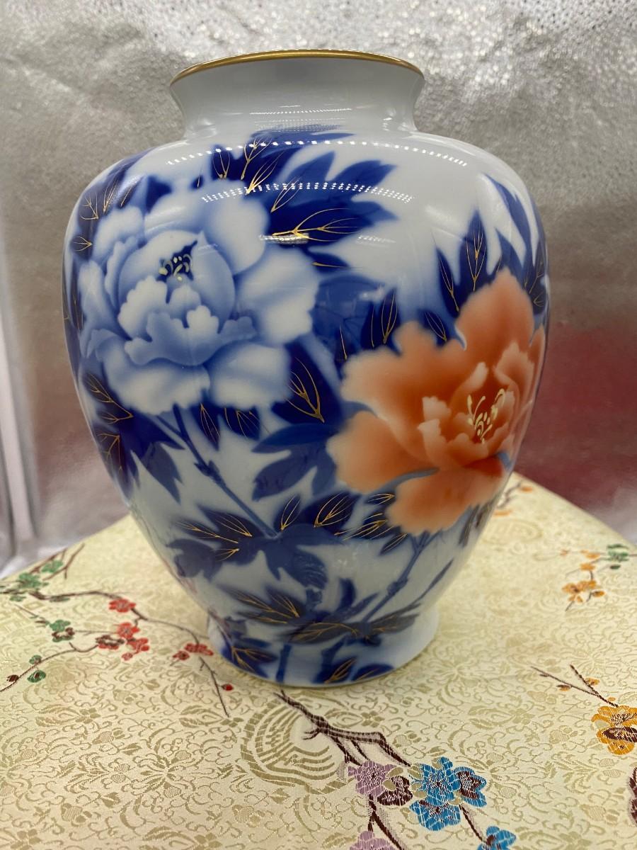 Beautiful Fukugawa vase in indigo, coral and soft white colors with gilding