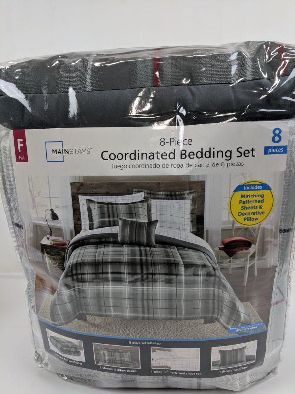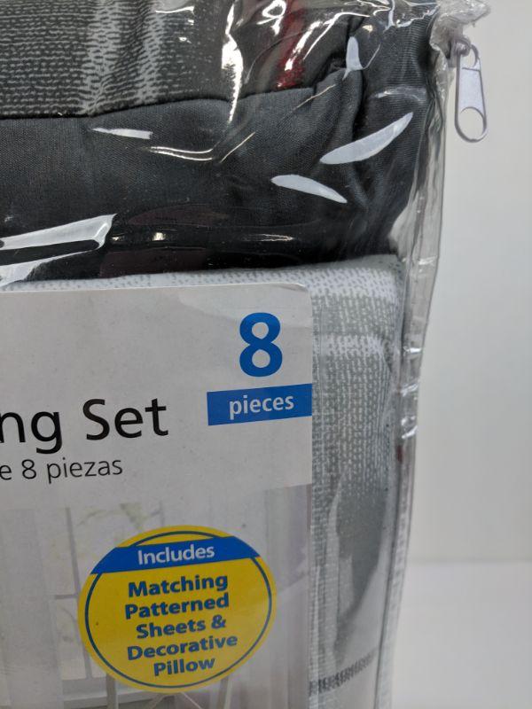 Full 8 PC Coordinating Bedding Set, 1 Comforter/ 2 Pillow Shams/4PC Full Sheet Set/ 1 Decor Pillow - New