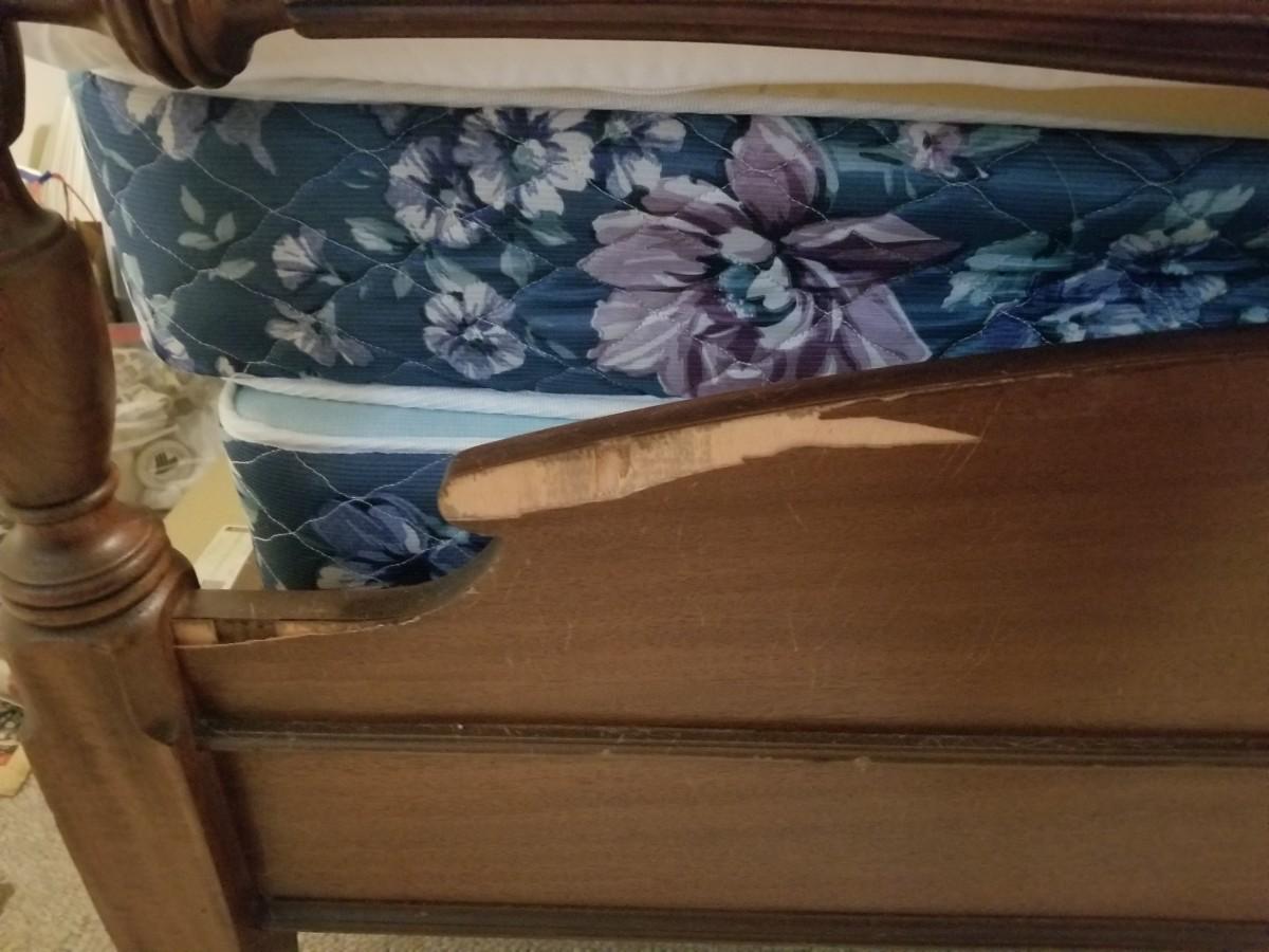 Full size bed frame ** some visible damage on the foot board see photos for details