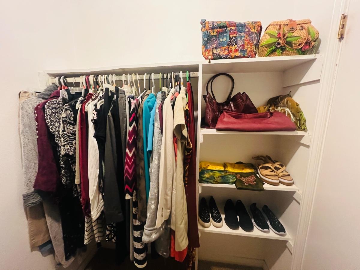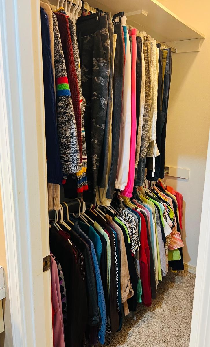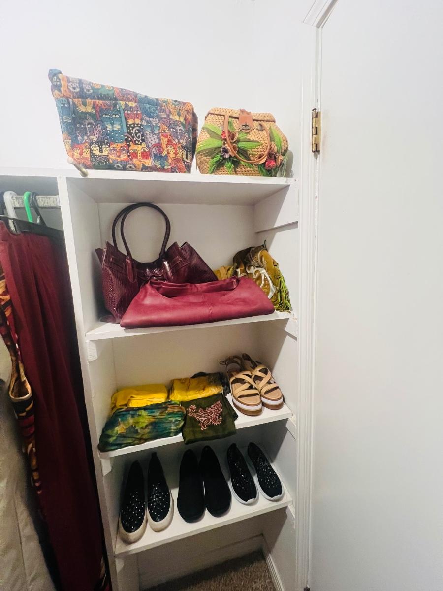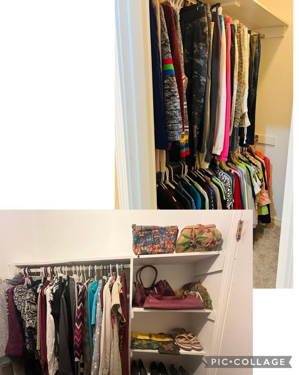 This Closet is full of ladies, tops pants, robes, shoes, and handbags, etc. clothes are mostly size small shoes are size 6 ladies