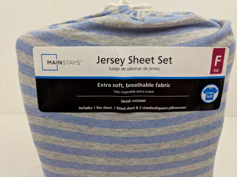 Full Jersey Sheet Set, T-Shirt Soft, 1 Fitted/1 Flat/2 Standard/Queen Pillowcases - New