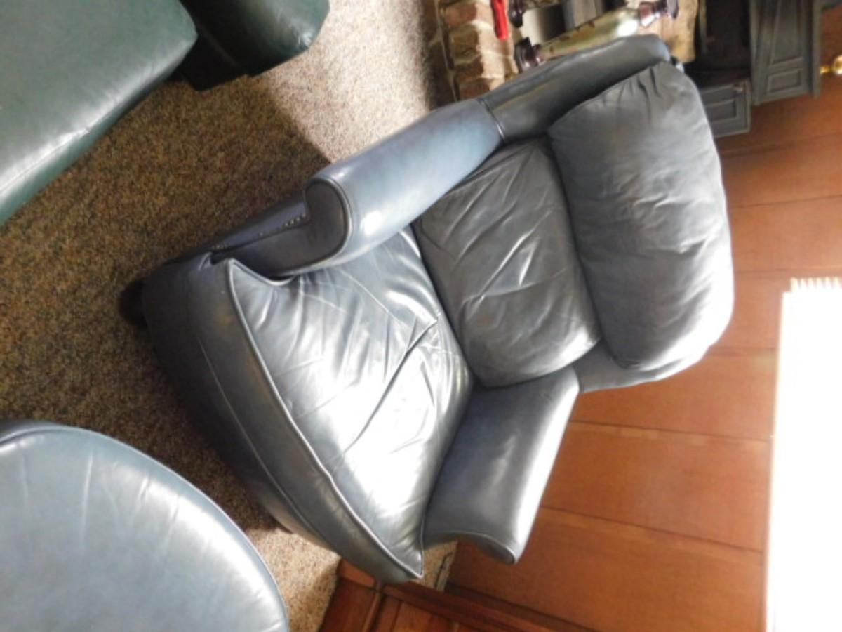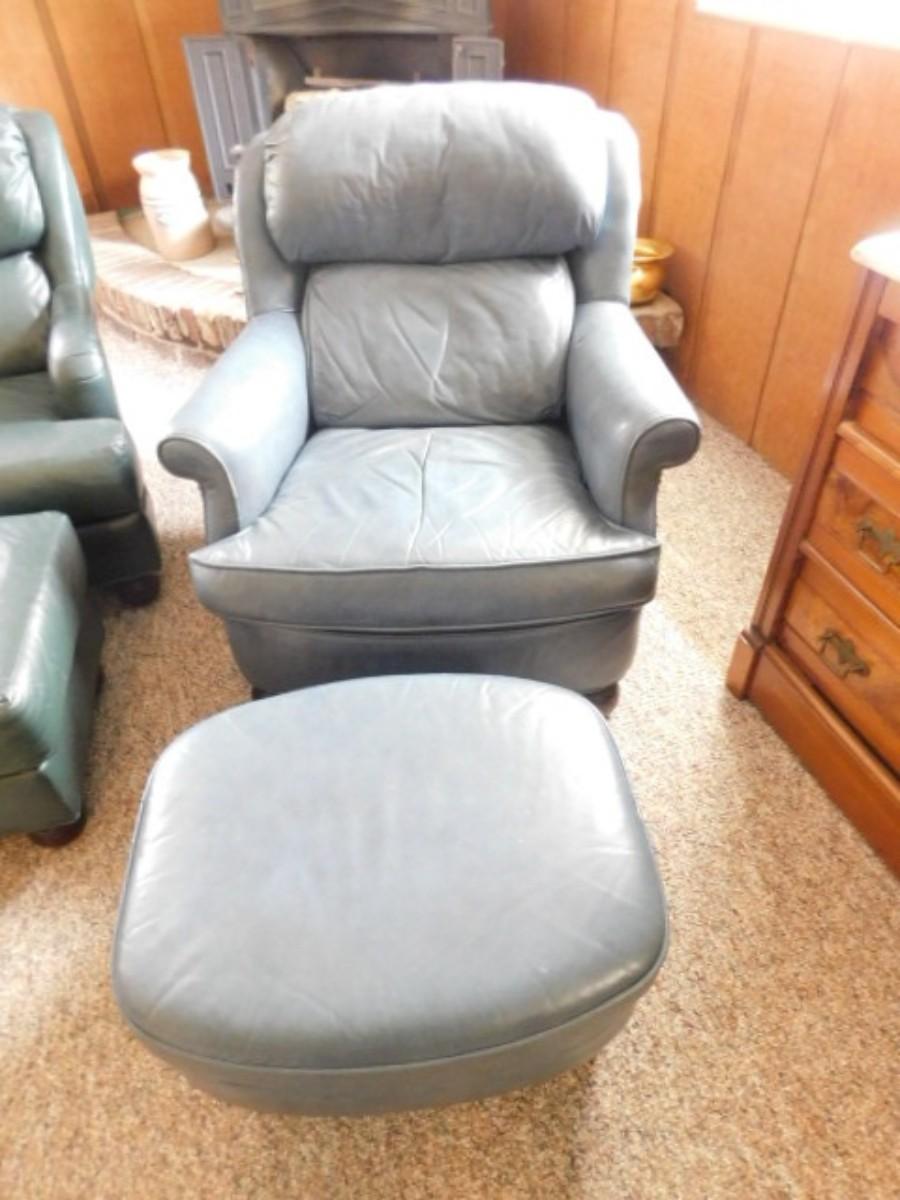 Full Leather Chair with Ottoman by Classic Leather Gray/Blue Tint