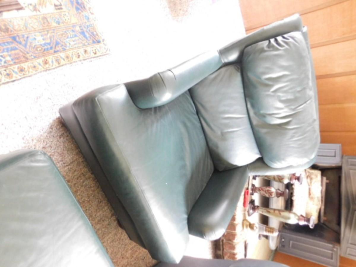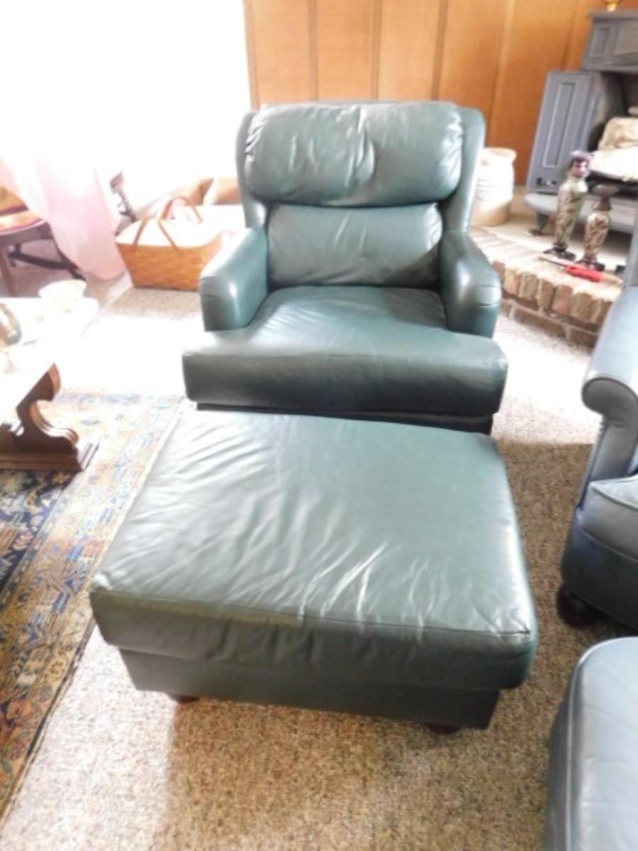 Full Leather Chair with Ottoman by Classic Leather Gray/Green Tint