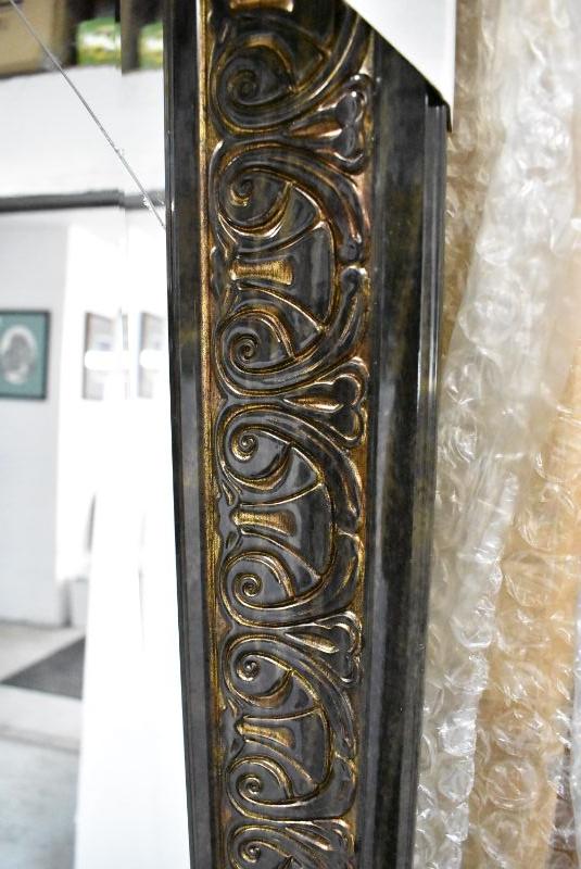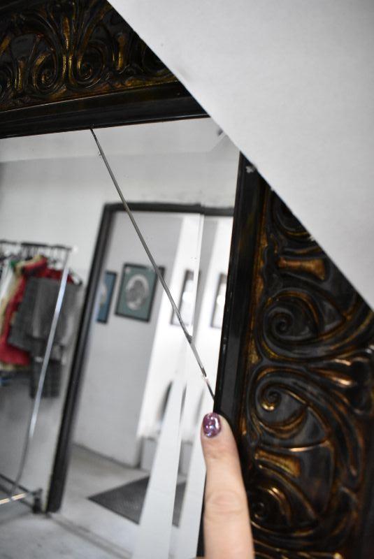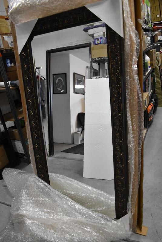 Full Length Leaner Mirror, Cognac Ash Andorra, 66"x32". MIRROR CRACKED IN CORNER