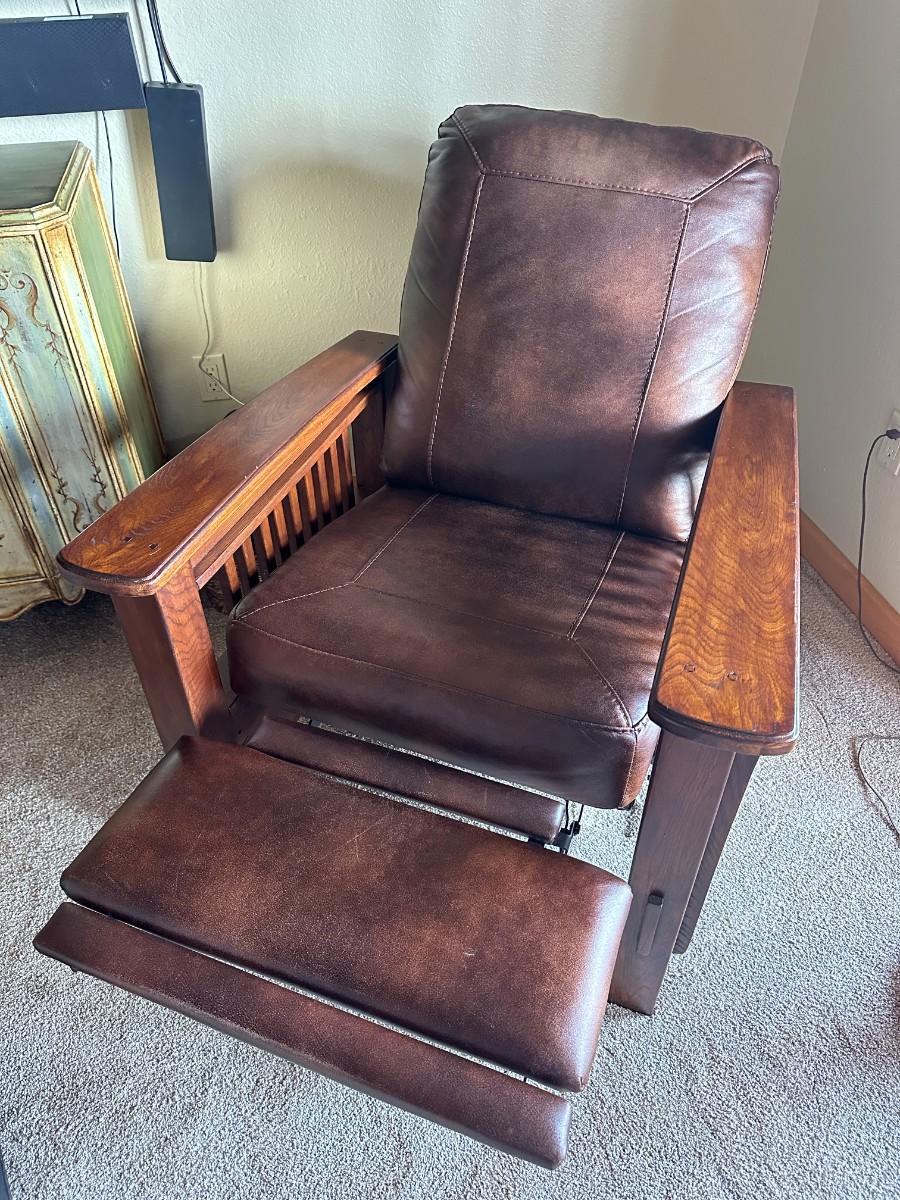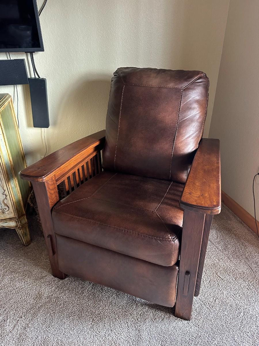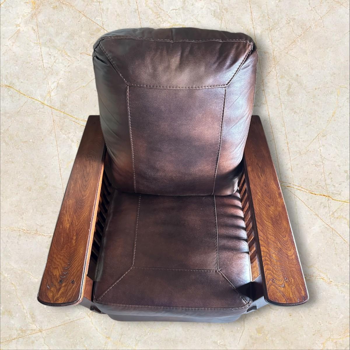 Mission Style Full Reclining Chair with Wood Arms, Mission Style