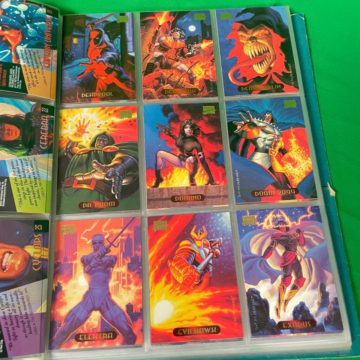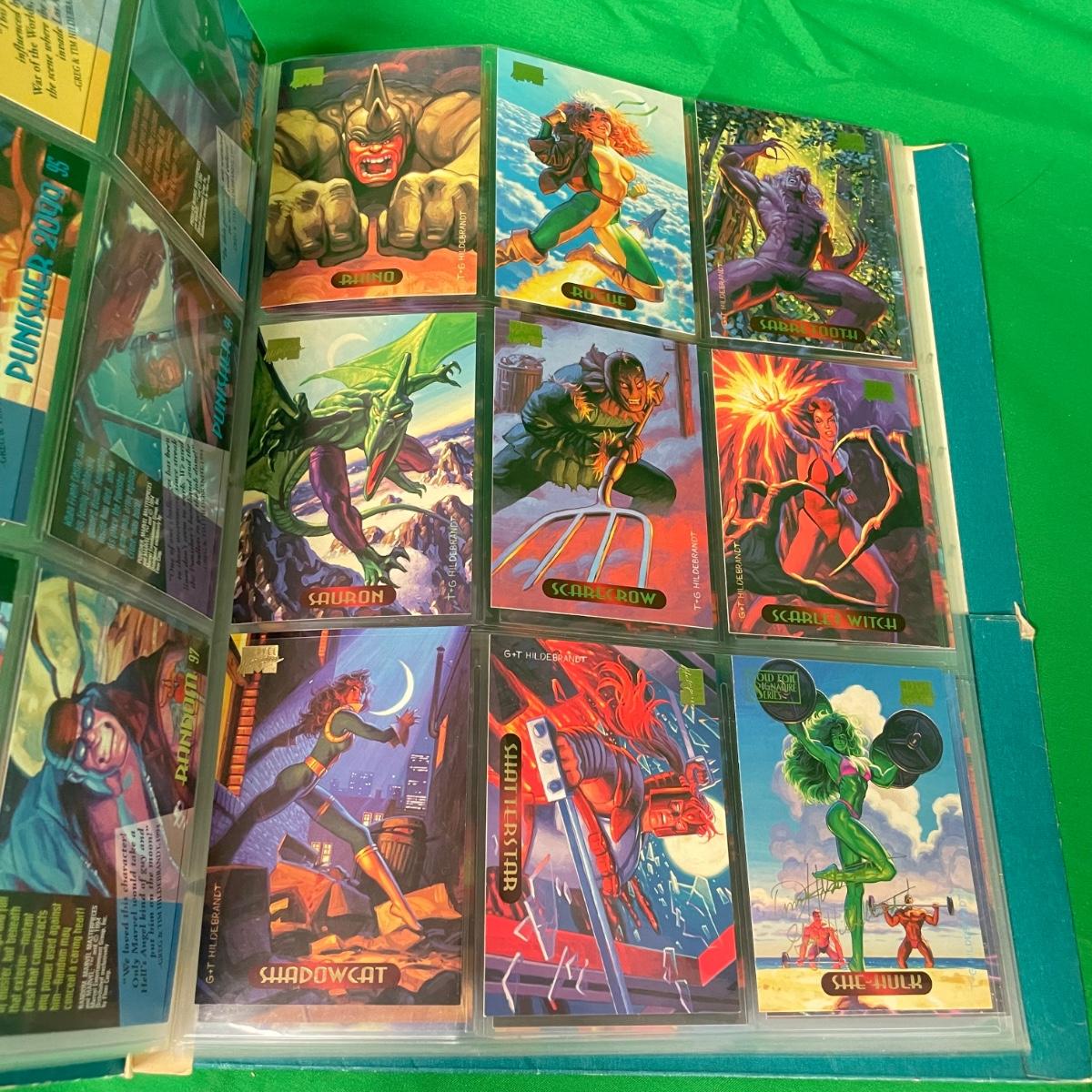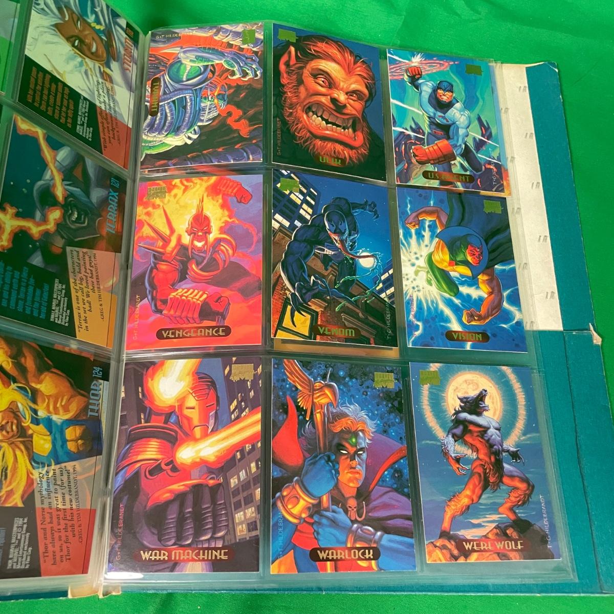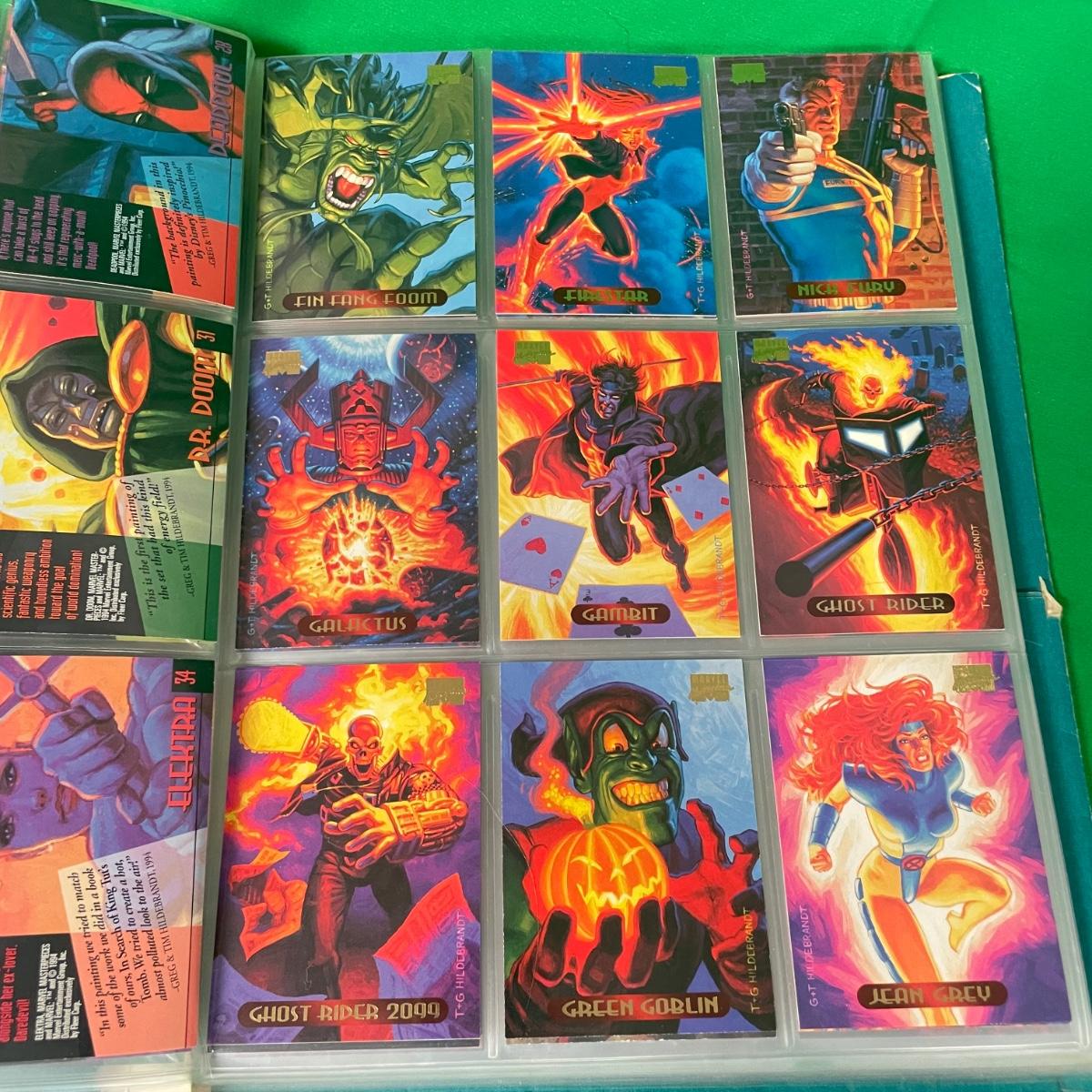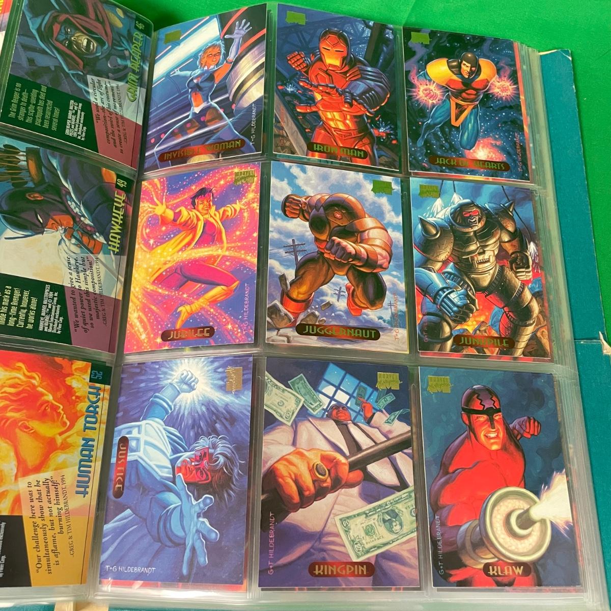 Stored in protective sheets are 140 Marvel Masterpieces trading cards by Fleer. Two cards have two Hildebrandt gold foil signatures (see images). Set appears to be complete- see photos. Items are sold as-is. No returns or refunds. Please bid accordingly.