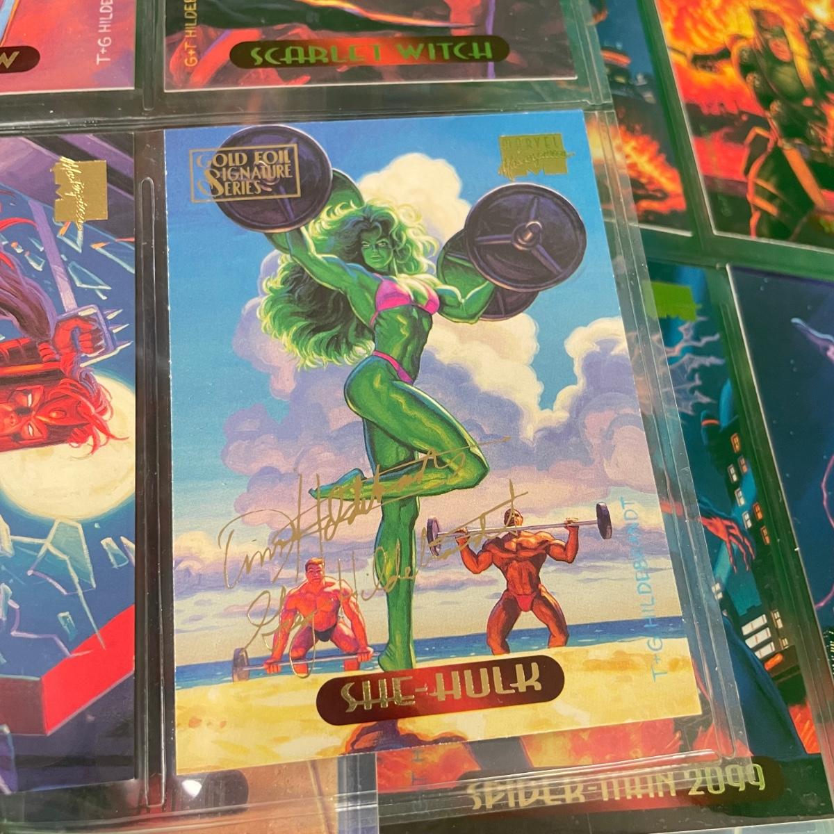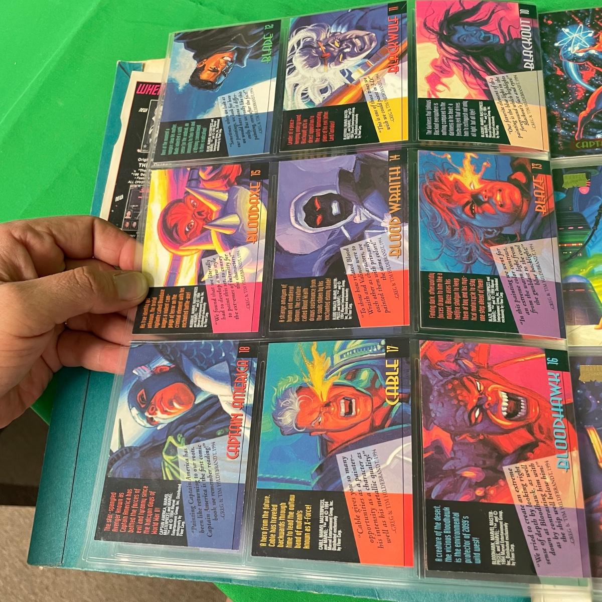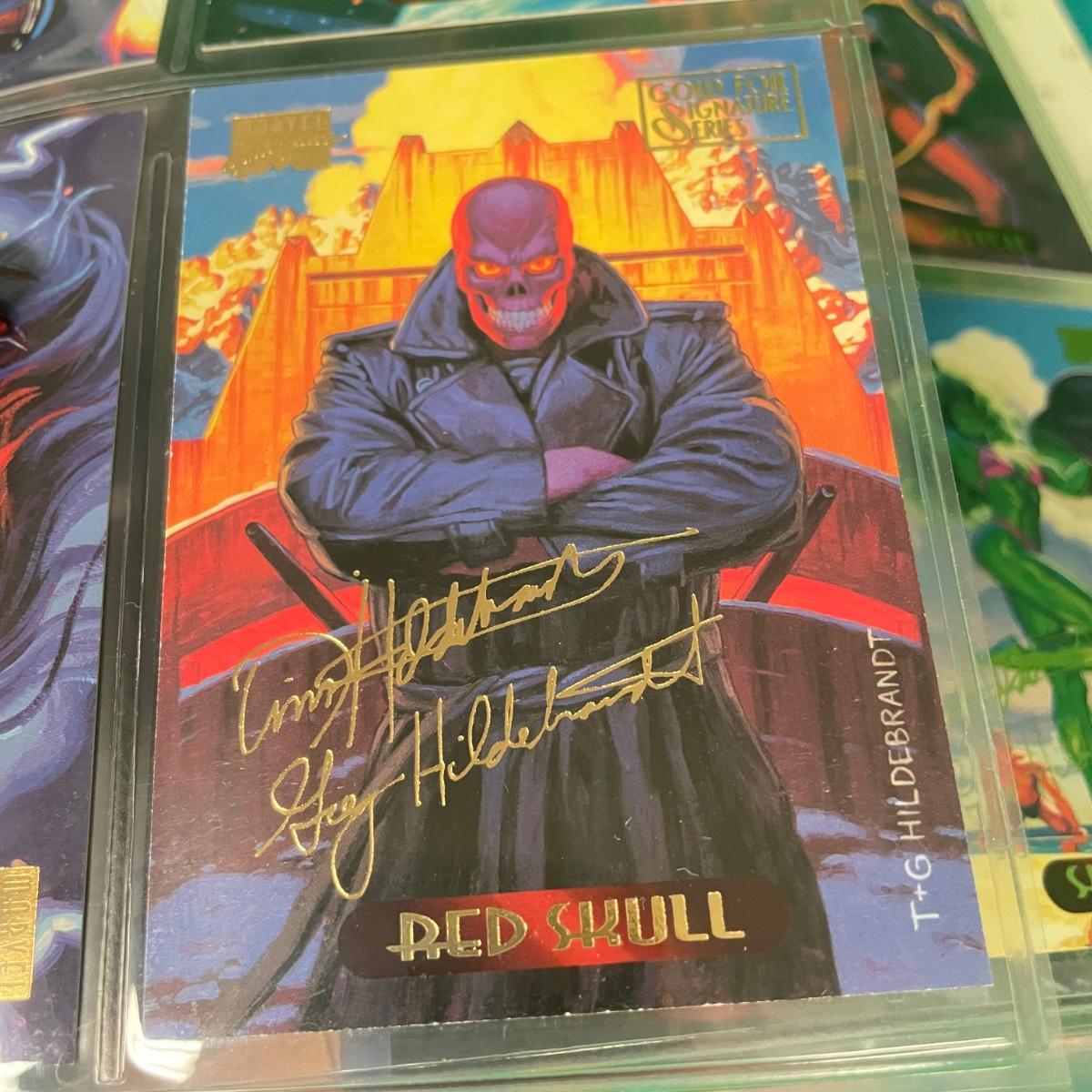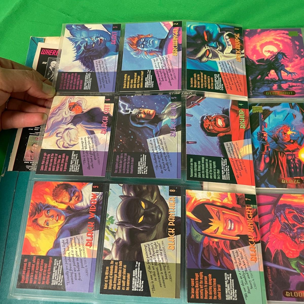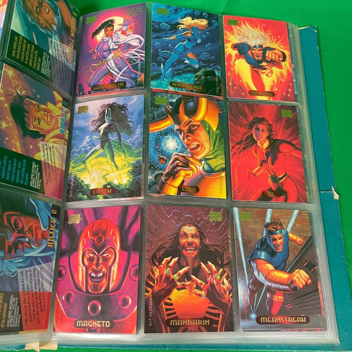 Stored in protective sheets are 140 Marvel Masterpieces trading cards by Fleer. Two cards have two Hildebrandt gold foil signatures (see images). Set appears to be complete- see photos. Items are sold as-is. No returns or refunds. Please bid accordingly.