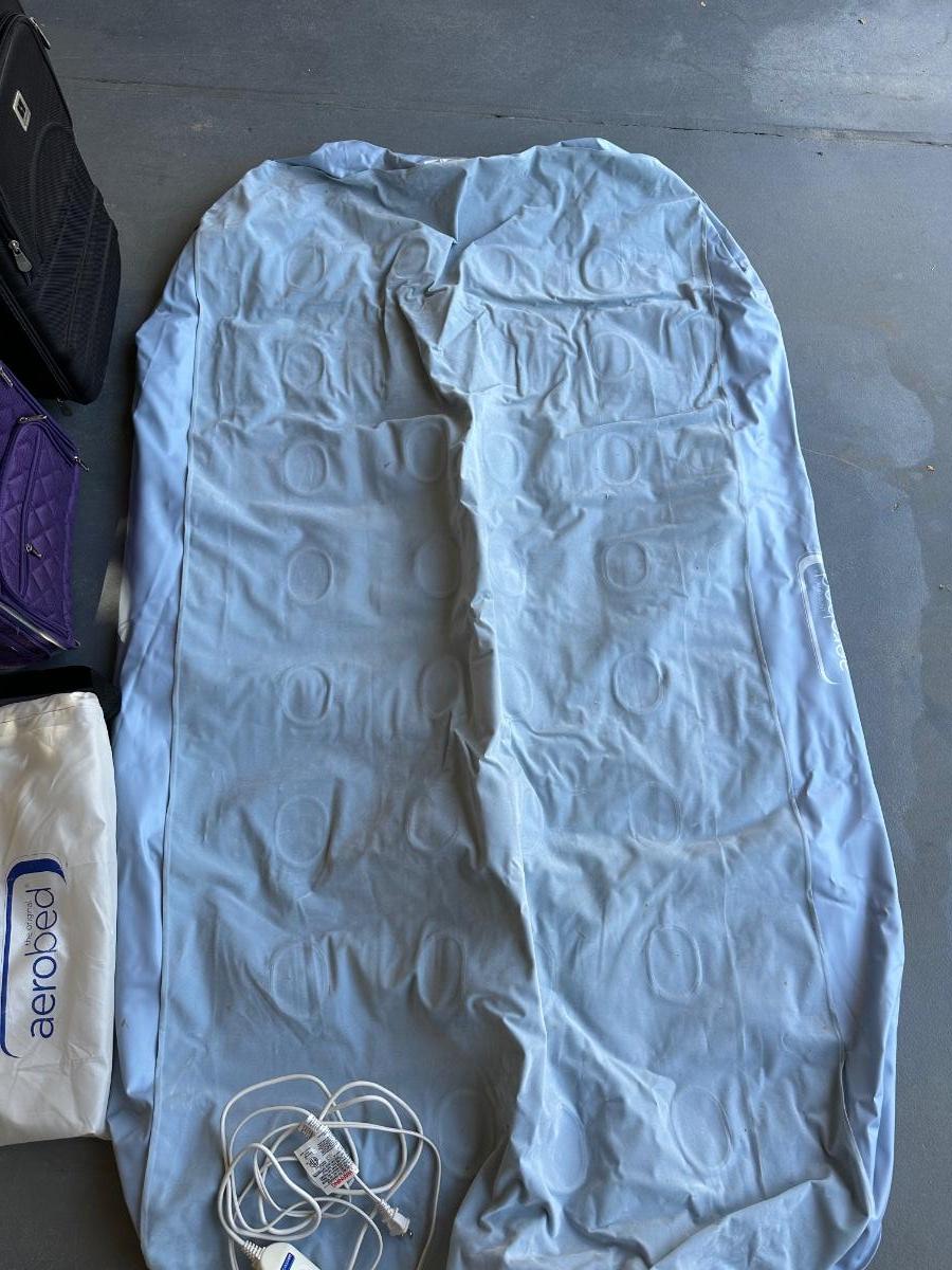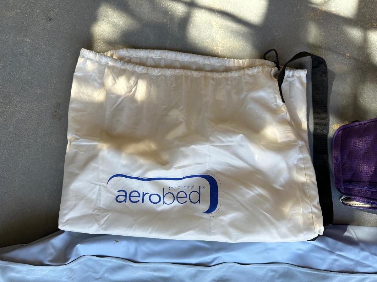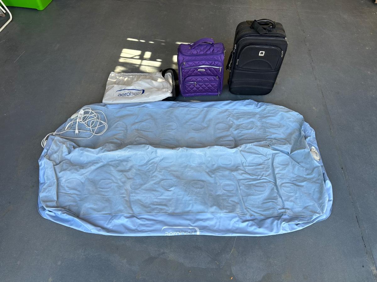 FULL SIZE AEROBED AIR MATTRESS, 2 SUITCASES AND A NECK PILLOW