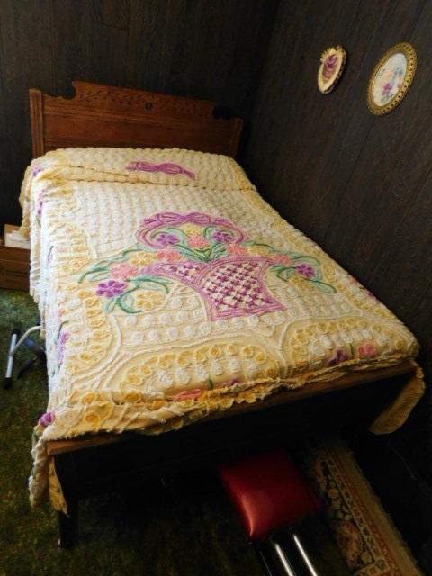 Full Size Antique Oak Eastlake Bed Frame (Mattress Included)