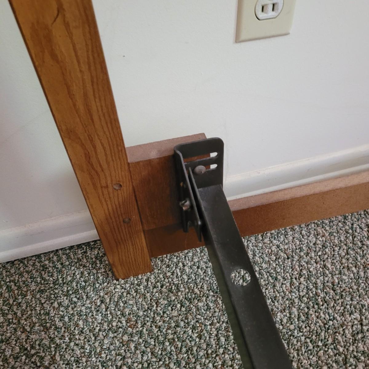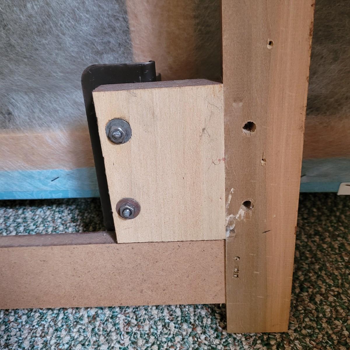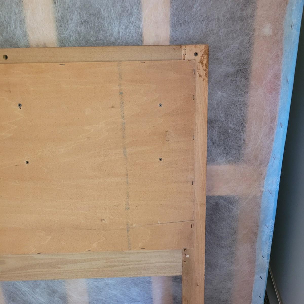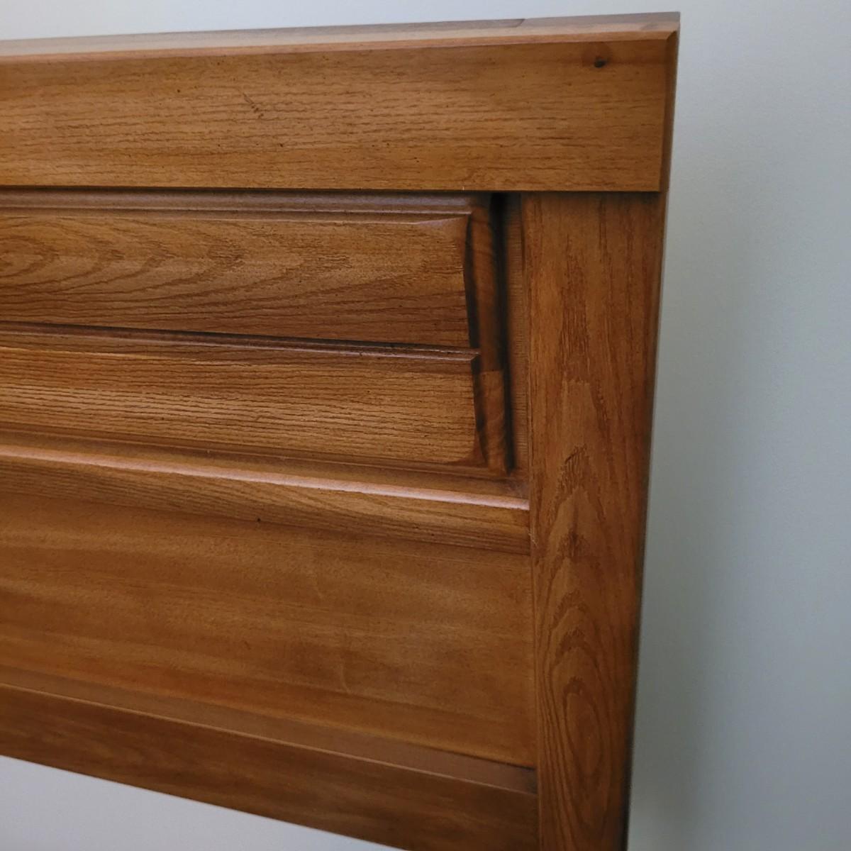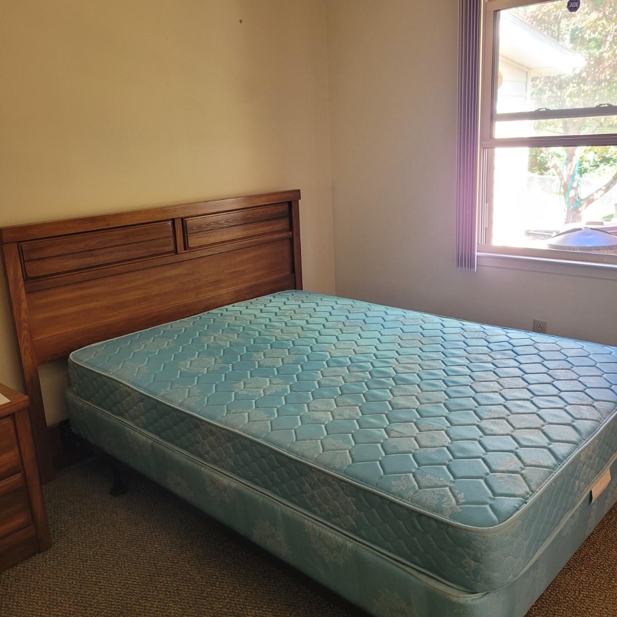 Solid wood headboard on metal frame. Headboard measures approximately 62.5” x 42.” The mattress and box spring are NOT included. Local pickup only. Winning bidder must bring assistance to help move and load this item due to its weight and size.