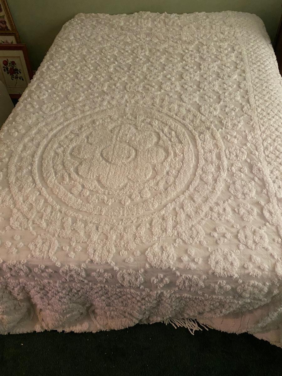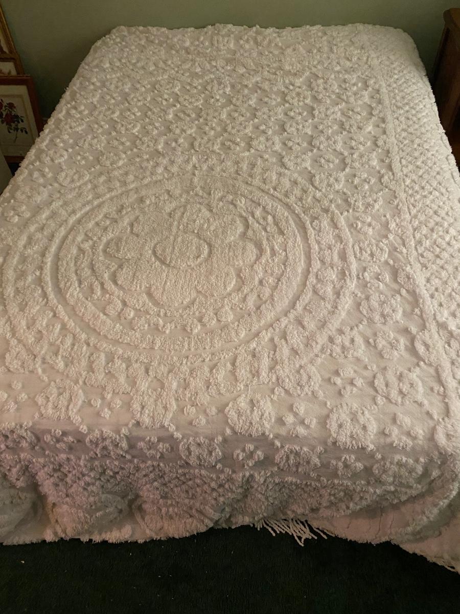 Full Size Bed Frame w/ Vintage Bed Spread