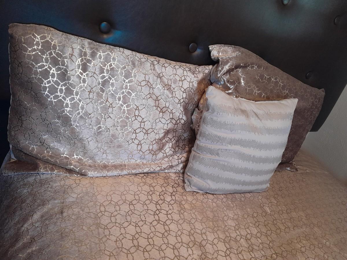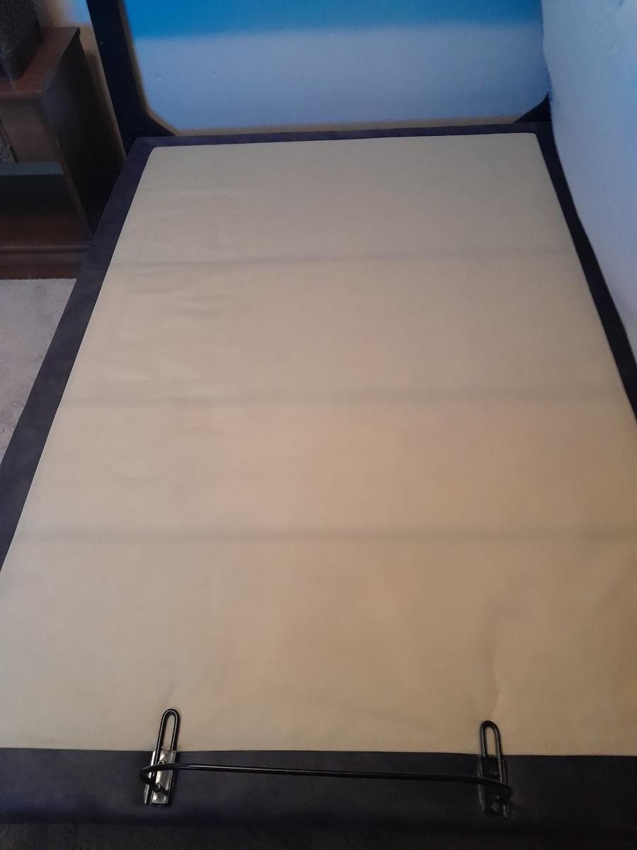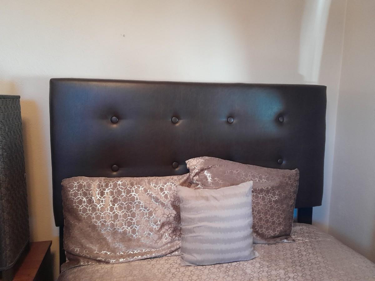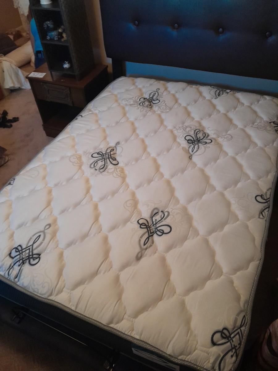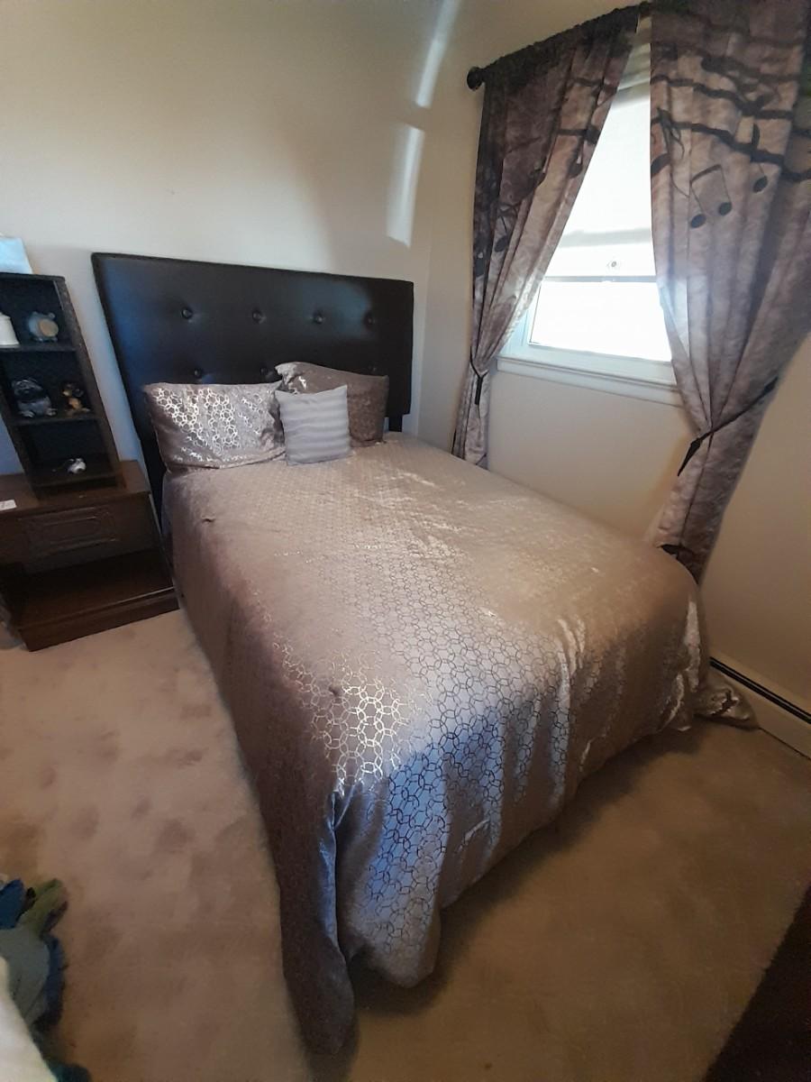 FULL SIZE BED, PLATFORM FRAME, TUFFTED HEADBOARD, NICE DOCTORS CHOICE MATTRESS WITH BEDDING
