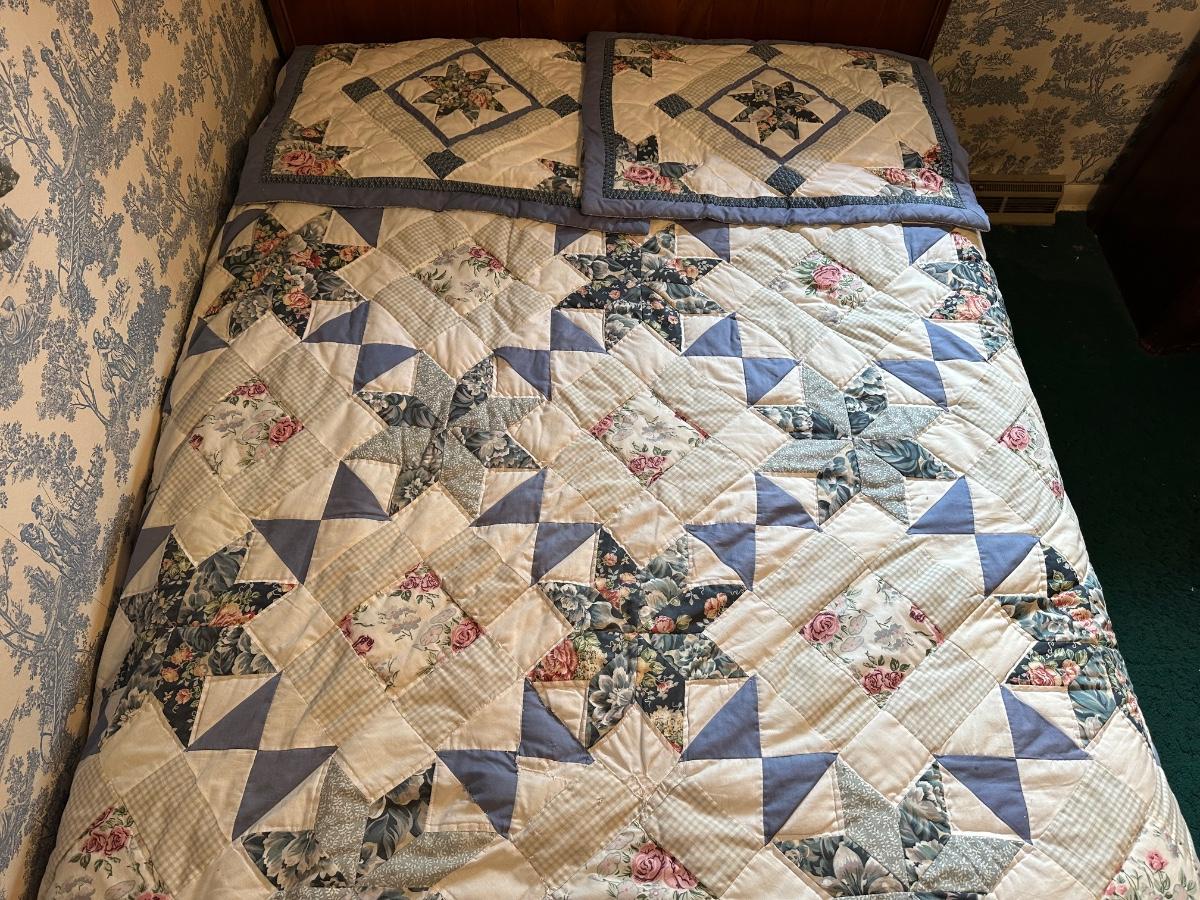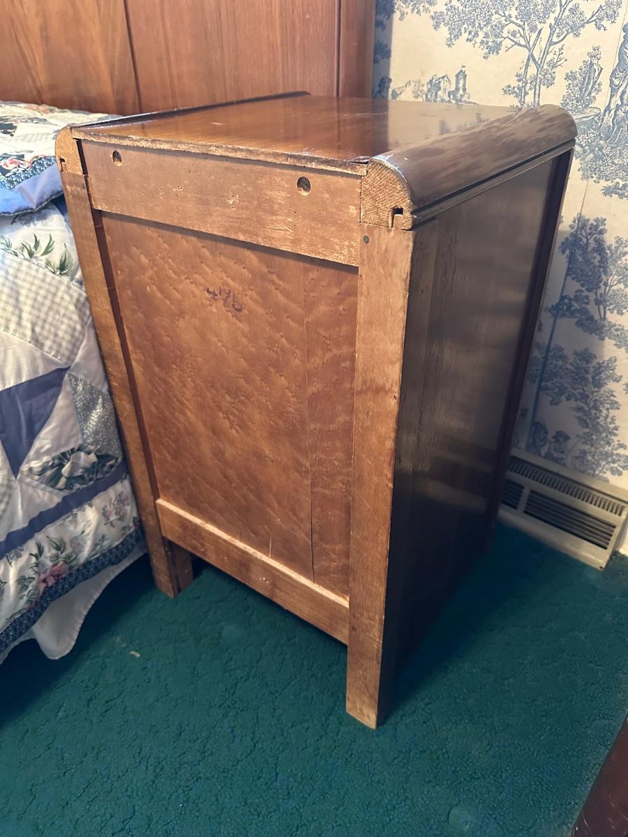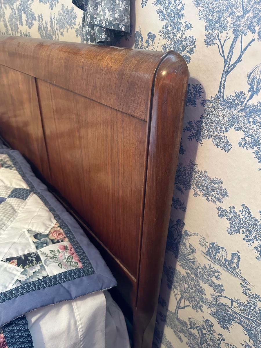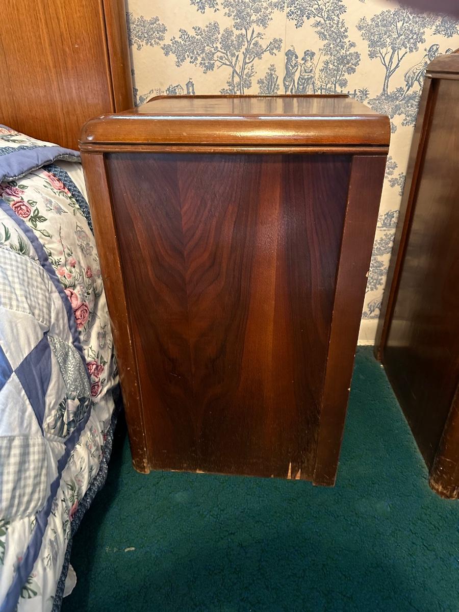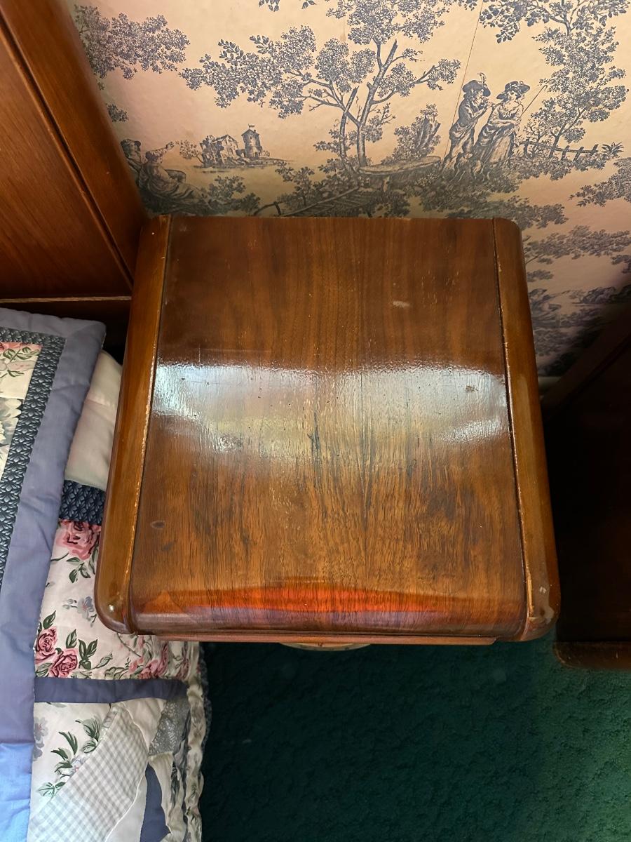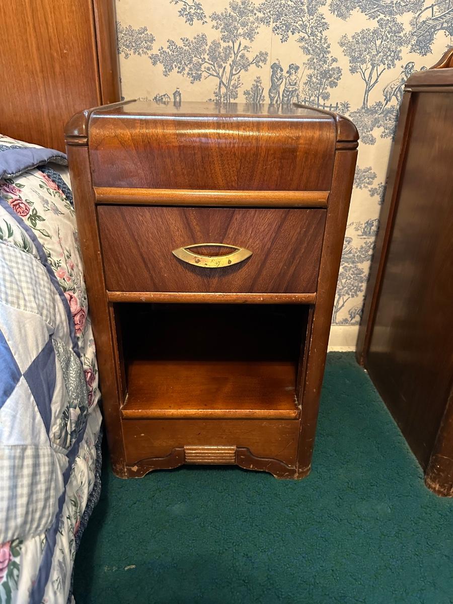 FULL SIZE BED WITH ANTIQUE HEADBOARD & MATCHING NIGHT STAND PLUS BEDSPREAD