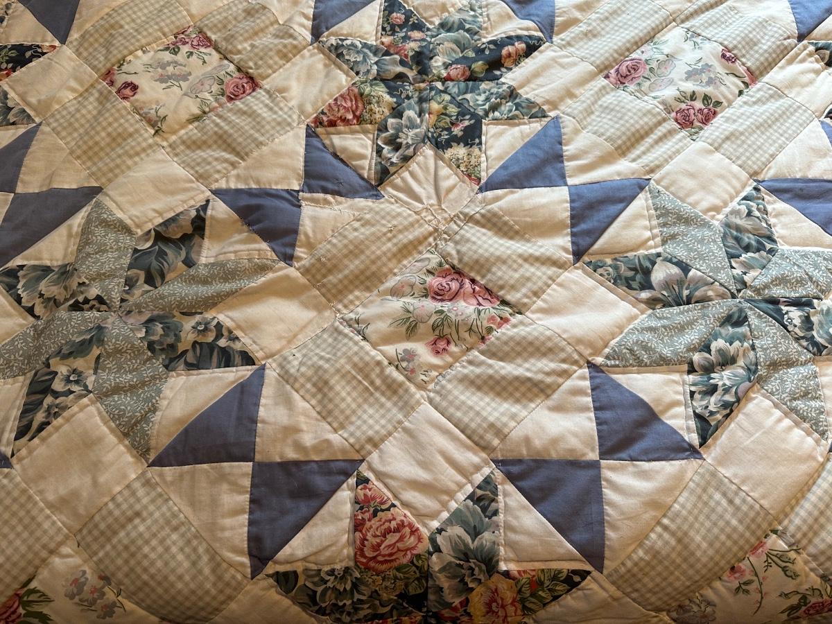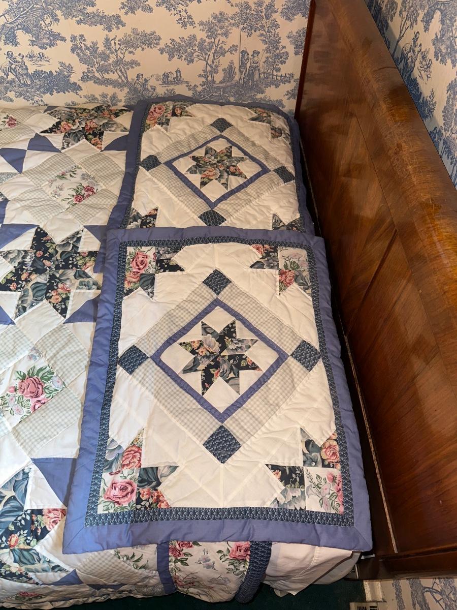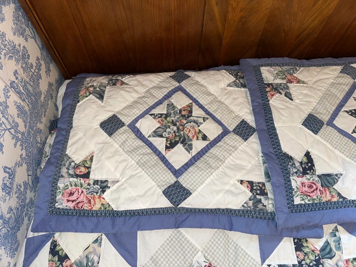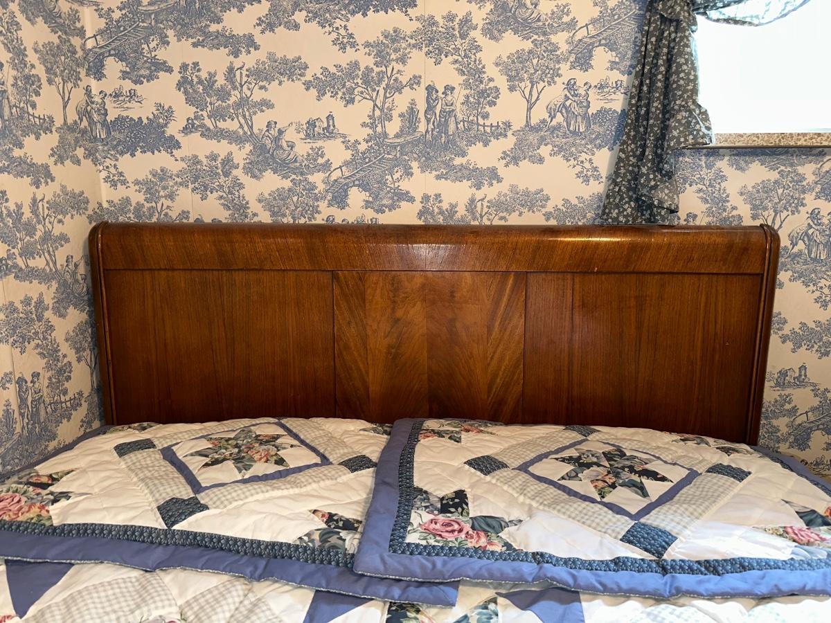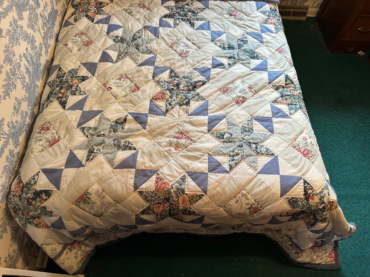FULL SIZE BED WITH ANTIQUE HEADBOARD & MATCHING NIGHT STAND PLUS BEDSPREAD