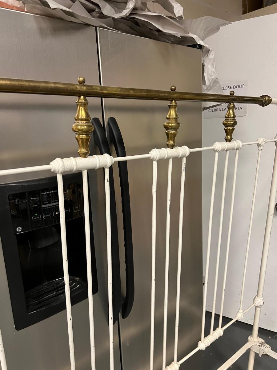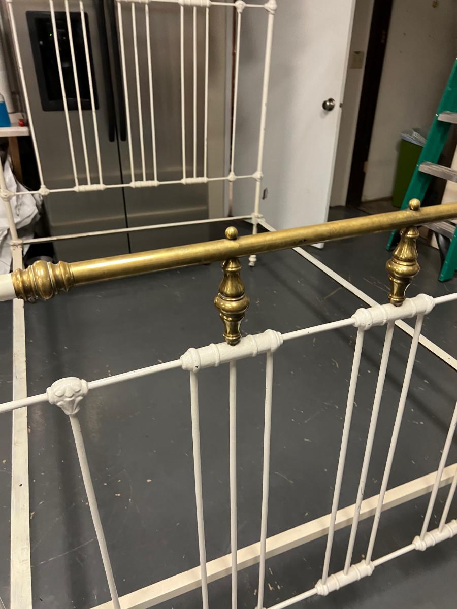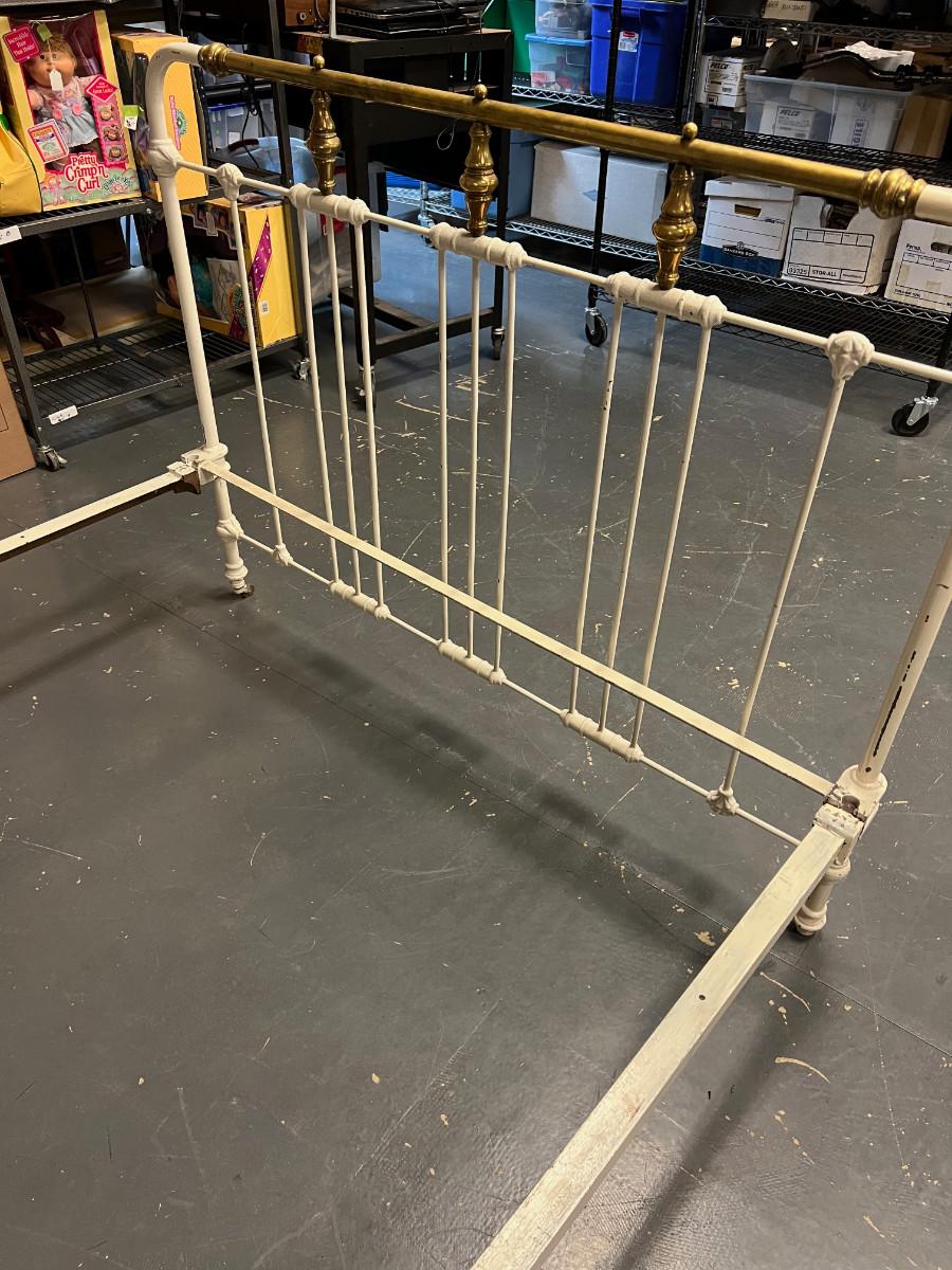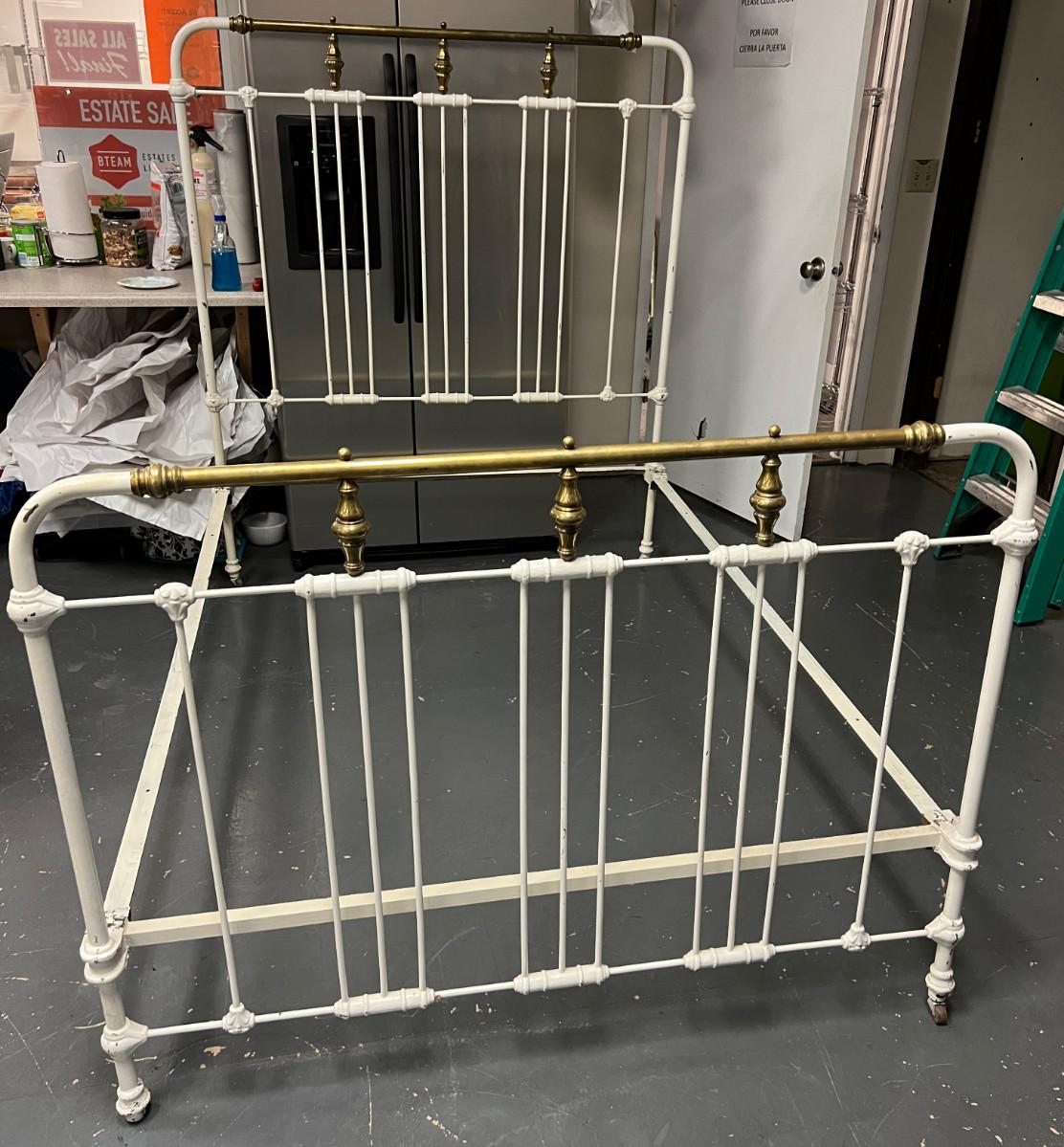 Heavy Authentic Brass Bed! Good Condition. Needs a wheel on one corner of foot board 54" Wide X 76" Long