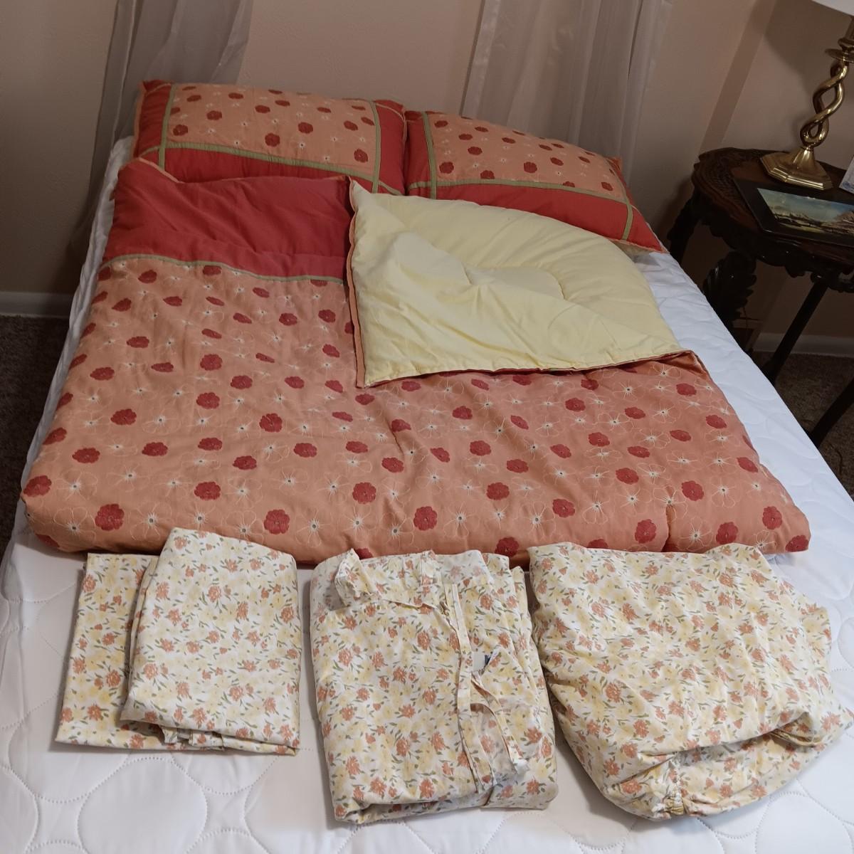 FULL SIZE COMFORTER, SHEET SET, PILLOWS W/SHAMS AND BED SKIRT