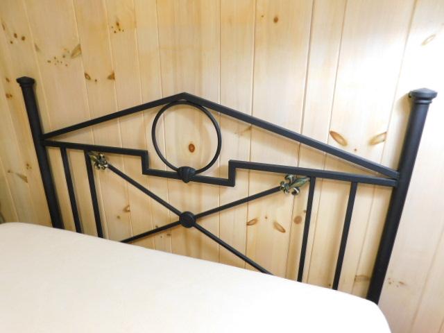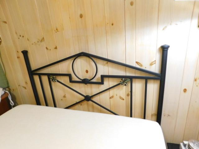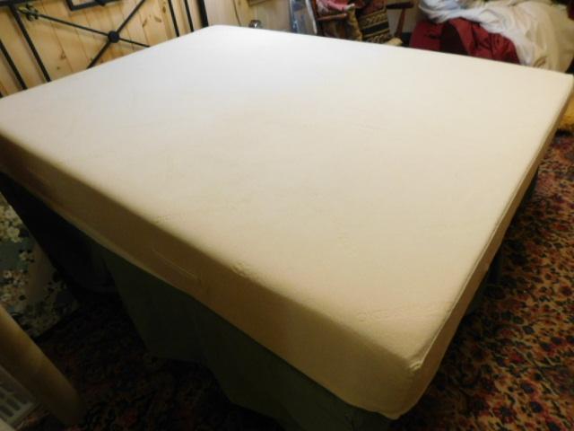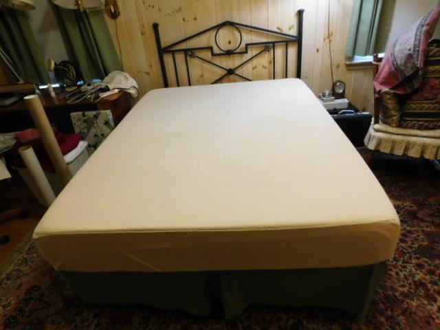 Full Size Decorative Metal Headboard with Queen Size Memory Foam Posterpedic Mattress and Frame there is a small stain on mattress