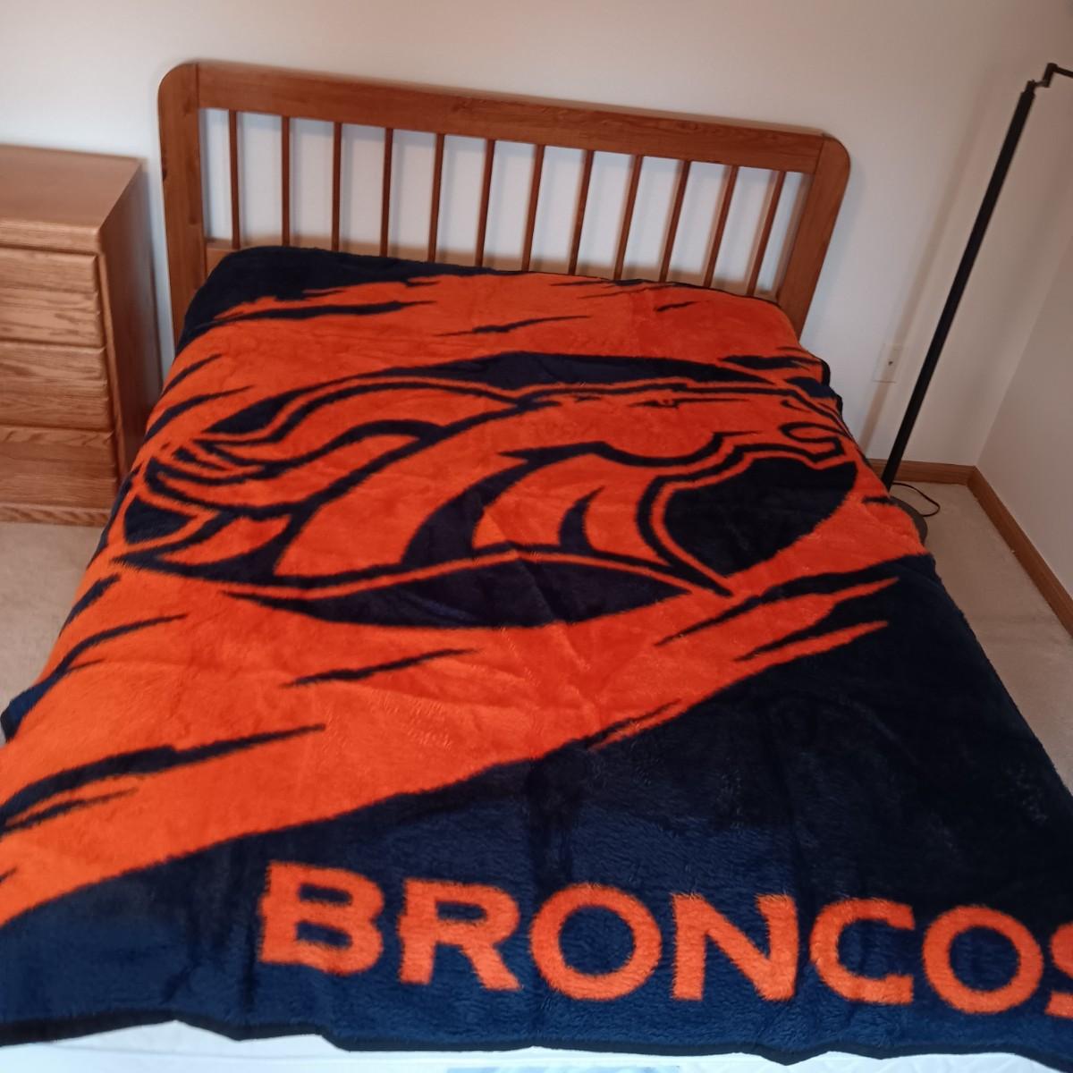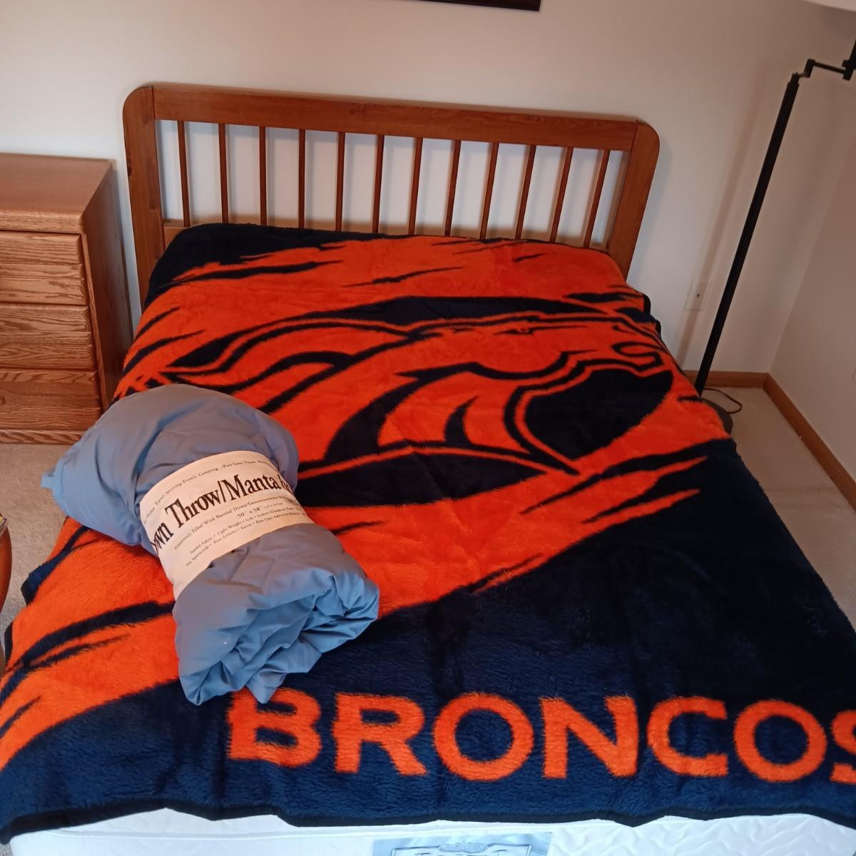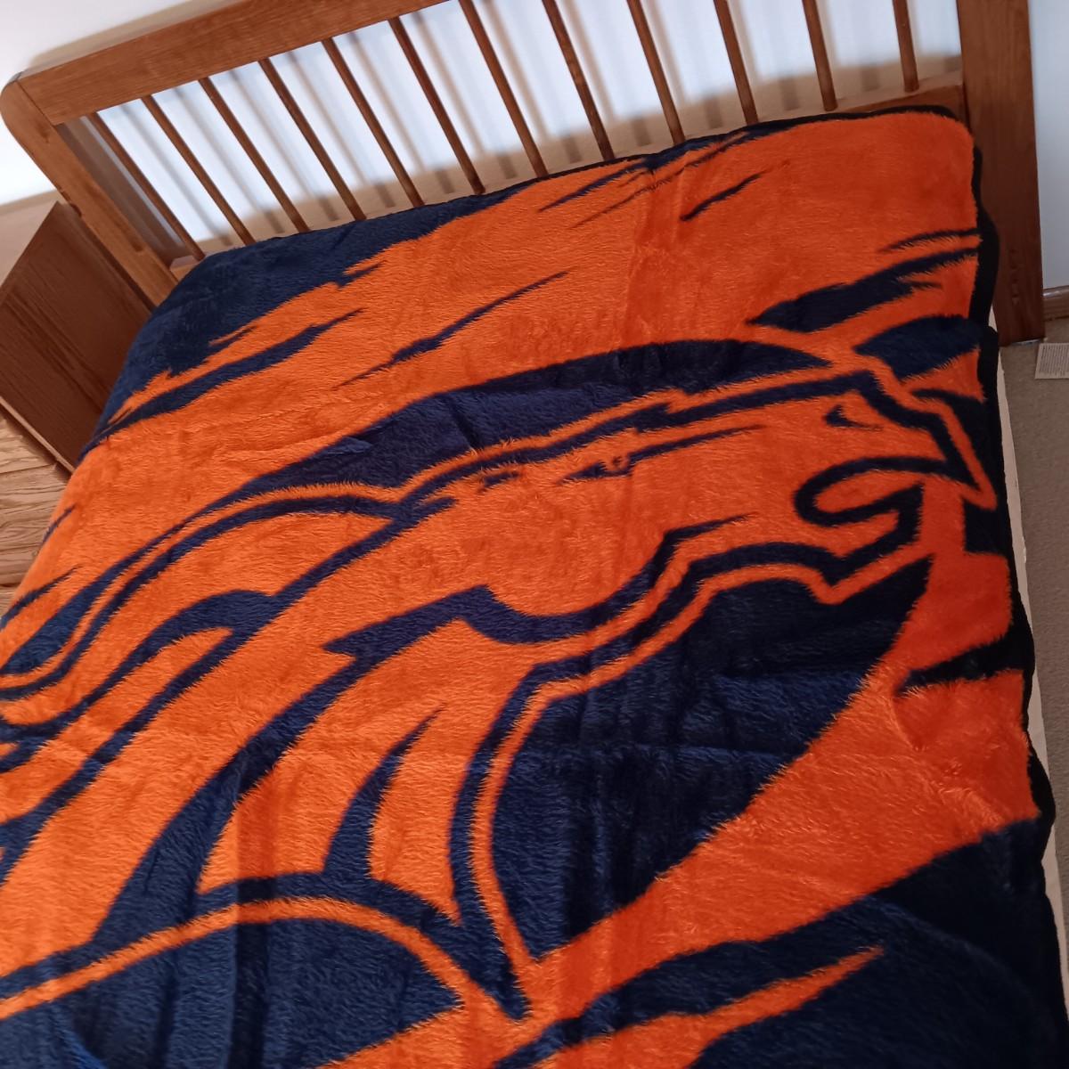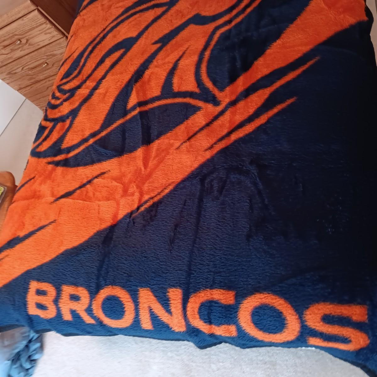 FULL SIZE DENVER BRONCOS BLANKET AND A DOWN FILLED THROW