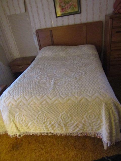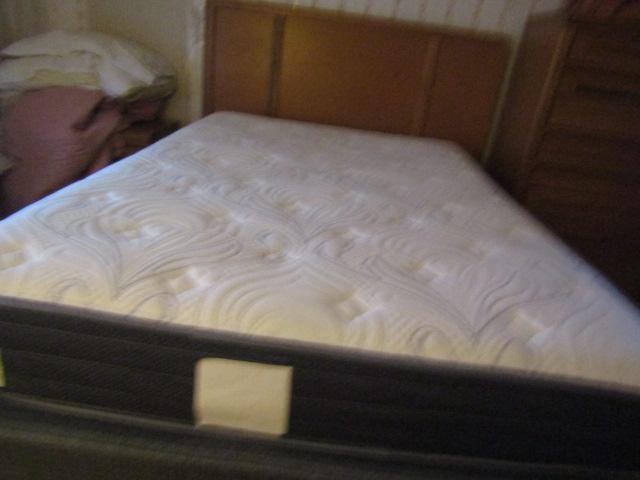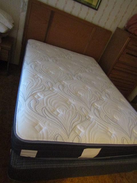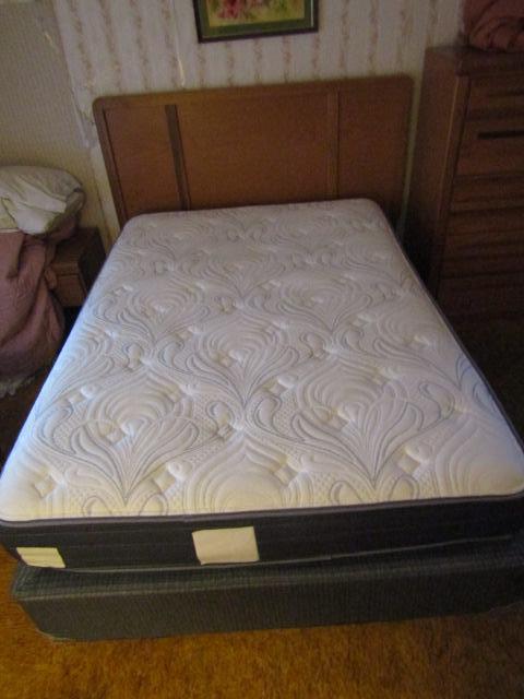 Full Size Mattress, Box Spring, and Frame with Wooden Headboard