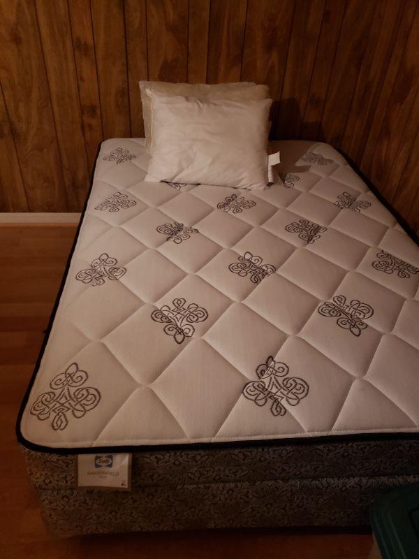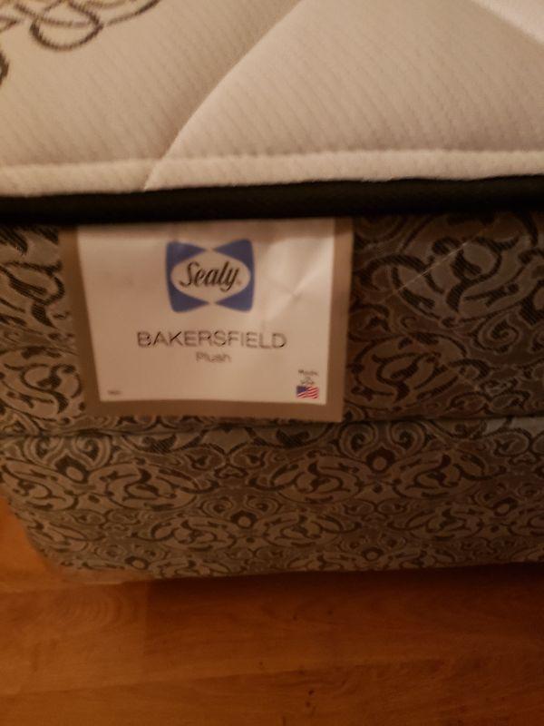 Full size metal bed frame, sealy plush Bakersfield mattress & boxspring