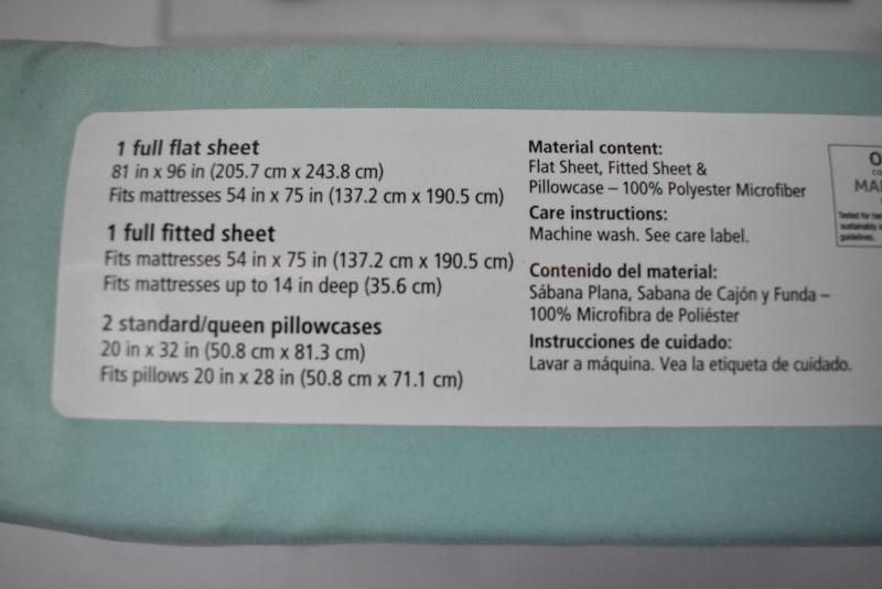 Full Size Sheet Set, Mint, by Mainstays. Soft Wrinkle Resistant Microfiber - New
