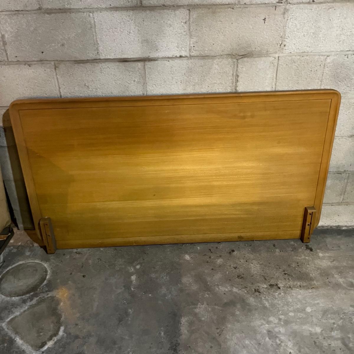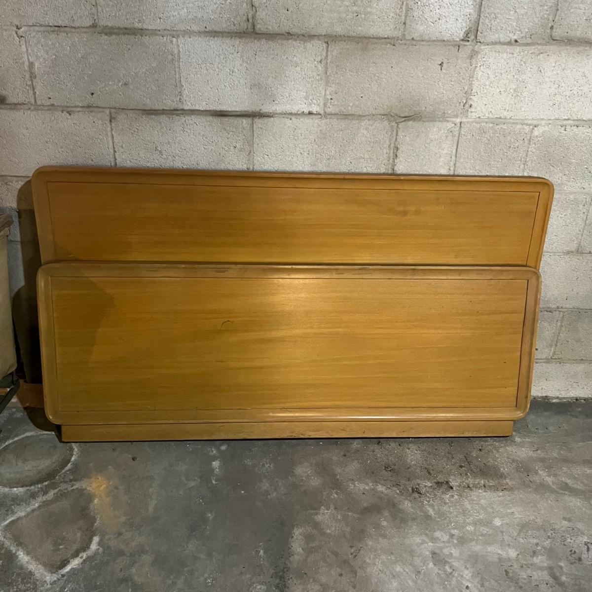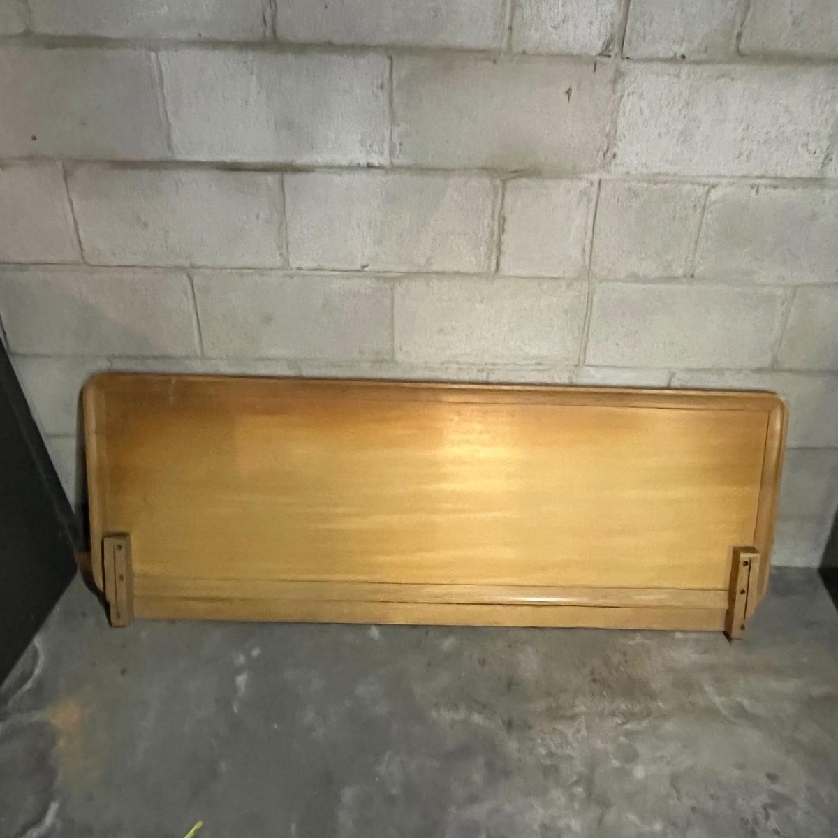 Lot includes a solid wood full size headboard and footboard with rails. Headboard measures 60” x 33” and footboard measures 60” x 23”. This pieces appears to matched dresser in lot 117 and small side table later in sale.