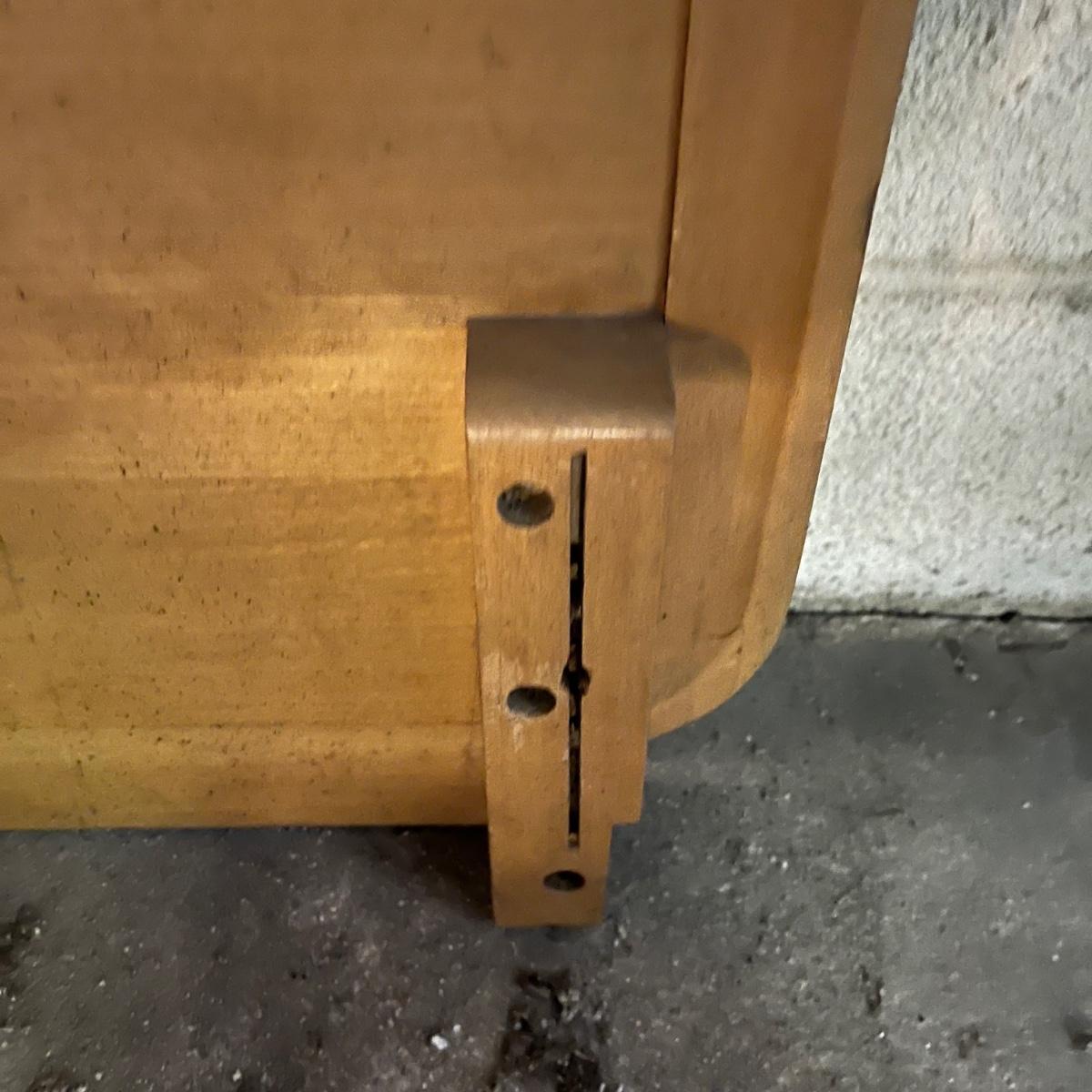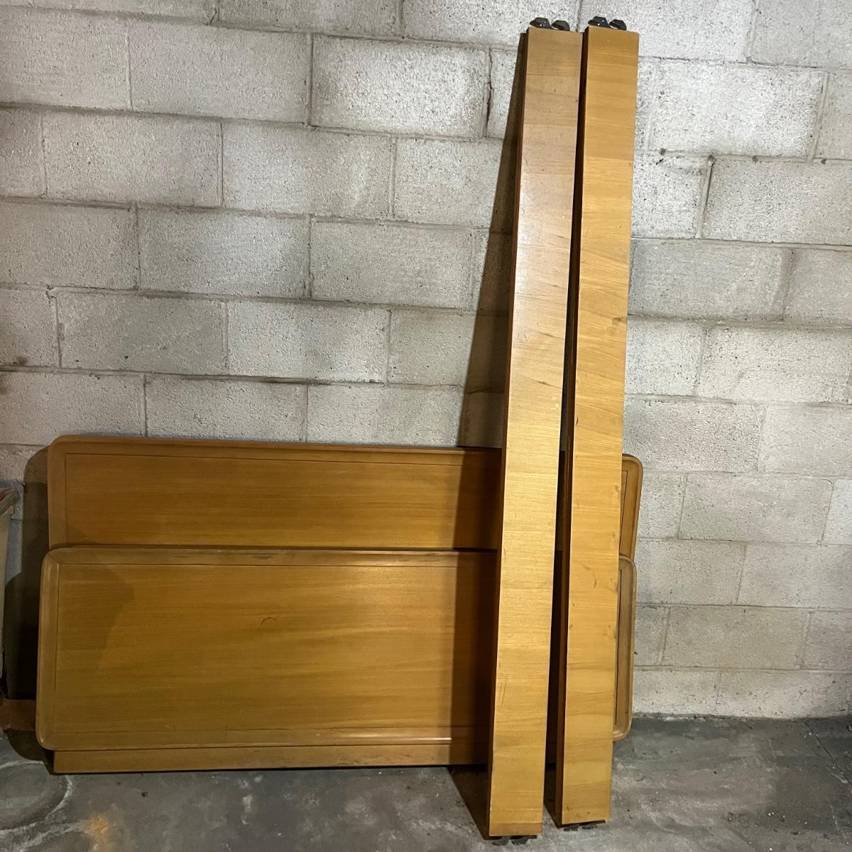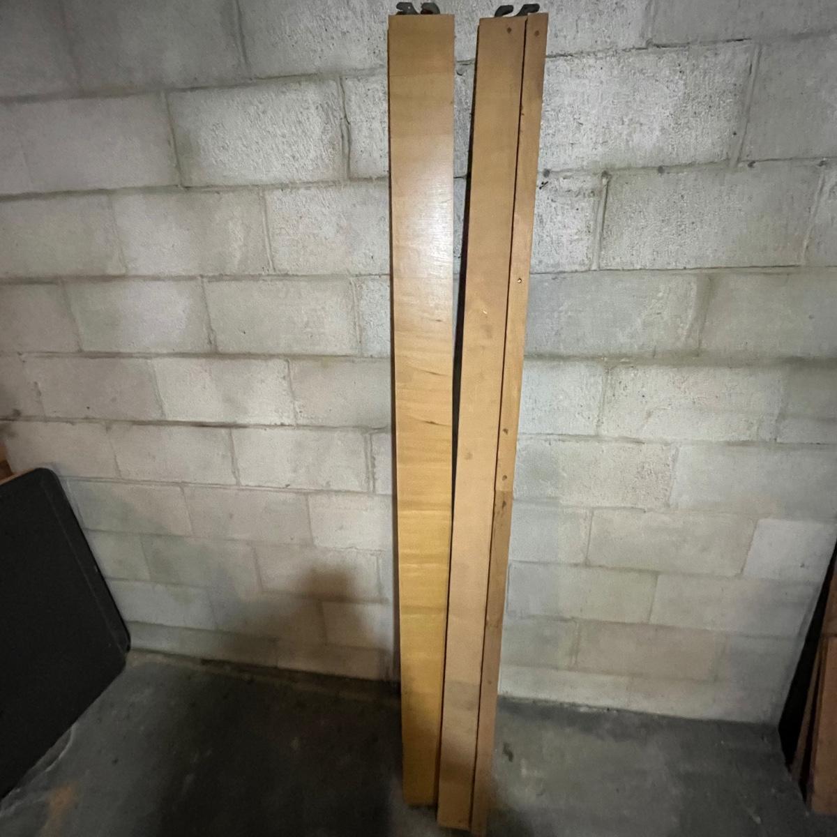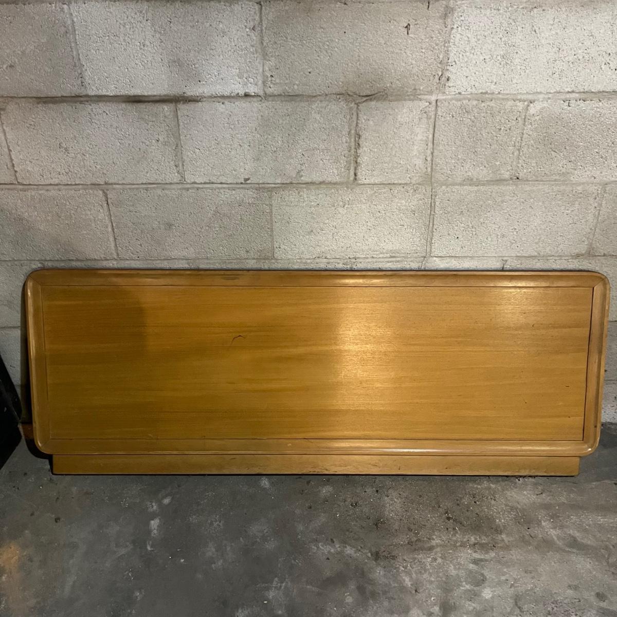 Lot includes a solid wood full size headboard and footboard with rails. Headboard measures 60” x 33” and footboard measures 60” x 23”. This pieces appears to matched dresser in lot 117 and small side table later in sale.