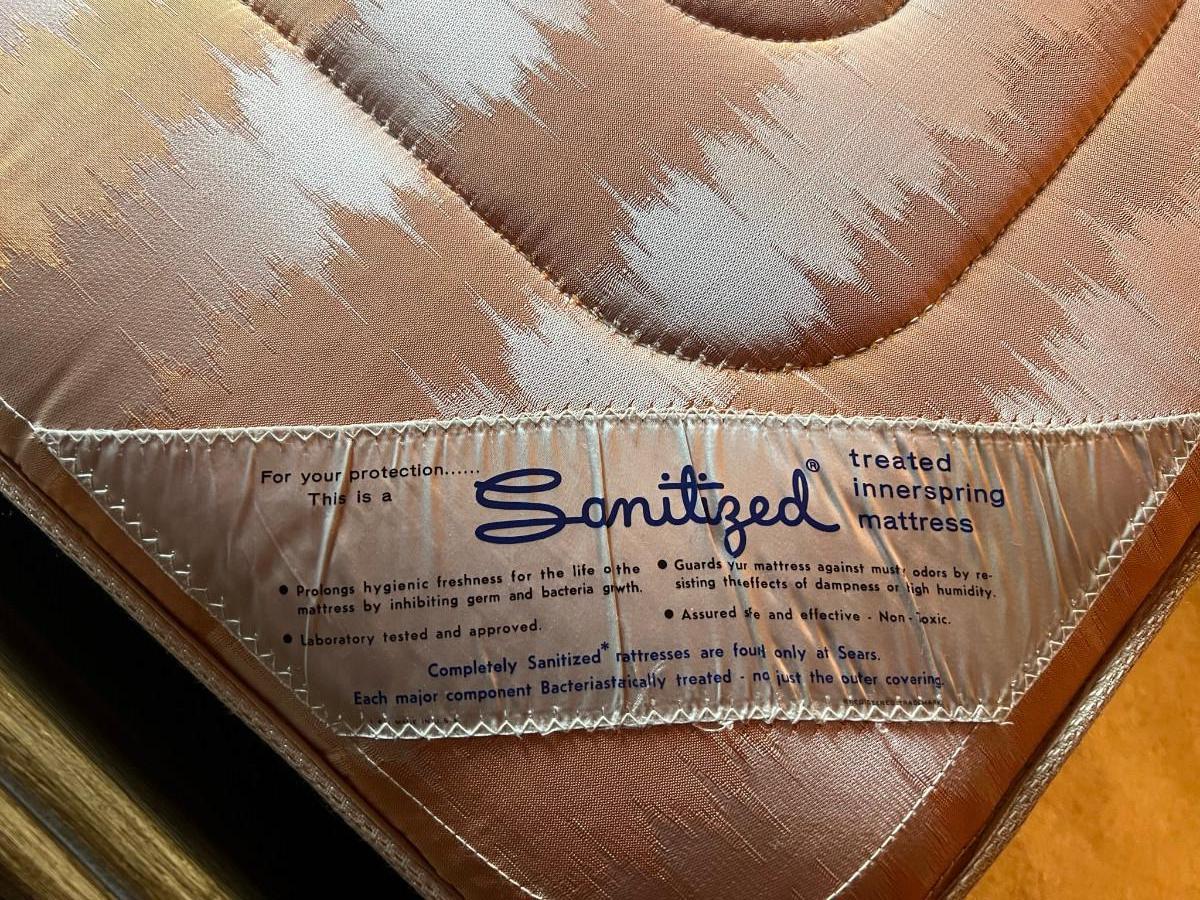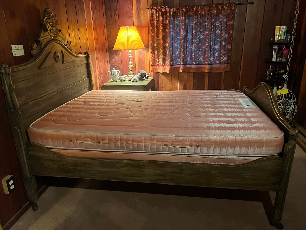 Full sized bed with headboard and footboard 62" x 80" x 55" Sears fine bedding restful nights mattress
