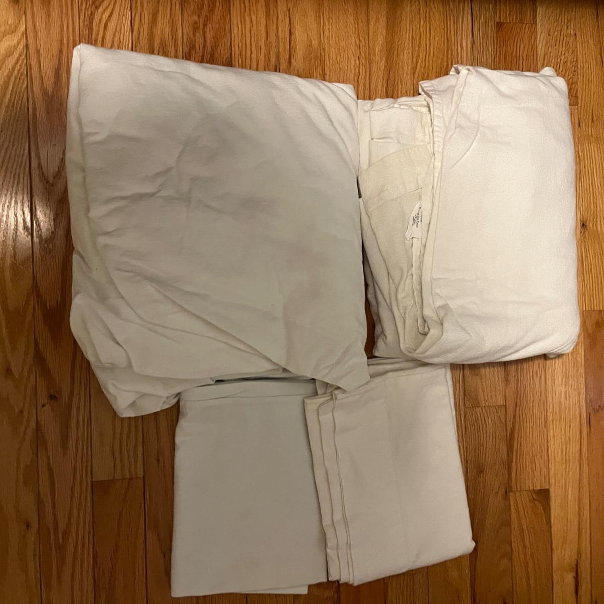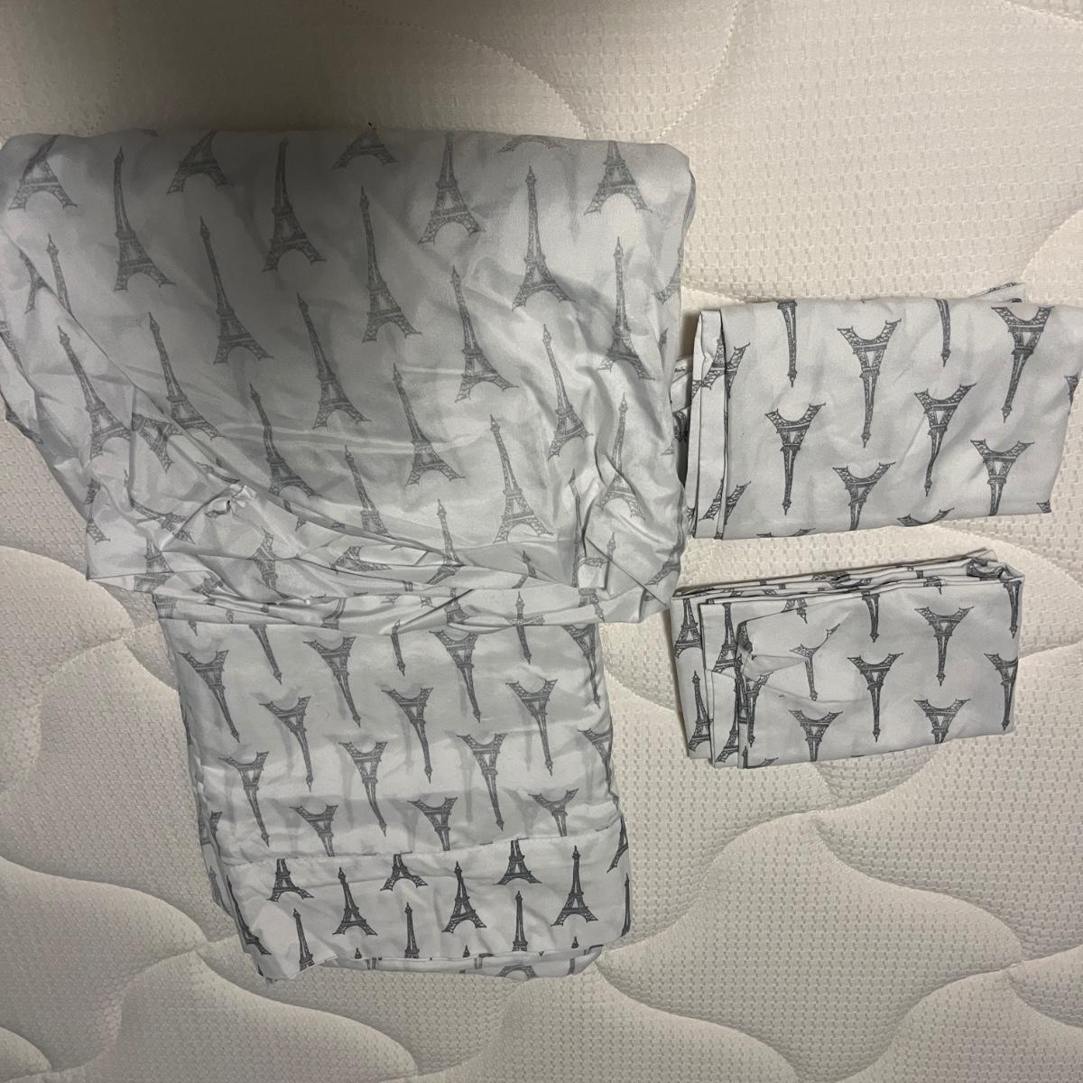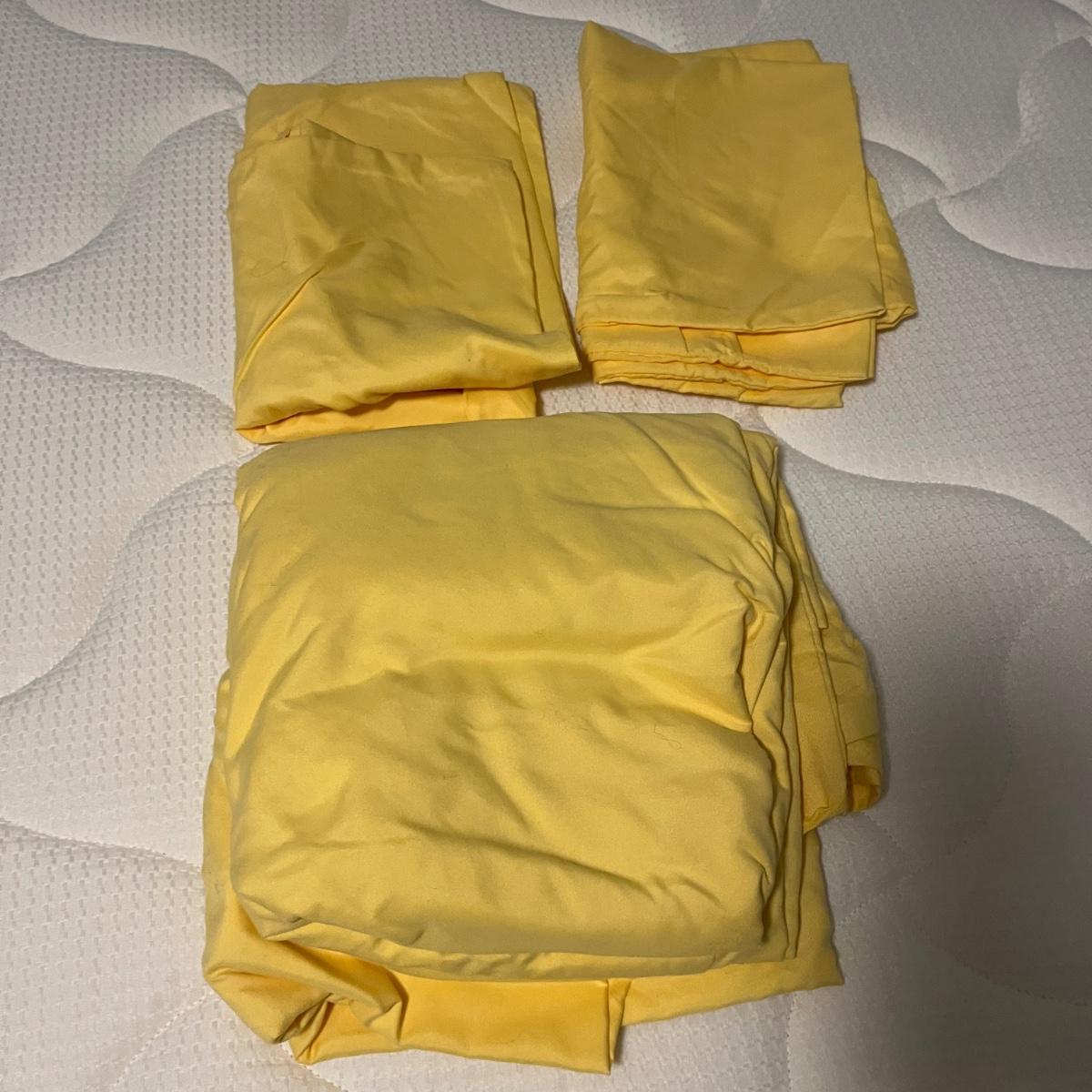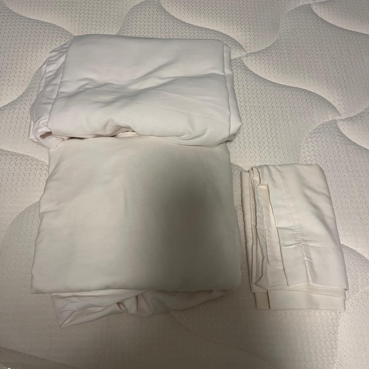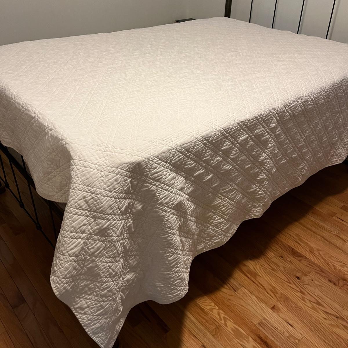 Lot includes two quilted bedspreads, two duvets and three sheet sets all are full size. Star quilt measures 76” x 86”. See images for more information.