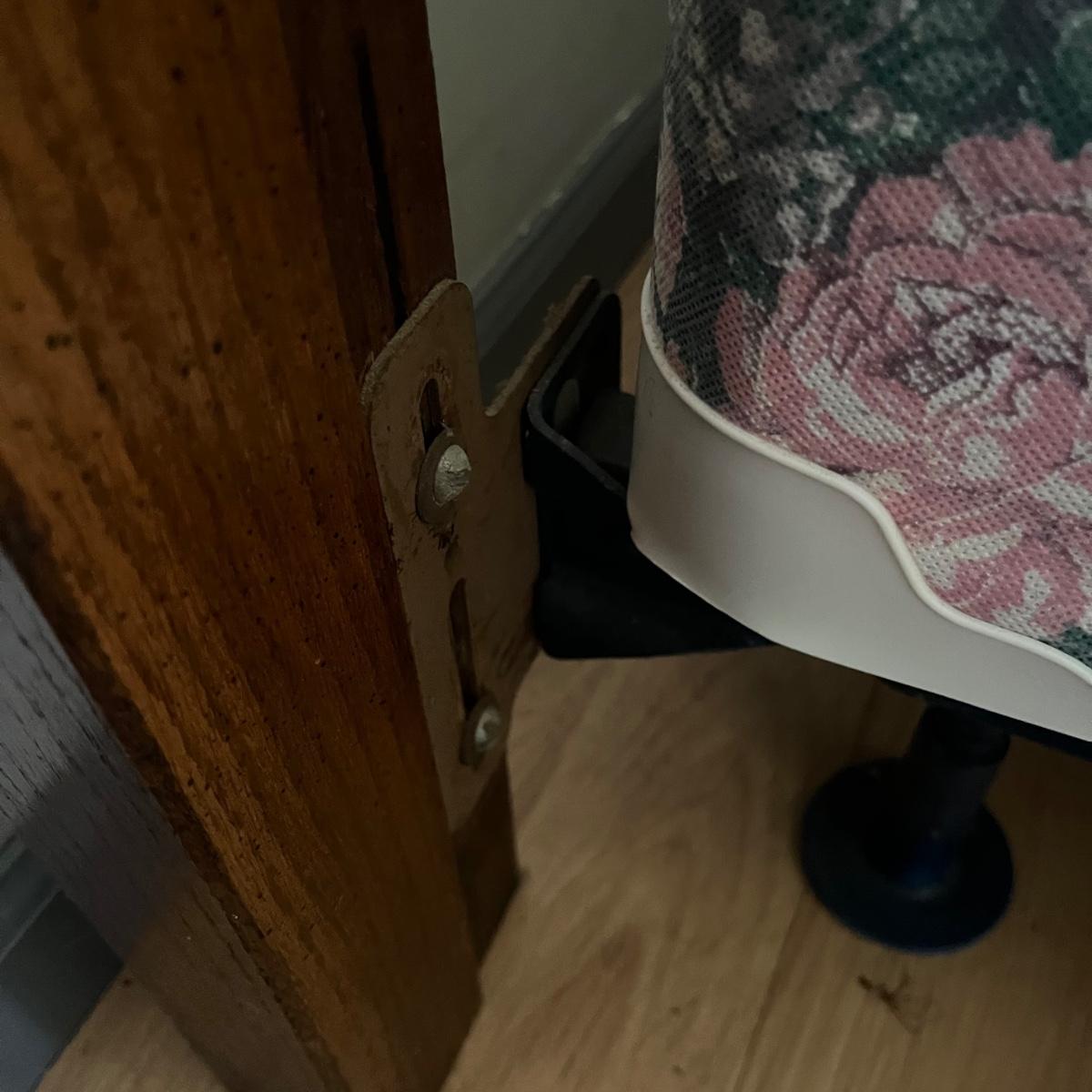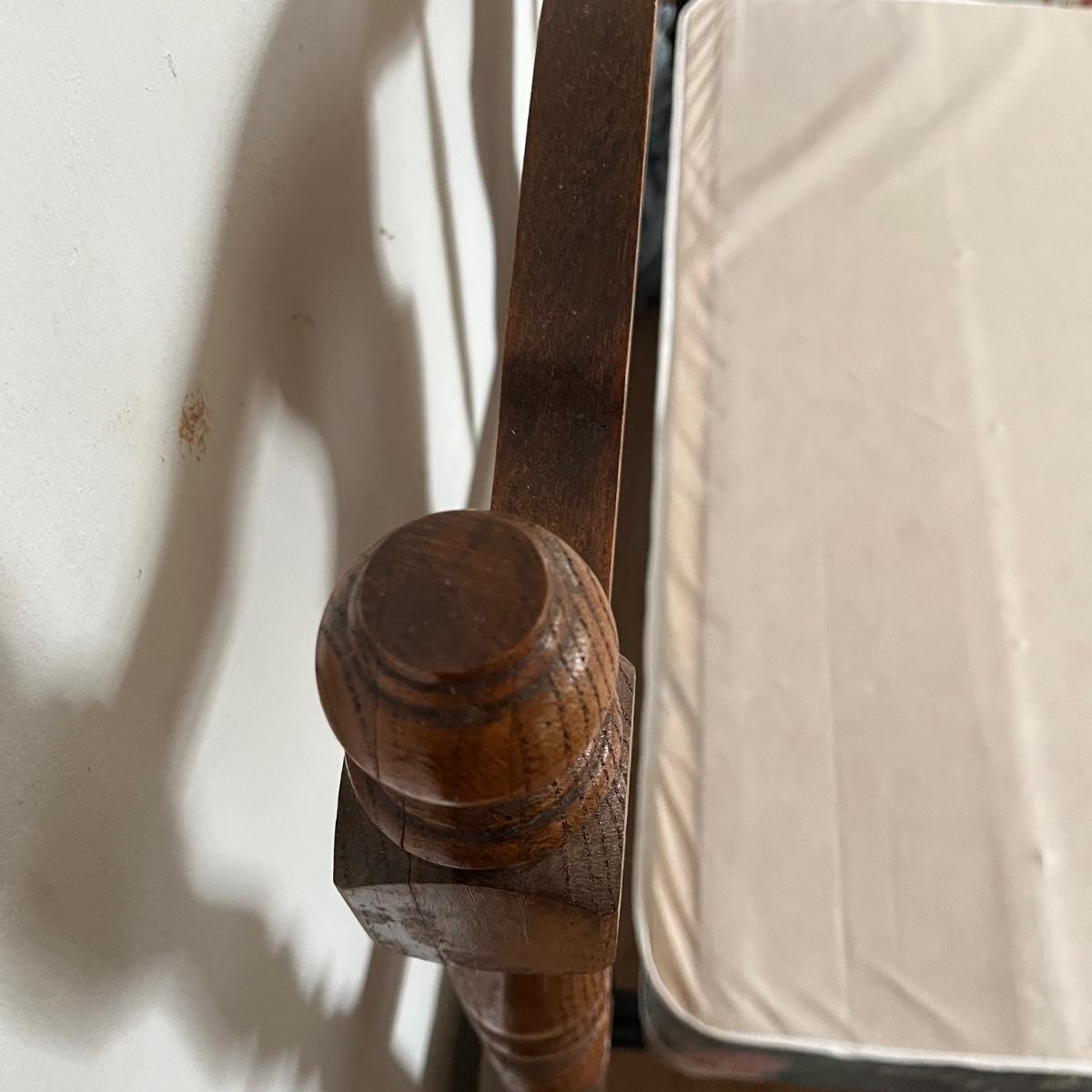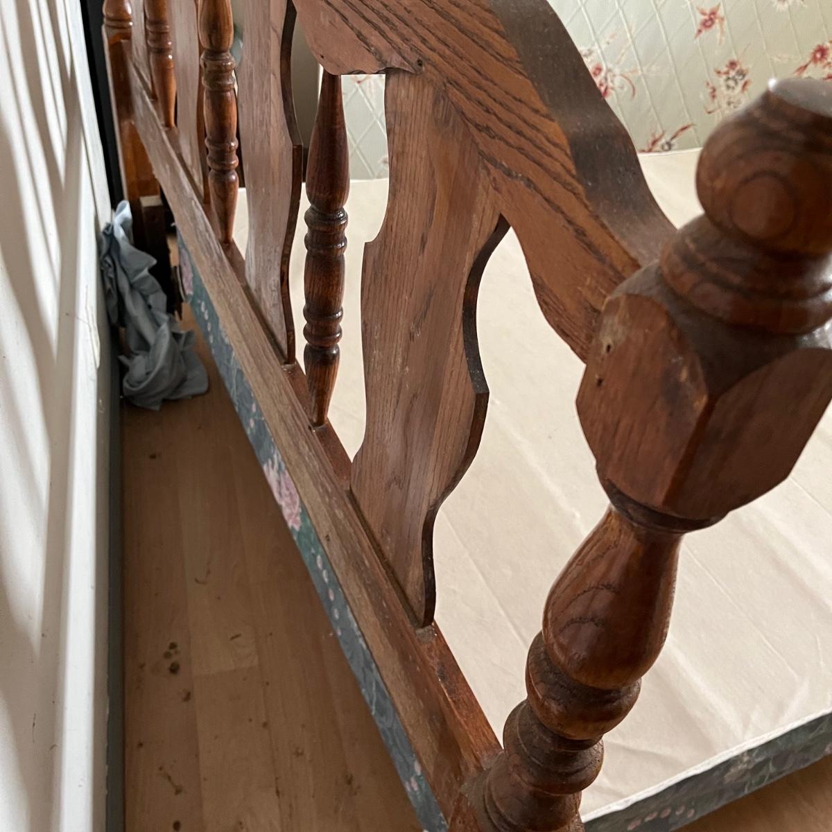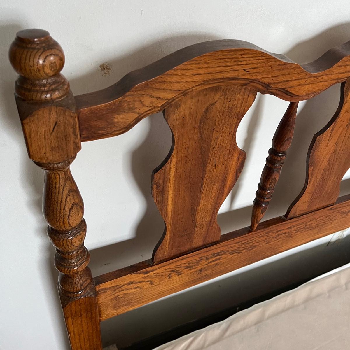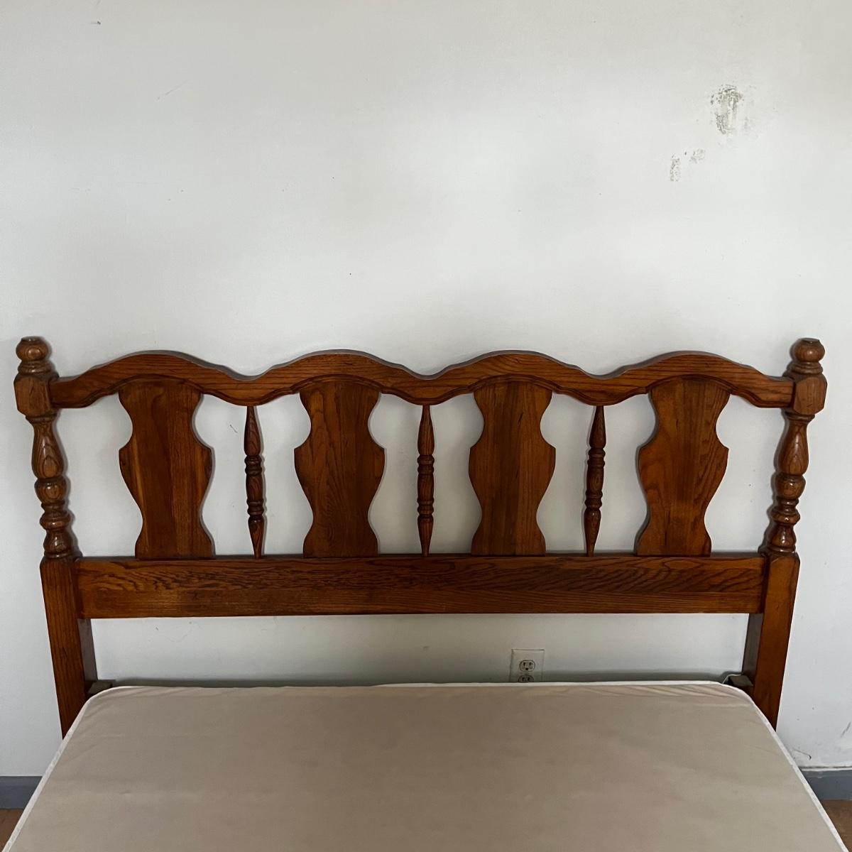 Lot includes a full sized wooden headboard with metal bed frame. Headboard measures 60” x 43”.