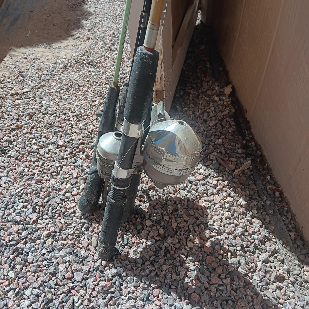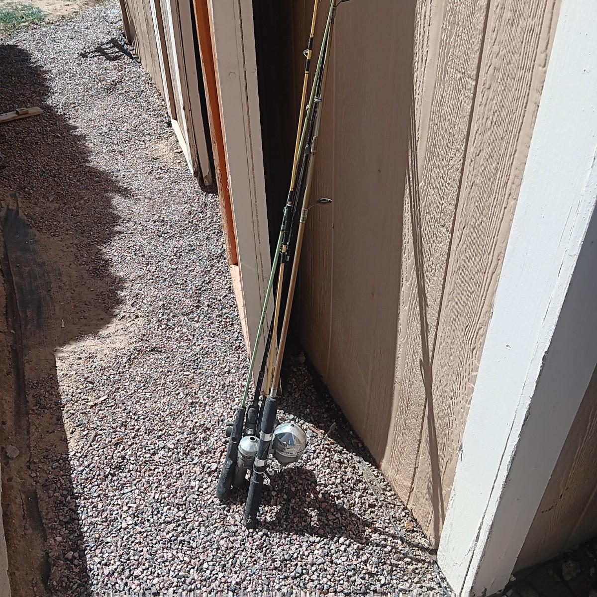 FULL TACKLE BOX AND SEVERAL FISHING POLES WITH REELS