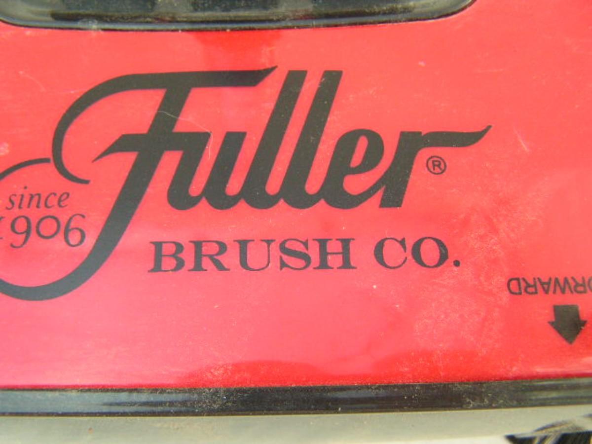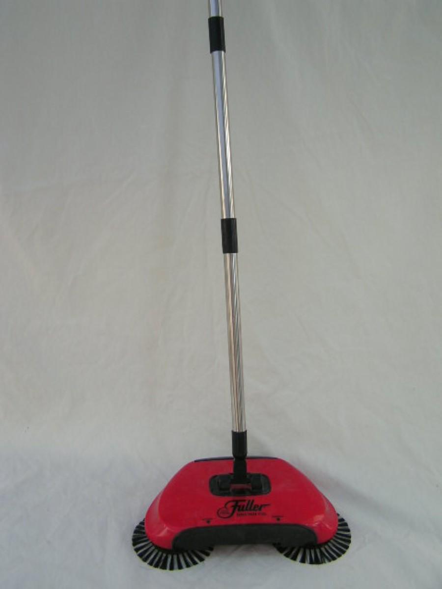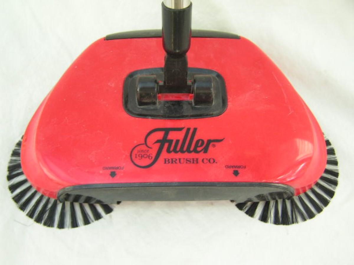 Fuller Brush mechanically operated floor brush/broom. Just push to operate. Rotating brushes sweep dirt into easy empty container. Removable handle. Handy!