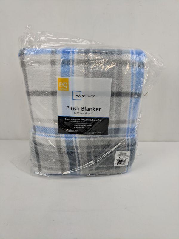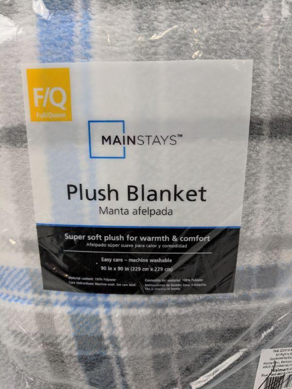 Full/Queen Blue Plaid, Plush Blanket, Mainstays - New