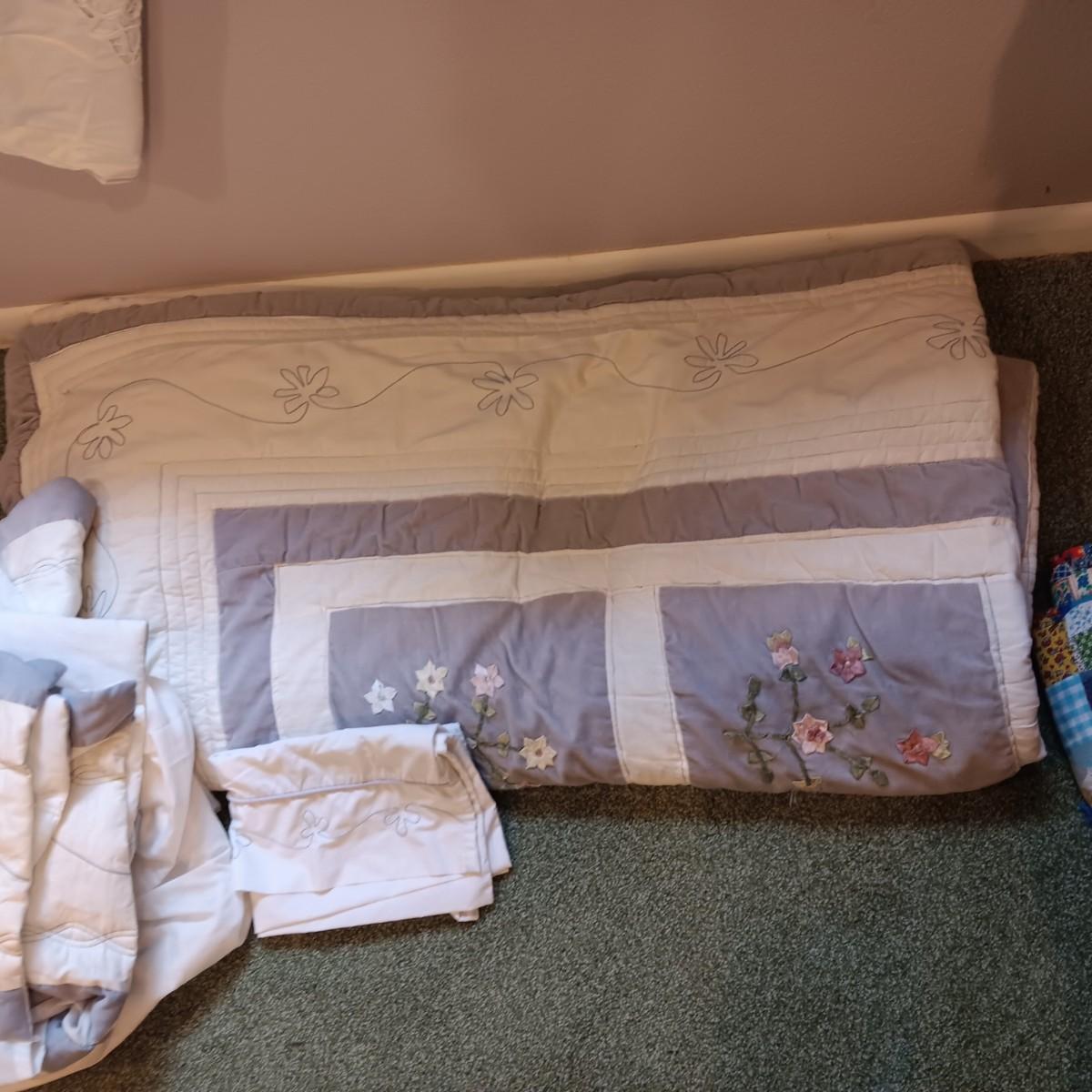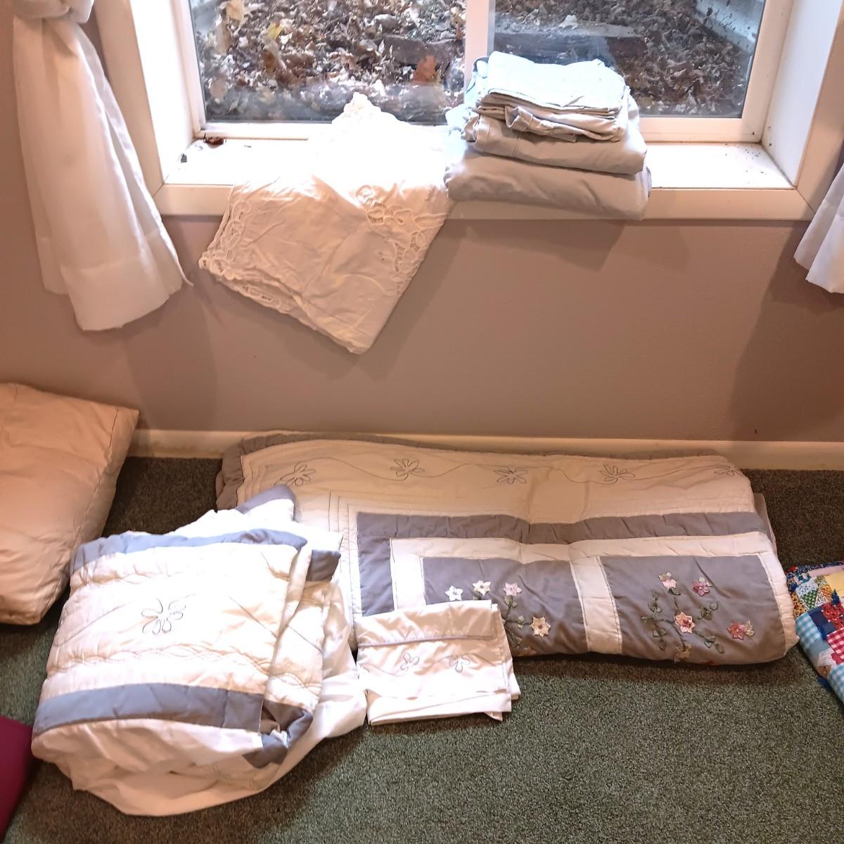 FULL/QUEEN COMFORTER, BEDSHIRT, PILLOW CASES AND SHEET SET