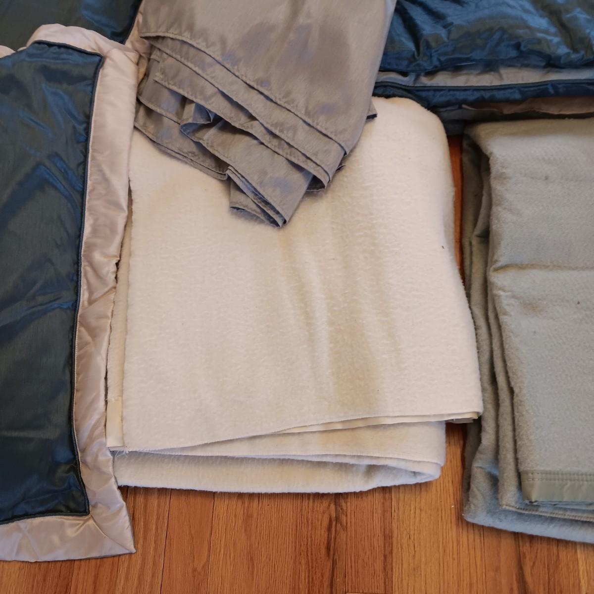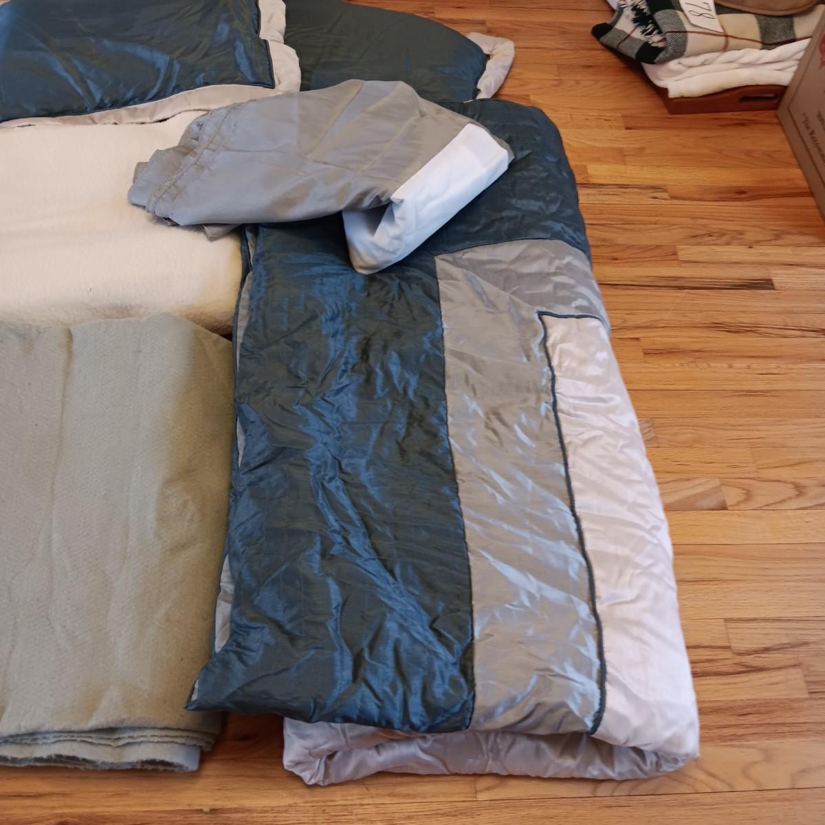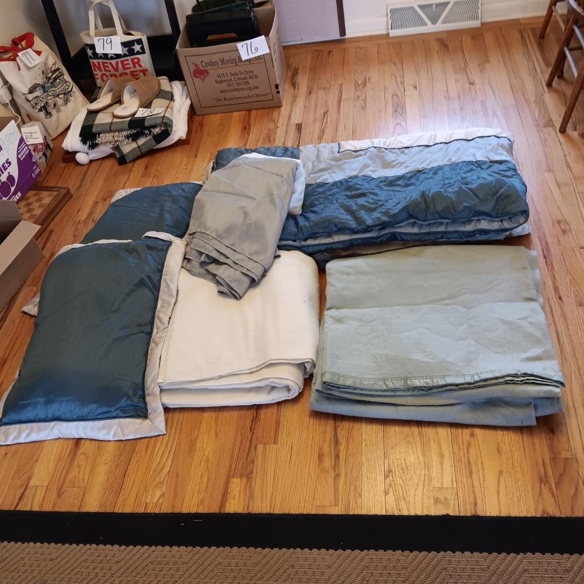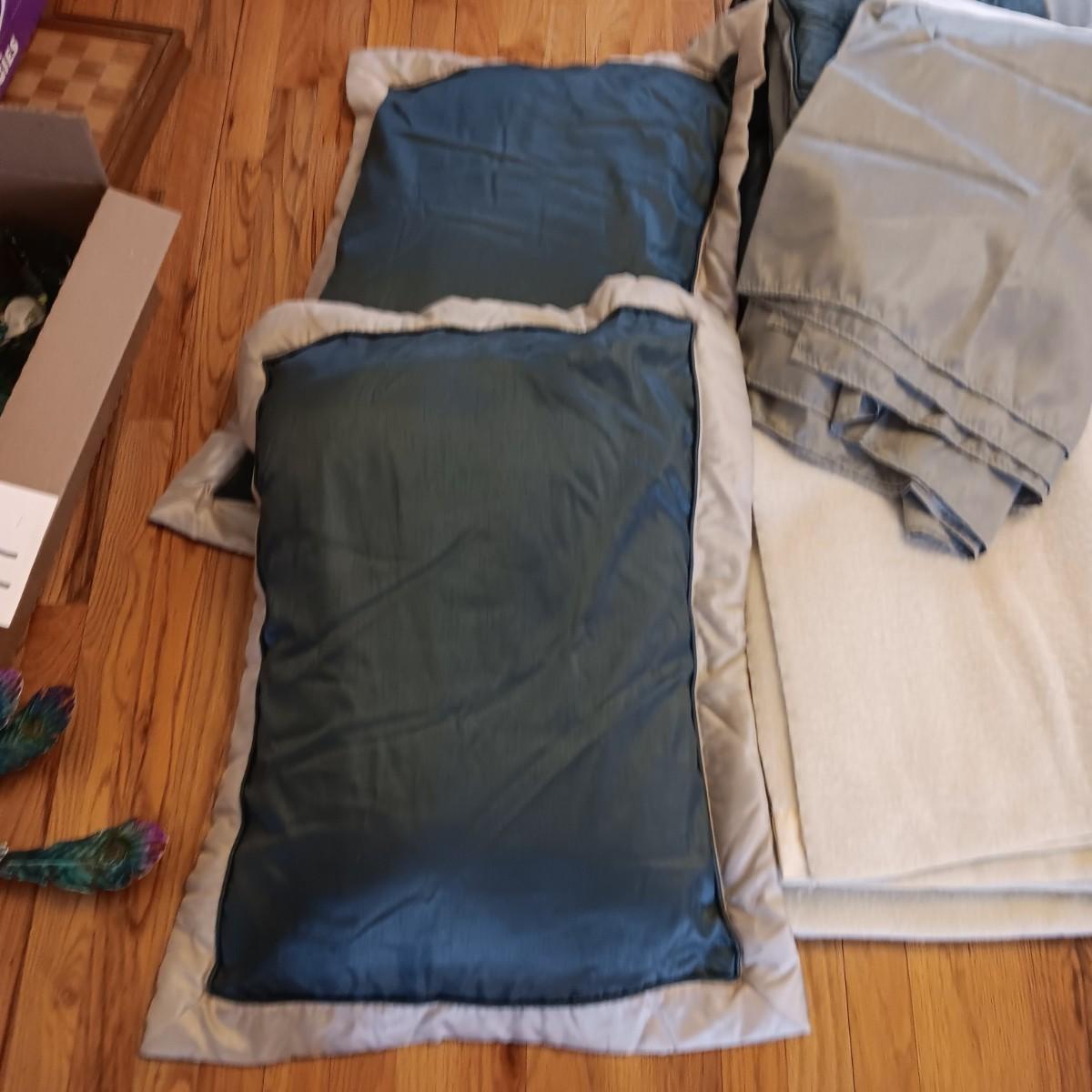 FULL/QUEEN COMFORTER, BEDSKIRT, PILLOW SHAMS AND 2 BLANKETS