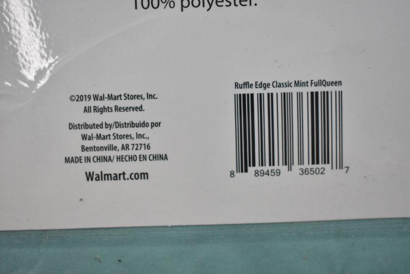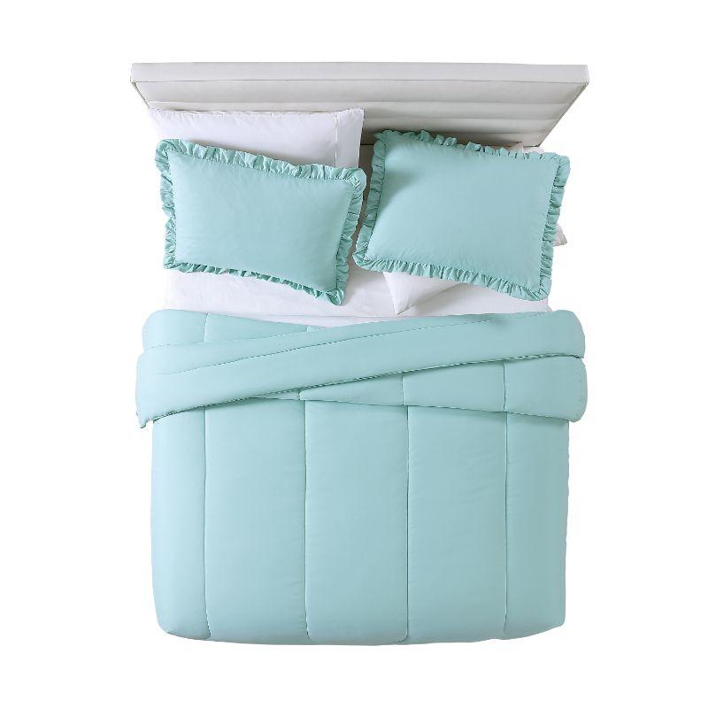 Full/Queen Comforter Set: Mainstays Ruffle Edge, Mint - New