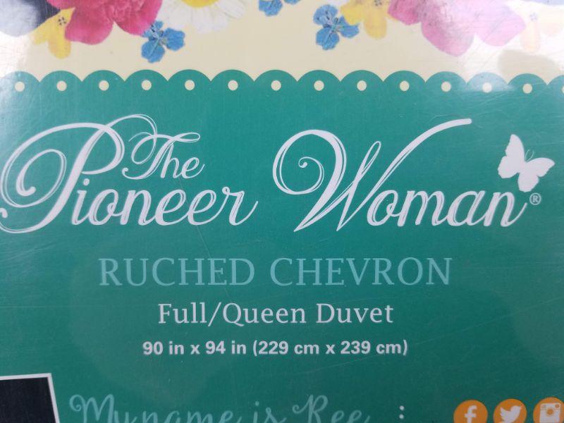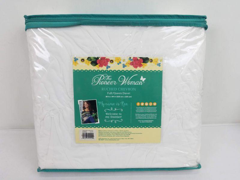 Full/Queen Duvet 90" x 94" by Pioneer Woman Ruched Chevron White - New