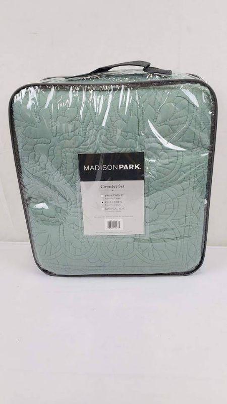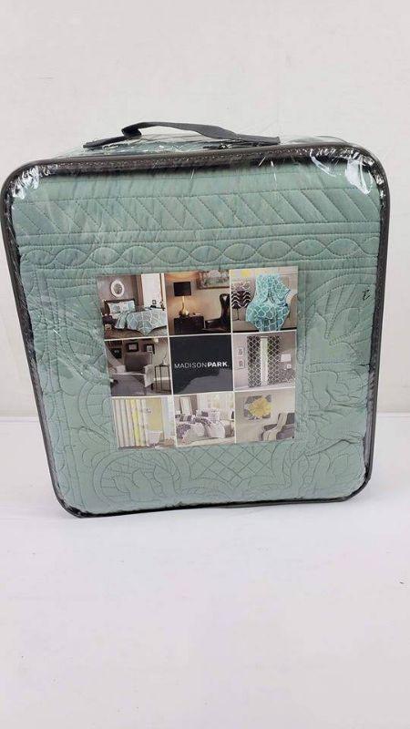 Full/Queen Seafoam Genoa 3 Piece Reversible Scalloped Edge Coverlet Set - New