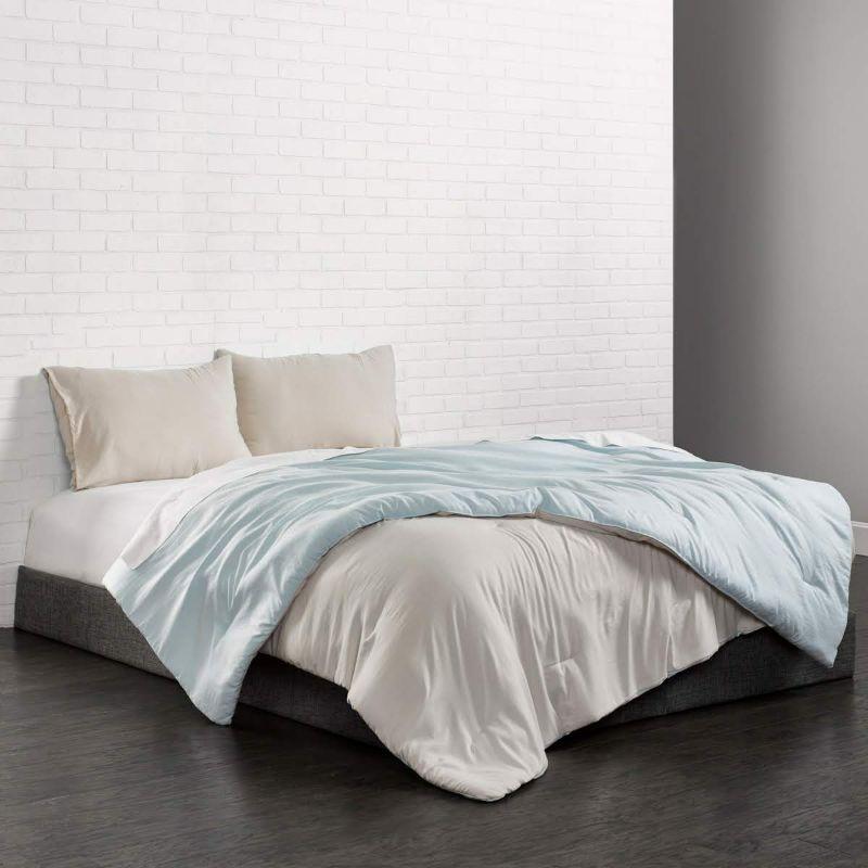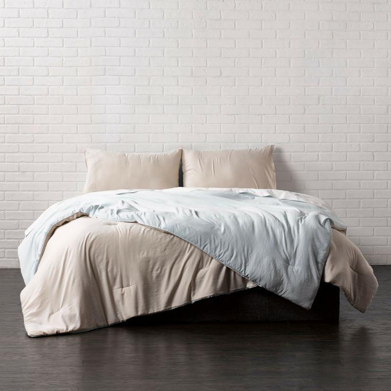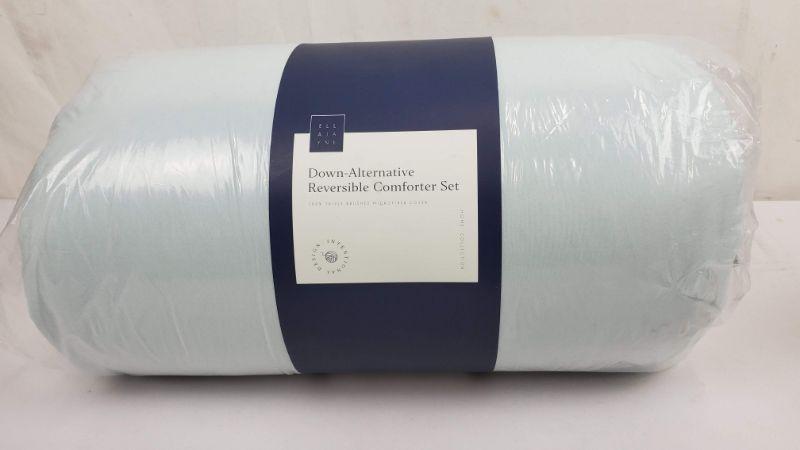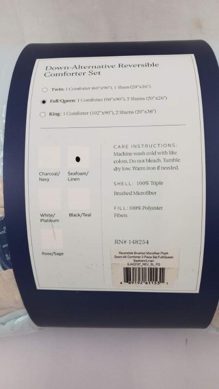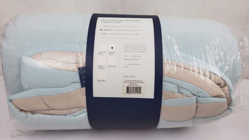 Full/Queen, Seafoam/Linen Reversible Brushed Microfiber Plush Down-Alt Comforter & 2 Shams - New