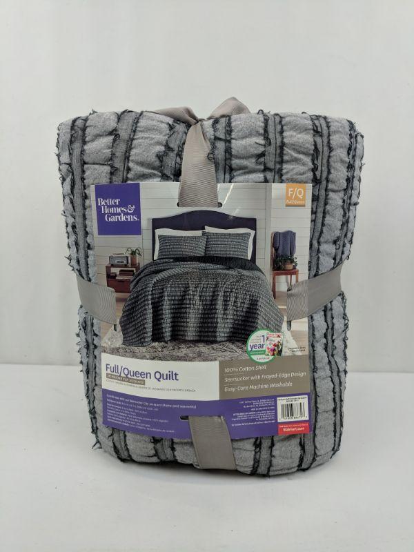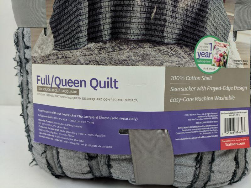 Full/Queen Seersucker Clip Jacquard, Greyish Blue, Quilt - New