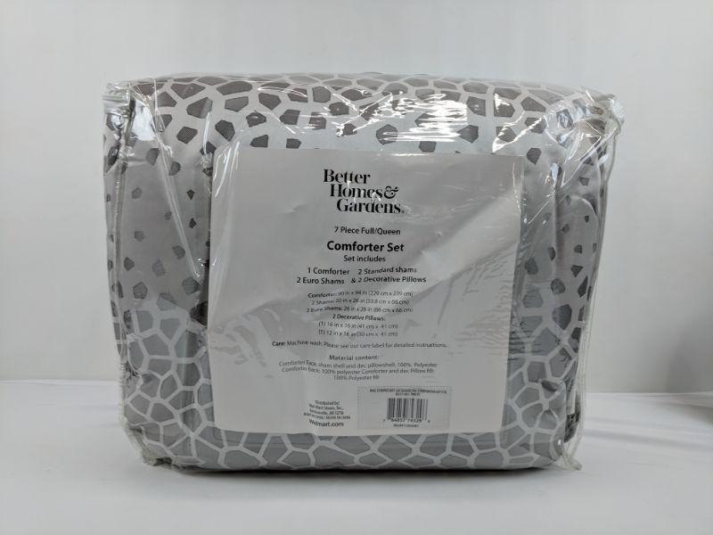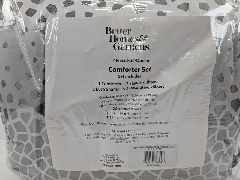 Full/Queen Striped Dot Jacquard Silver Comforter Set, 7 PC - New