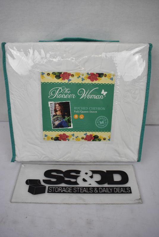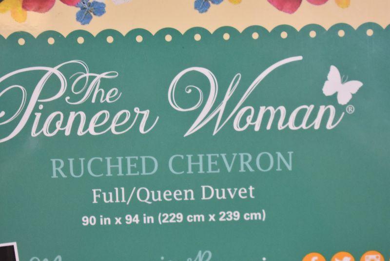 Full/Queen, The Pioneer Woman Ruched Chevron Duvet, White, $40 Retail - New