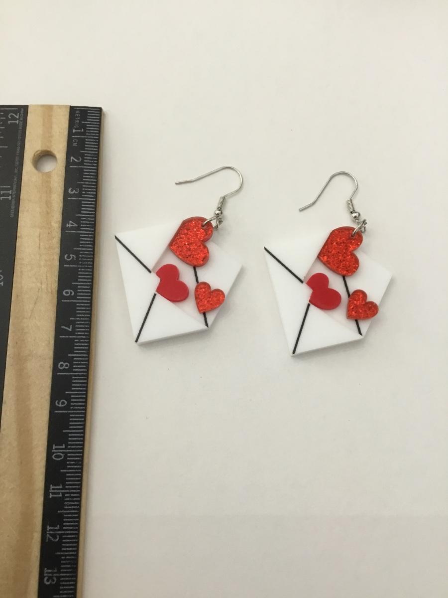 Fun, acrylic, love letter, dangle earrings