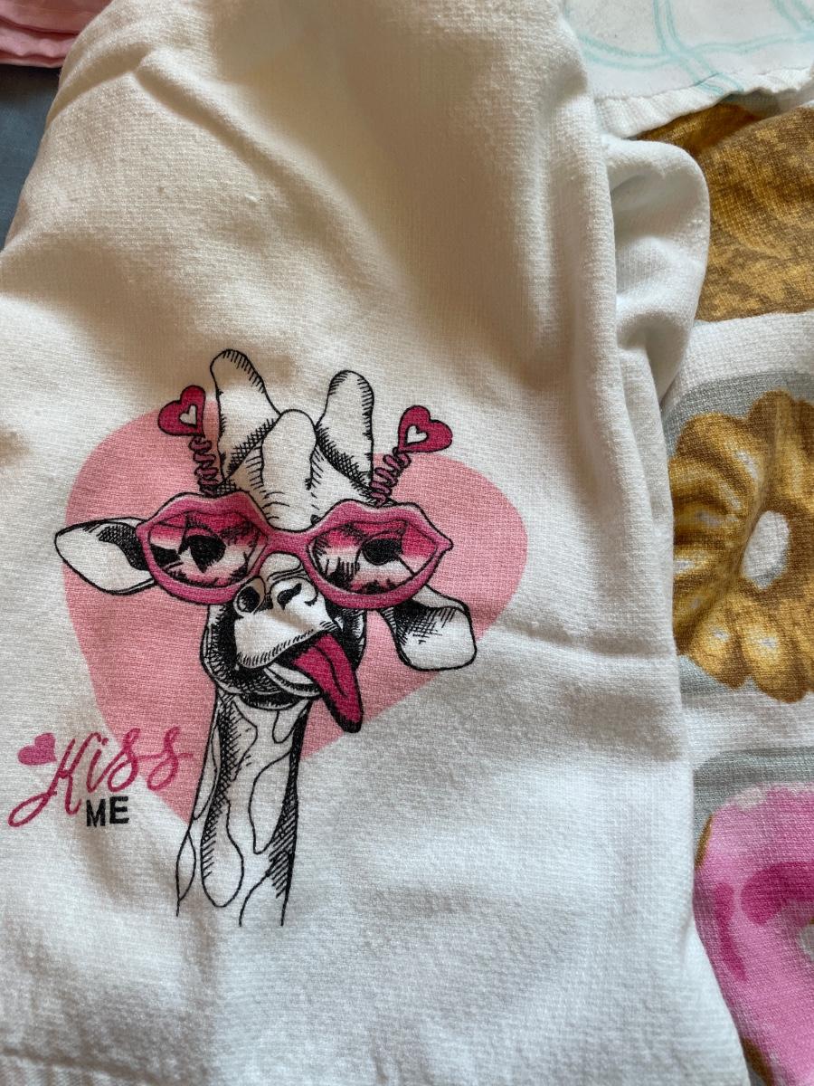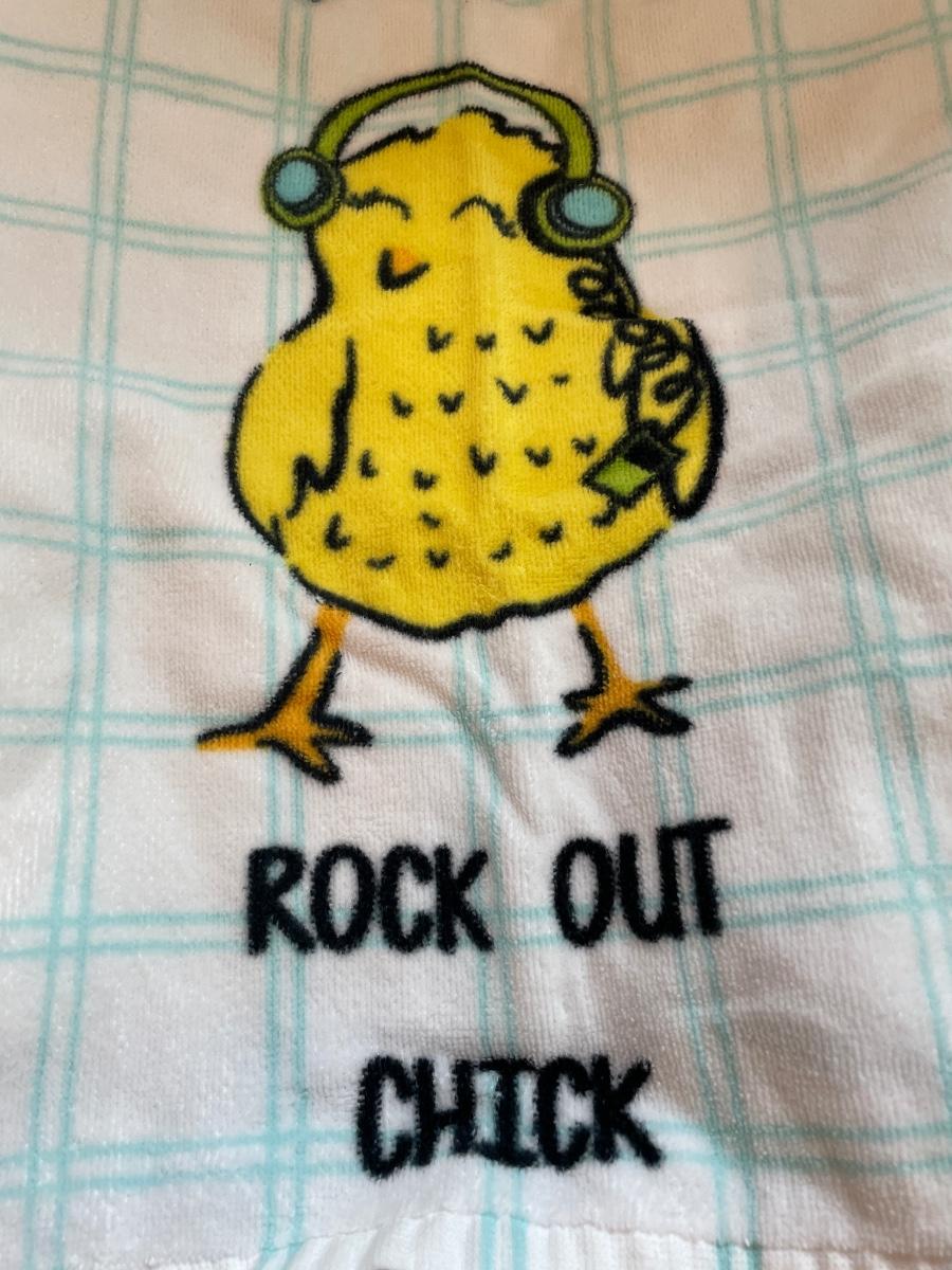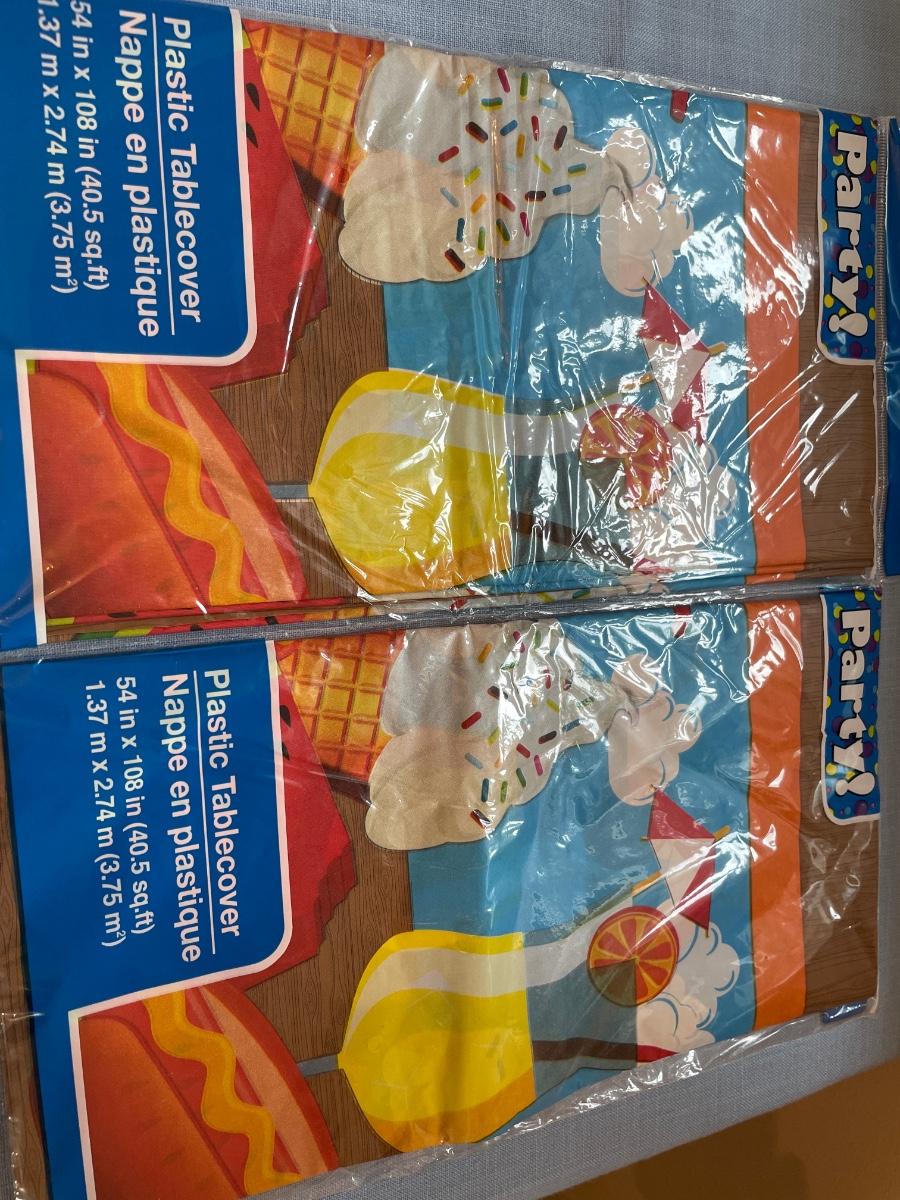 Fun apron, kitchen towels and 2 plastic table covers