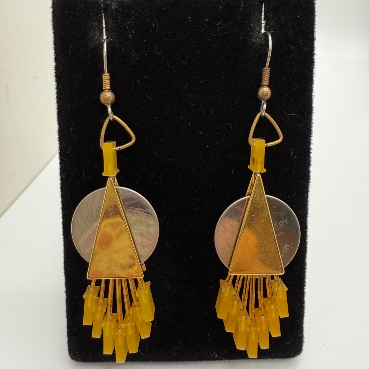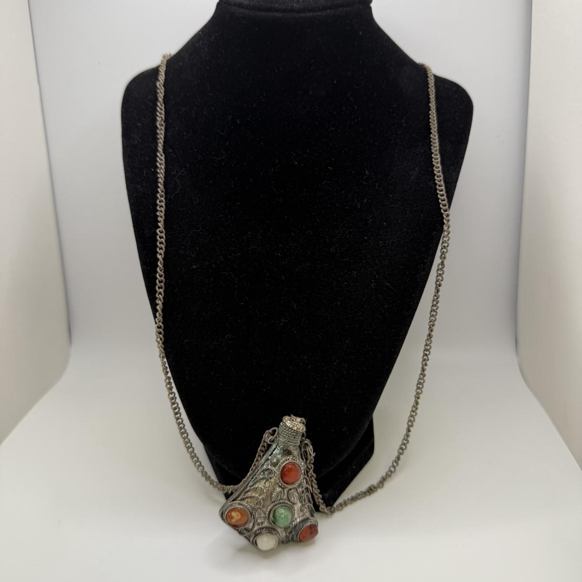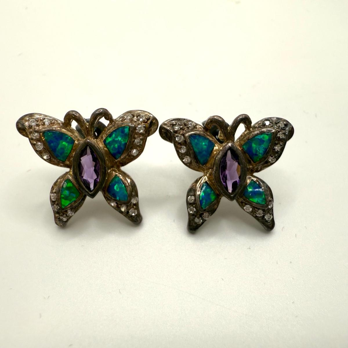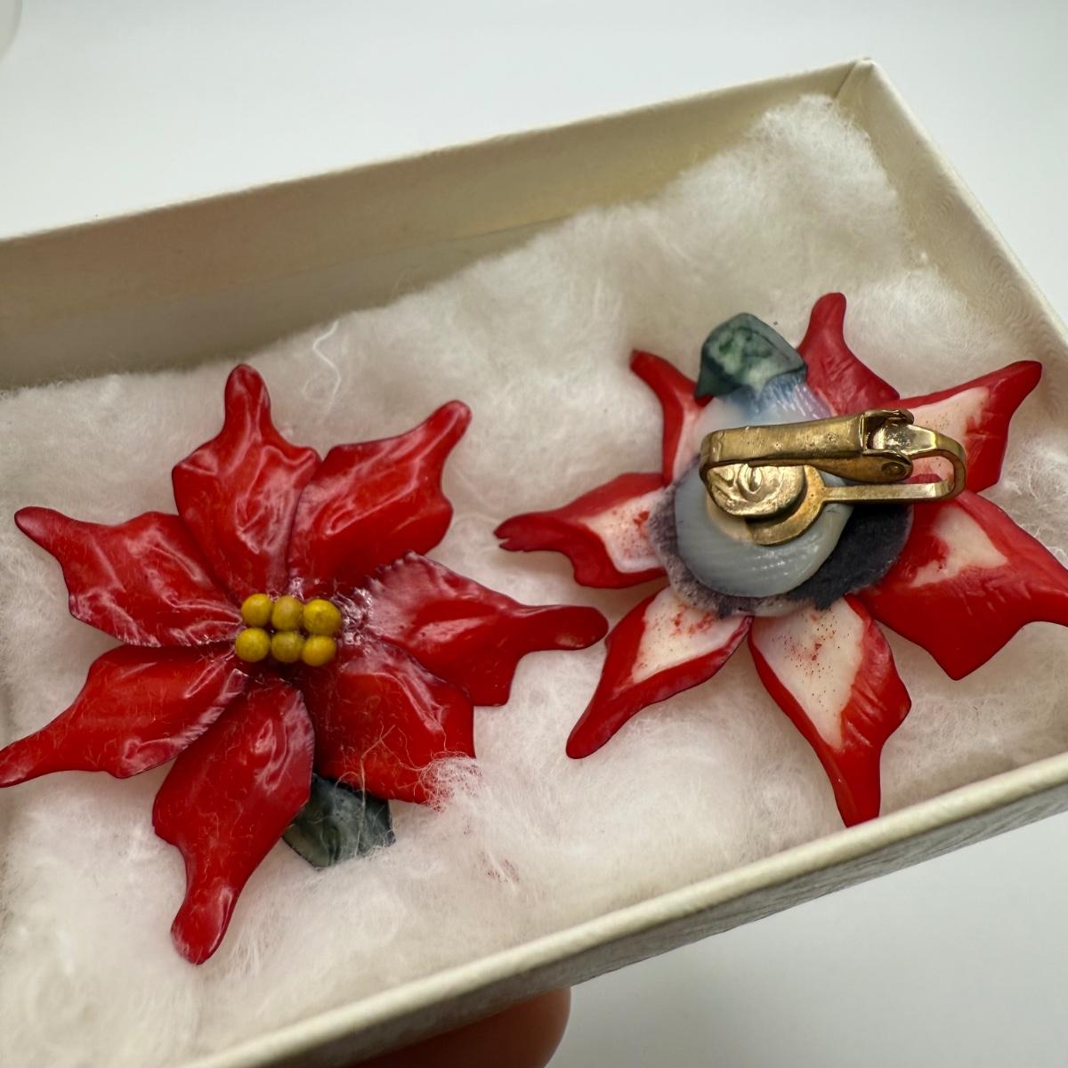 A fun and colorful variety of artsy jewelry! Included are over 15 pairs of earrings for pierced ears plus one pair of clip earrings, one bracelet, one gemstone filled pendant on a chain, and more than 10 pins/brooches. Materials range from stones, to glass, to wood, ceramic, and more. According to the seller, one pair of earrings lights up with batteries inserted (need replaced). For reference, the round black pin with red berries measures 2”D.