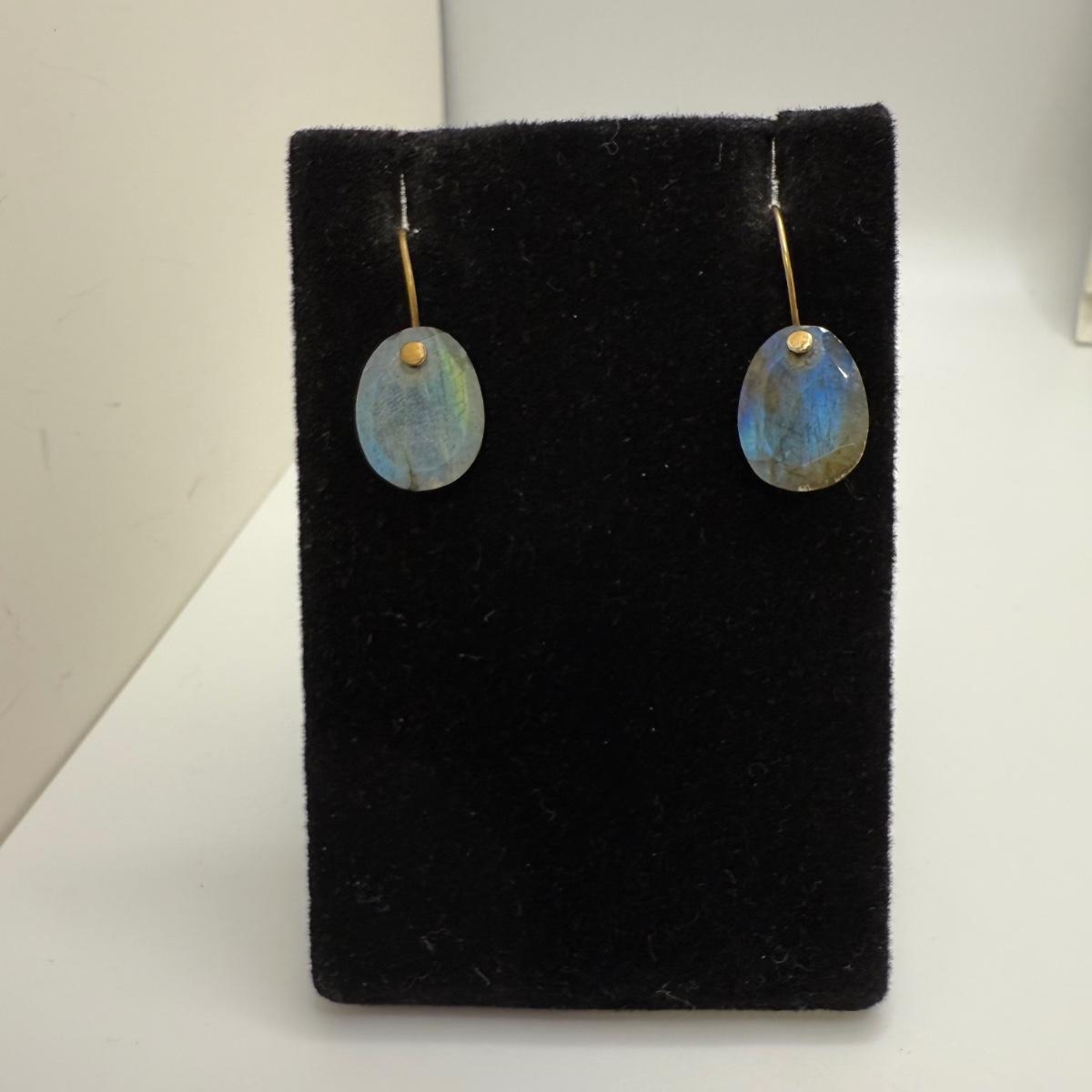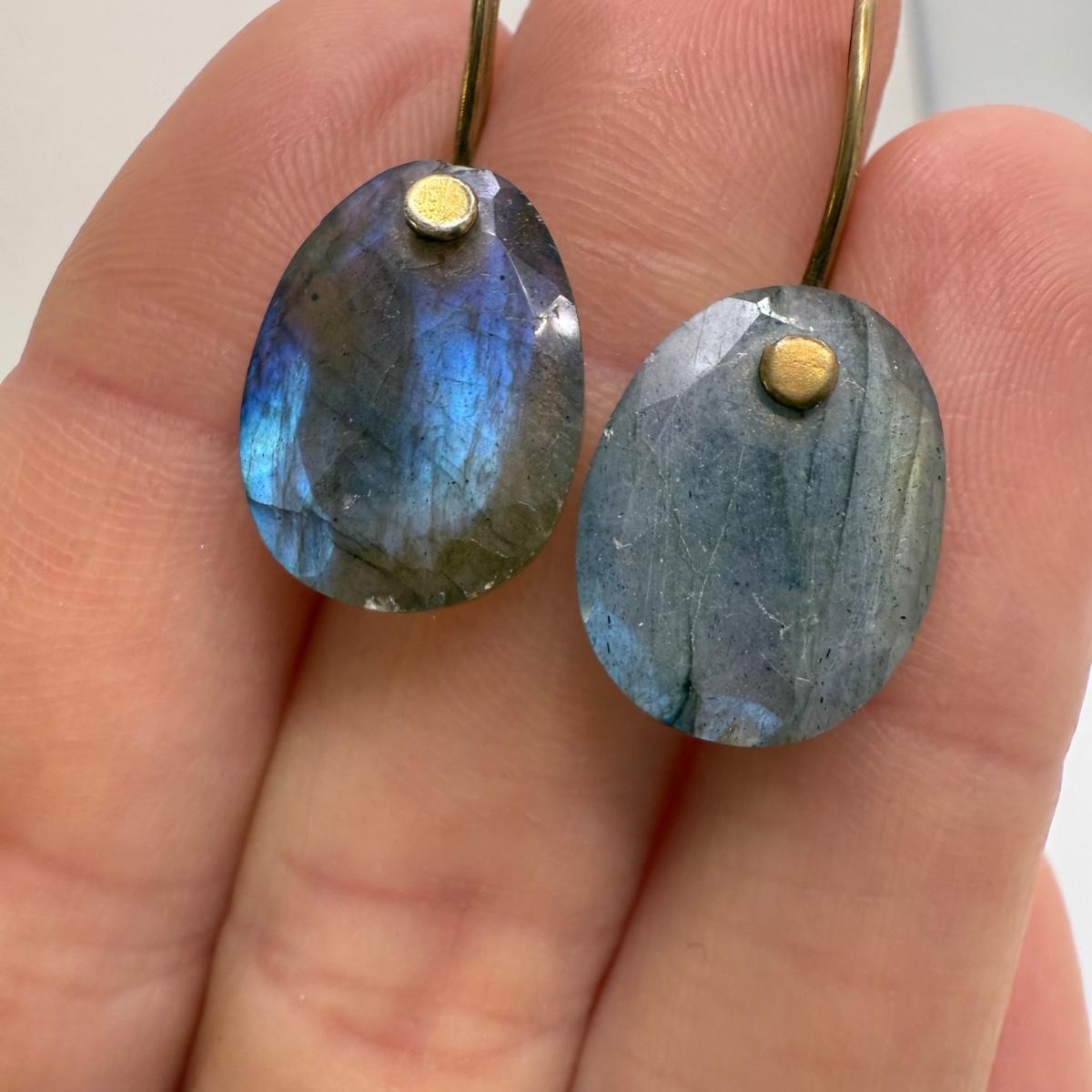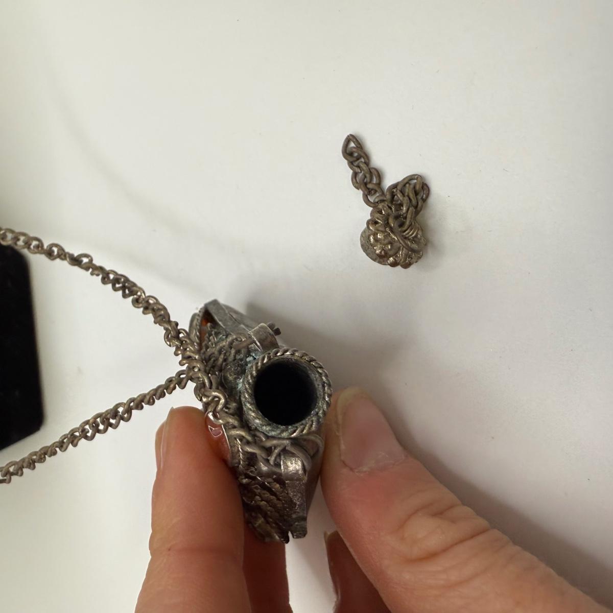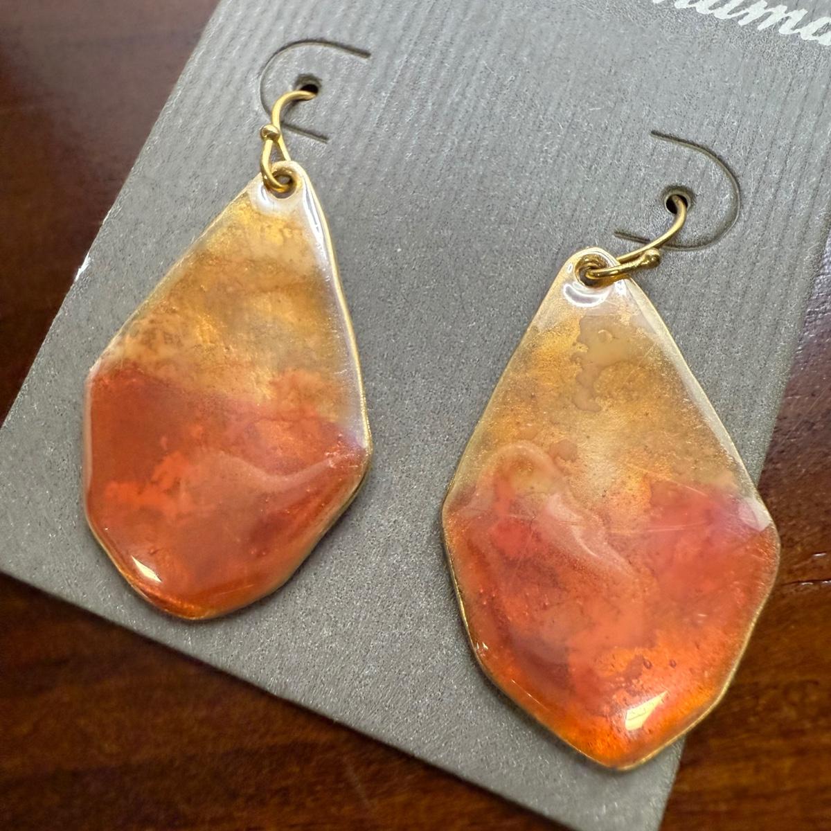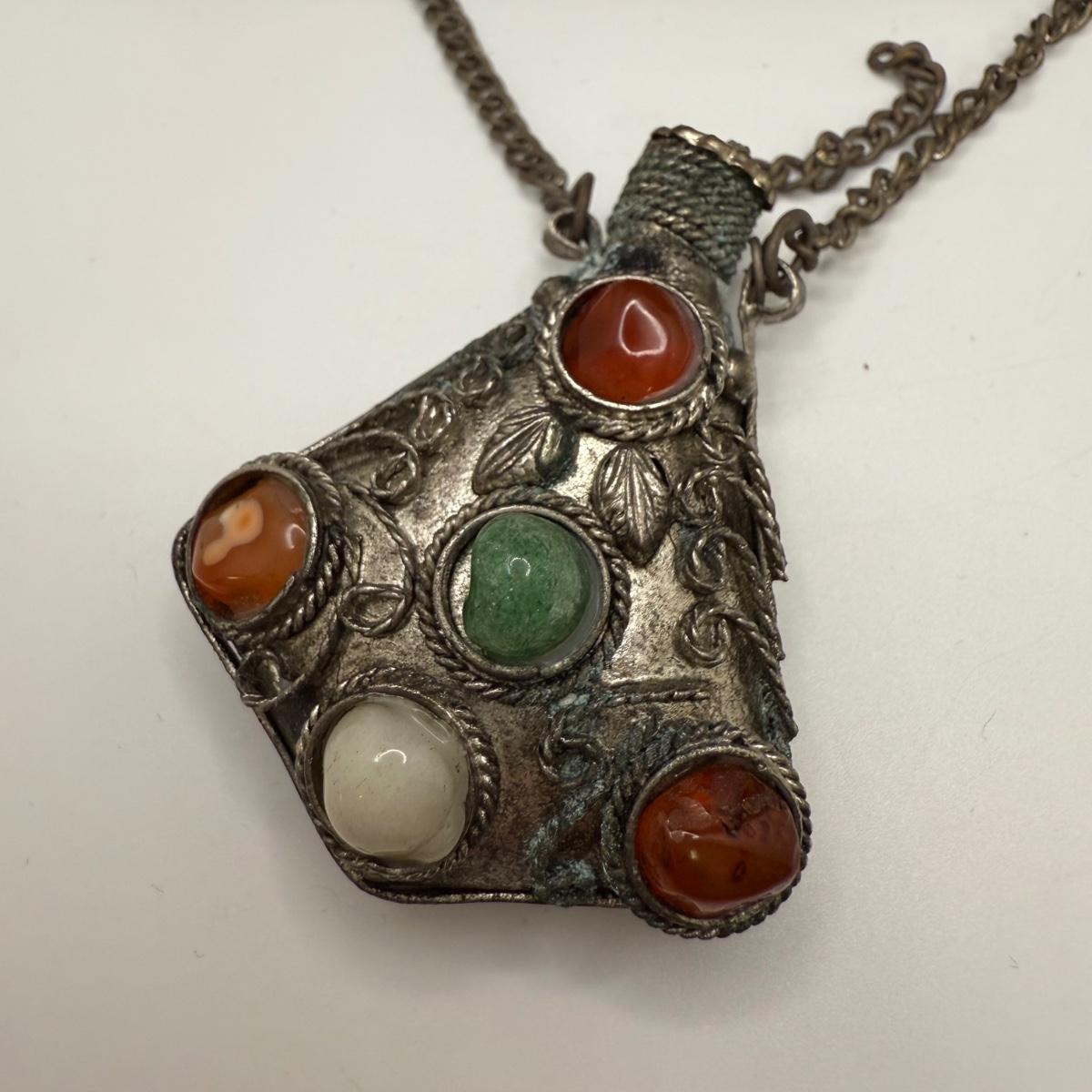 A fun and colorful variety of artsy jewelry! Included are over 15 pairs of earrings for pierced ears plus one pair of clip earrings, one bracelet, one gemstone filled pendant on a chain, and more than 10 pins/brooches. Materials range from stones, to glass, to wood, ceramic, and more. According to the seller, one pair of earrings lights up with batteries inserted (need replaced). For reference, the round black pin with red berries measures 2”D.