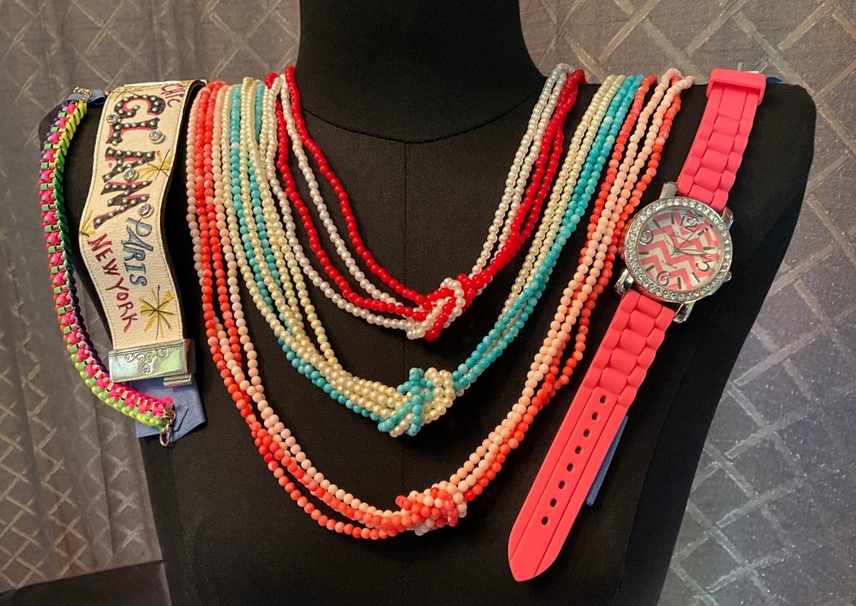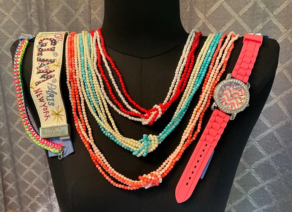 Fun colorful variety of jewelry, Geneva Plantium Watch, twister beads,
