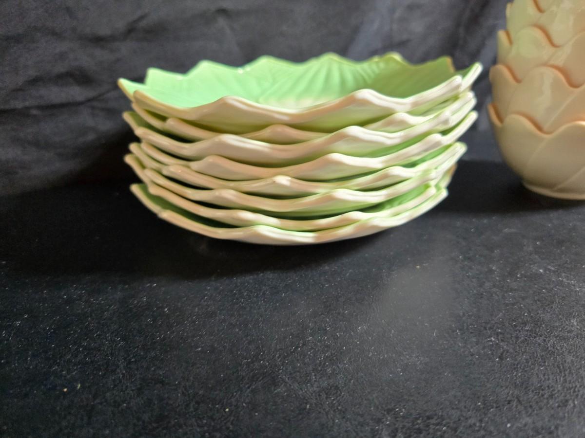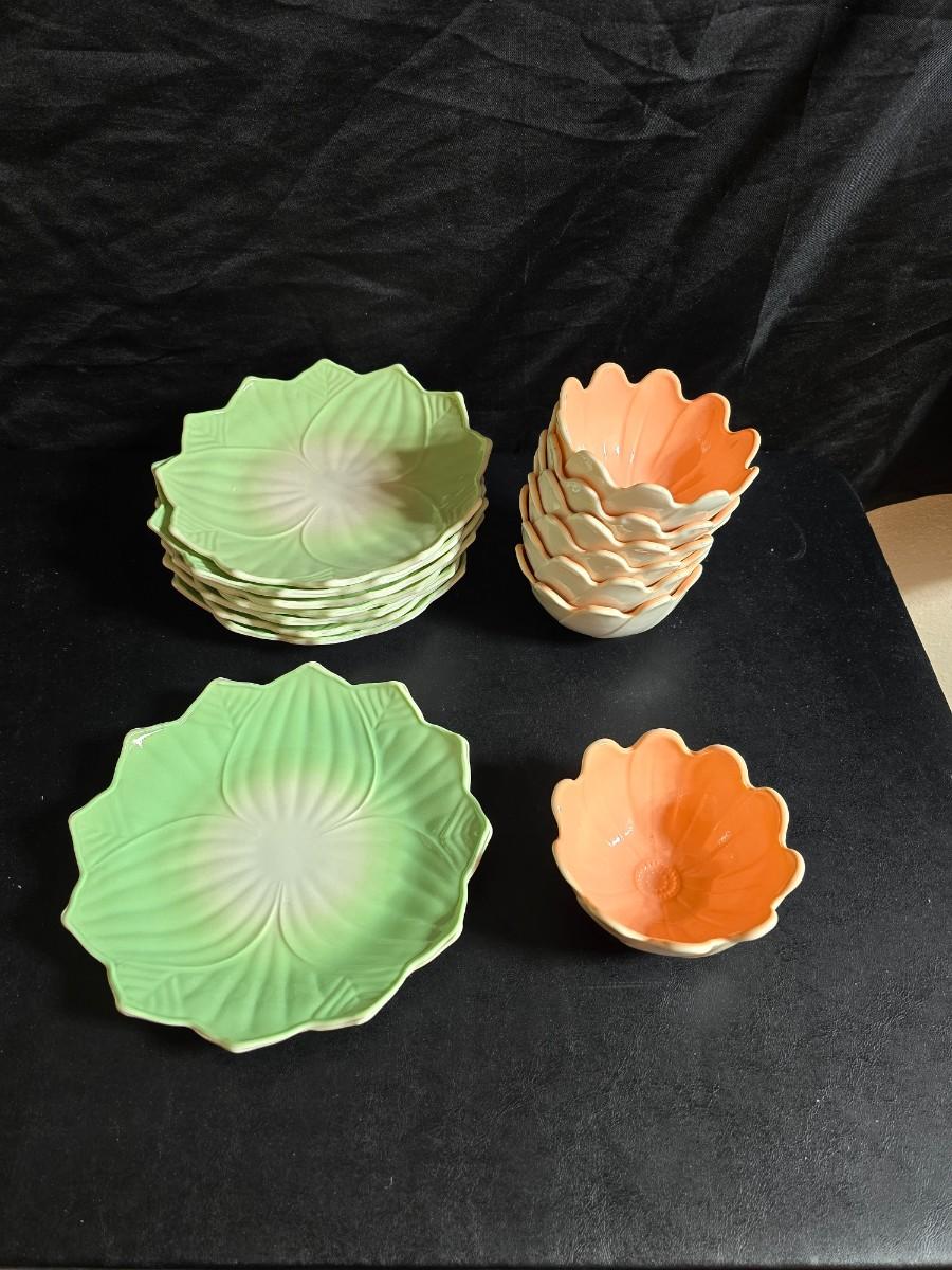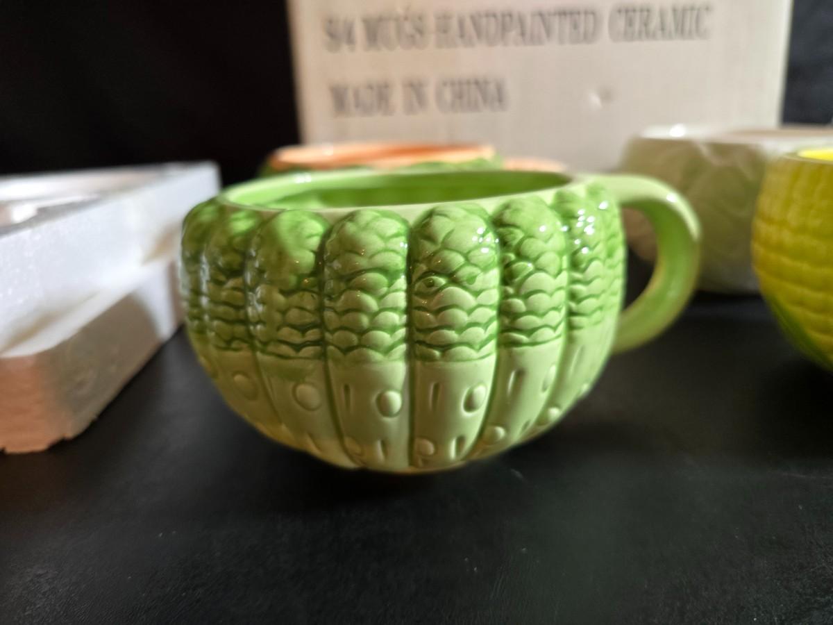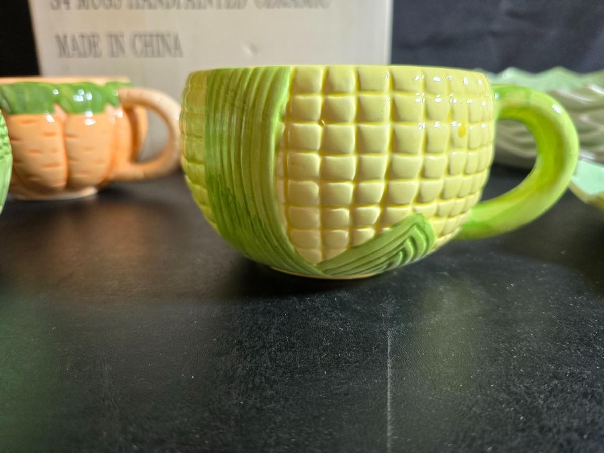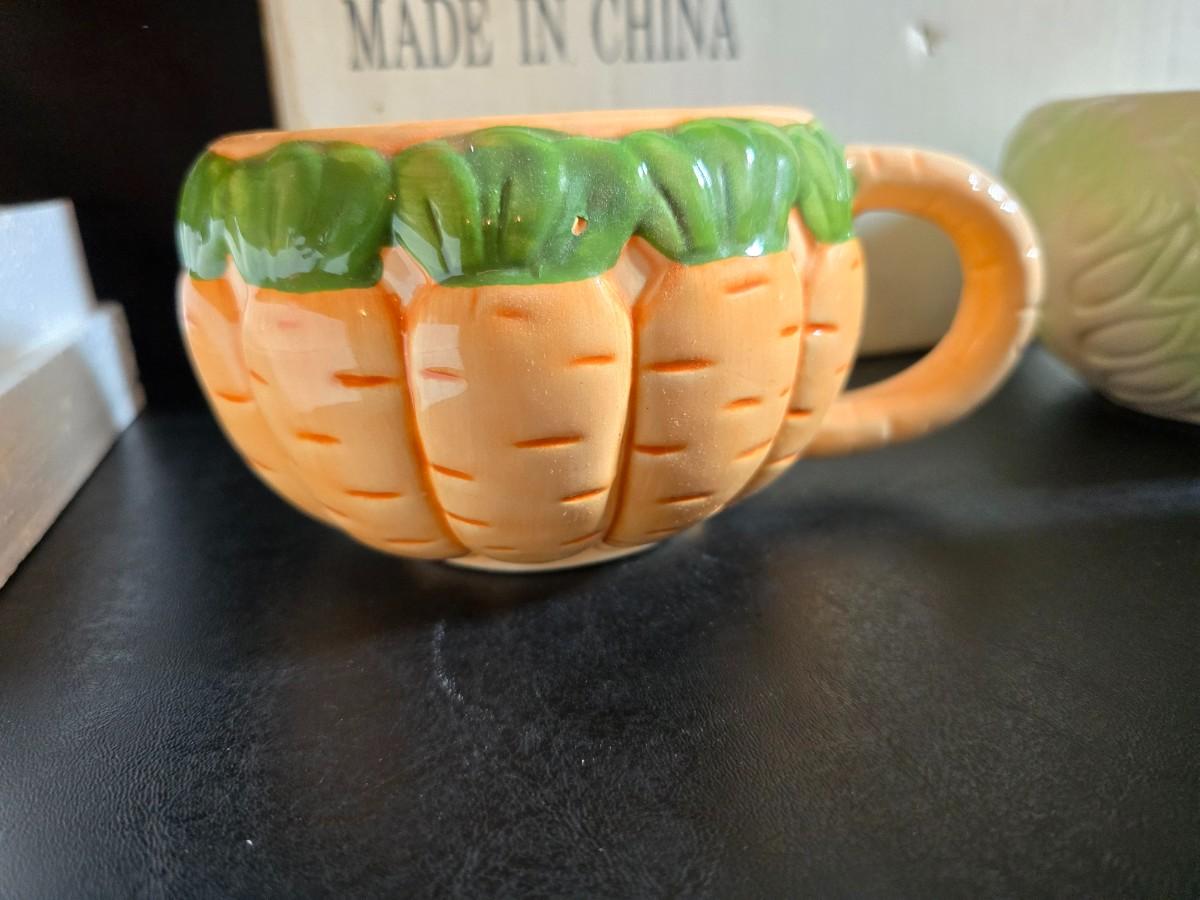 Fun dinnerware - Vegetable mugs and flower bowls with leaf plates