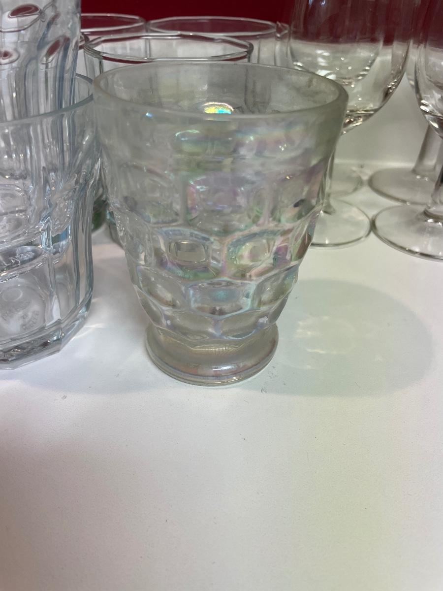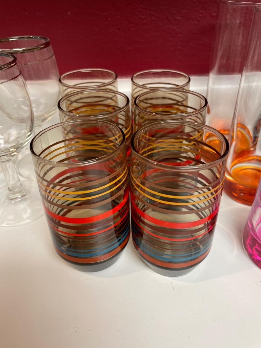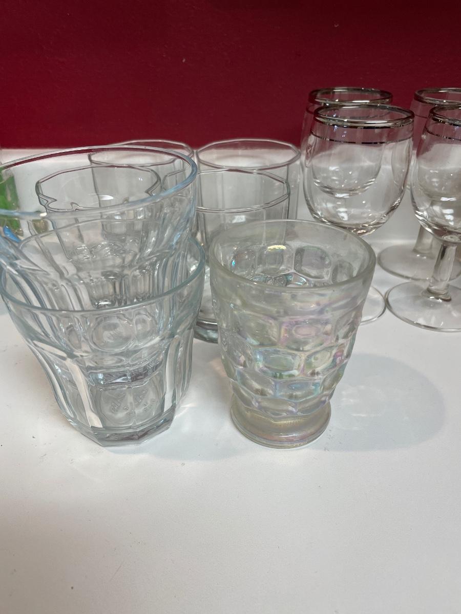 A few silver rimmed small wine glasses included